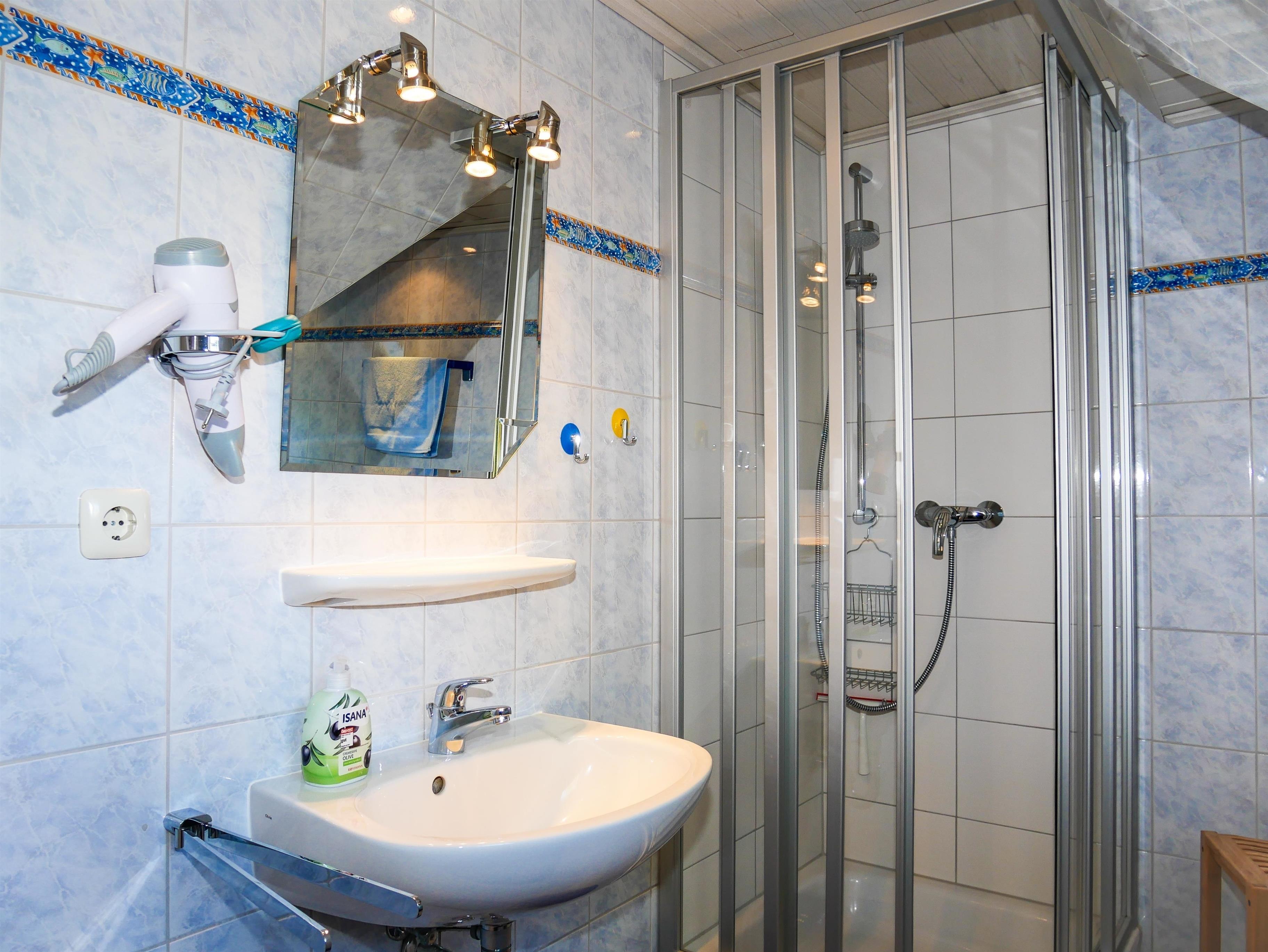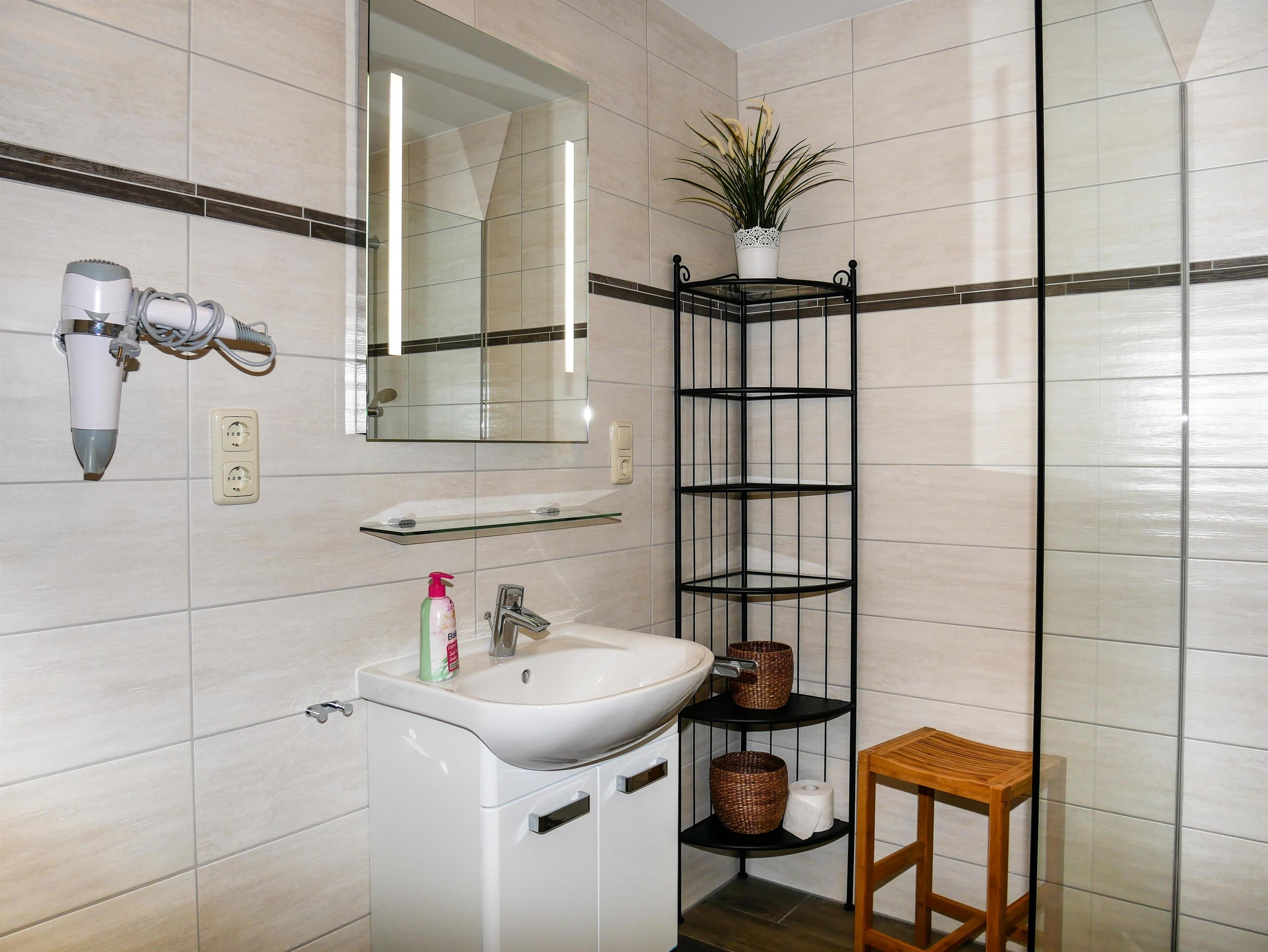 -Das Badezimmer im EG ist barrierefrei mit ebenerdiger Dusche