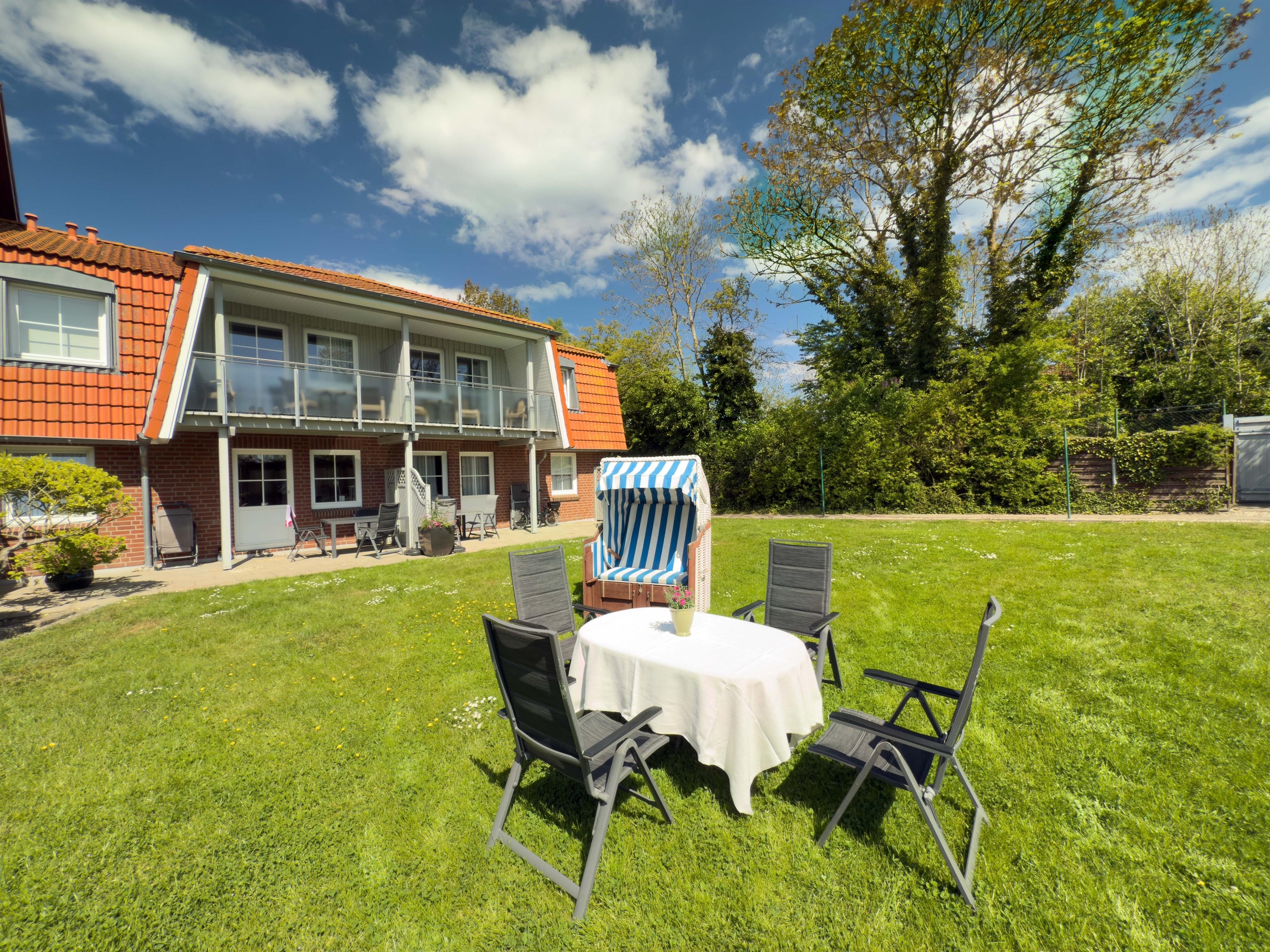 Genießen Sie die Ostseebriese auf Ihrer Terrasse oder dem Balkon. Der große Garten lädt zum träumen ein. Unsere kleinen Gäste nutzen den Spielplatz oder das Gartenhaus während die Eltern im Strandkorb verweilen.