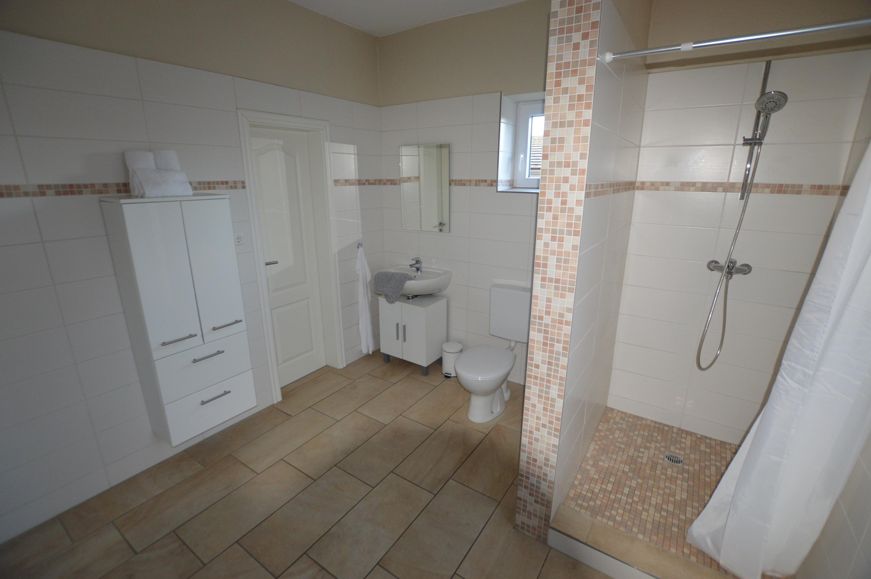 Ihre großzügige, moderne Wohnung im Bauernhaus befindet sich rechts neben der Rezeption in Richtung der neuen Gartenhäuser. Sie betreten die Wohnung über einen kleinen Flur. Von hier aus gehen Sie in das Badezimmer, wovon Sie einen Schlafraum betreten. Das große, ansprechende Wohn- Esszimmer, wie auch die schöne separate Küche sind toll geschnitten. Das geräumige Duschbad haben wir für Sie 2016 komplett erneuert. Ihre Südterrasse befindet sich vor dem Haus.