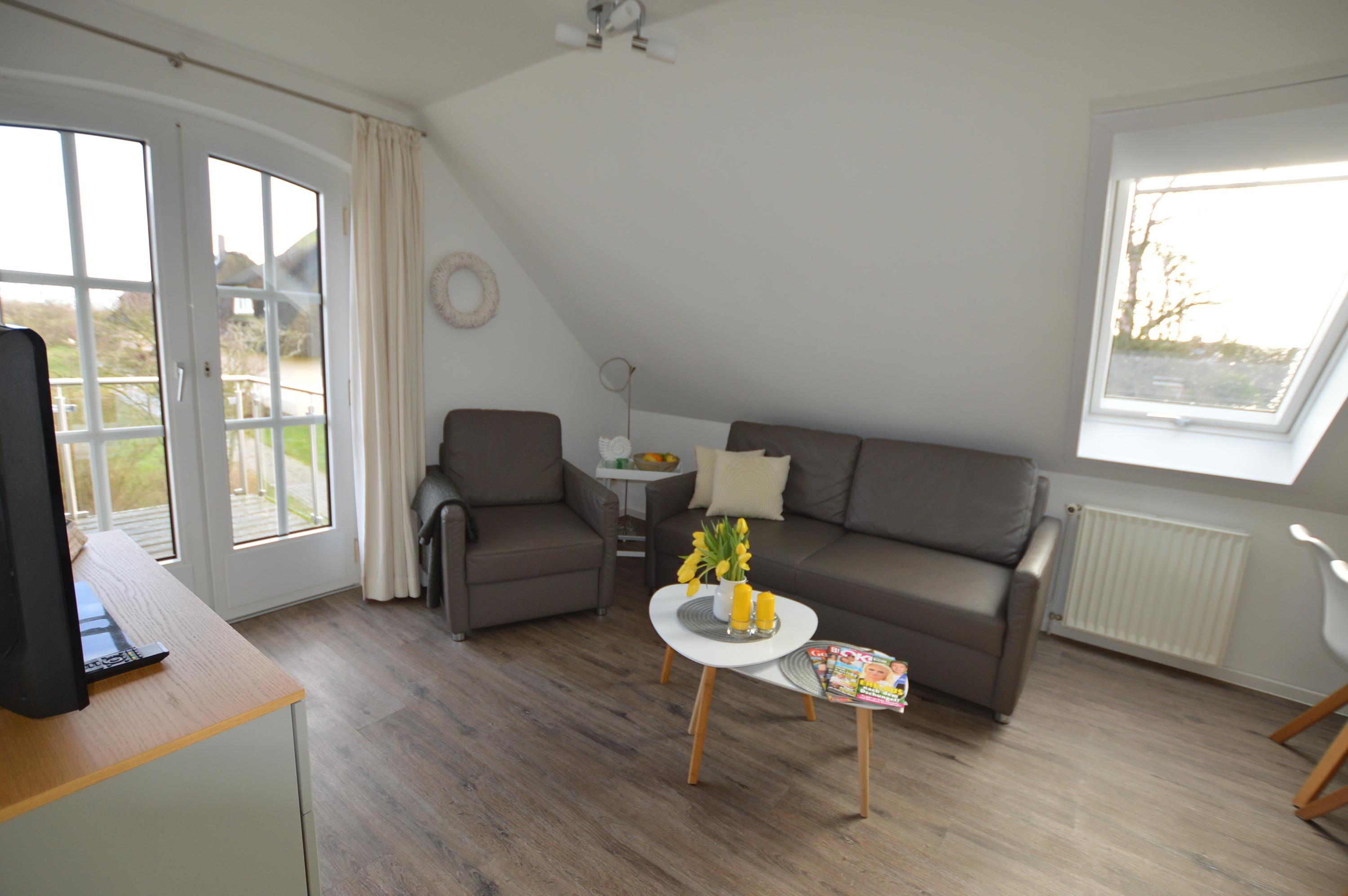 Ihre gemütliche Ferienwohnung befindet sich in einem schönen Landhaus mit 6 Wohneinheiten am Rande des Ferienhofs Beneken im Obergeschoss und somit in der Endetage. Parken können Sie direkt an Ihrer Wohnung. Ihr herrlicher Sonnenbalkon in Westausrichtung lädt zum Entspannen ein. Hier können Sie Ihren Urlaub ruhig genießen. Die Spielscheune, der Pferdestall, der Spielplatz wie auch die Rezeption sind nur ca. 150 Meter entfernt. Der ansprechende Wohn-Küchenbereich mit Zugang zu Ihrem ist voll ausgestattet. Ihre Ferienwohnung verfügt über 49m² mit einem Elternschlafzimmer und einem Kinderzimmer mit Einzelbett sowie ein helles Duschbad, was wir für Sie 2016 erneuert haben. Auf Wunsch kann für ein zweites Kind ein Zustellbett oder Gitterbett aufgestellt werden.