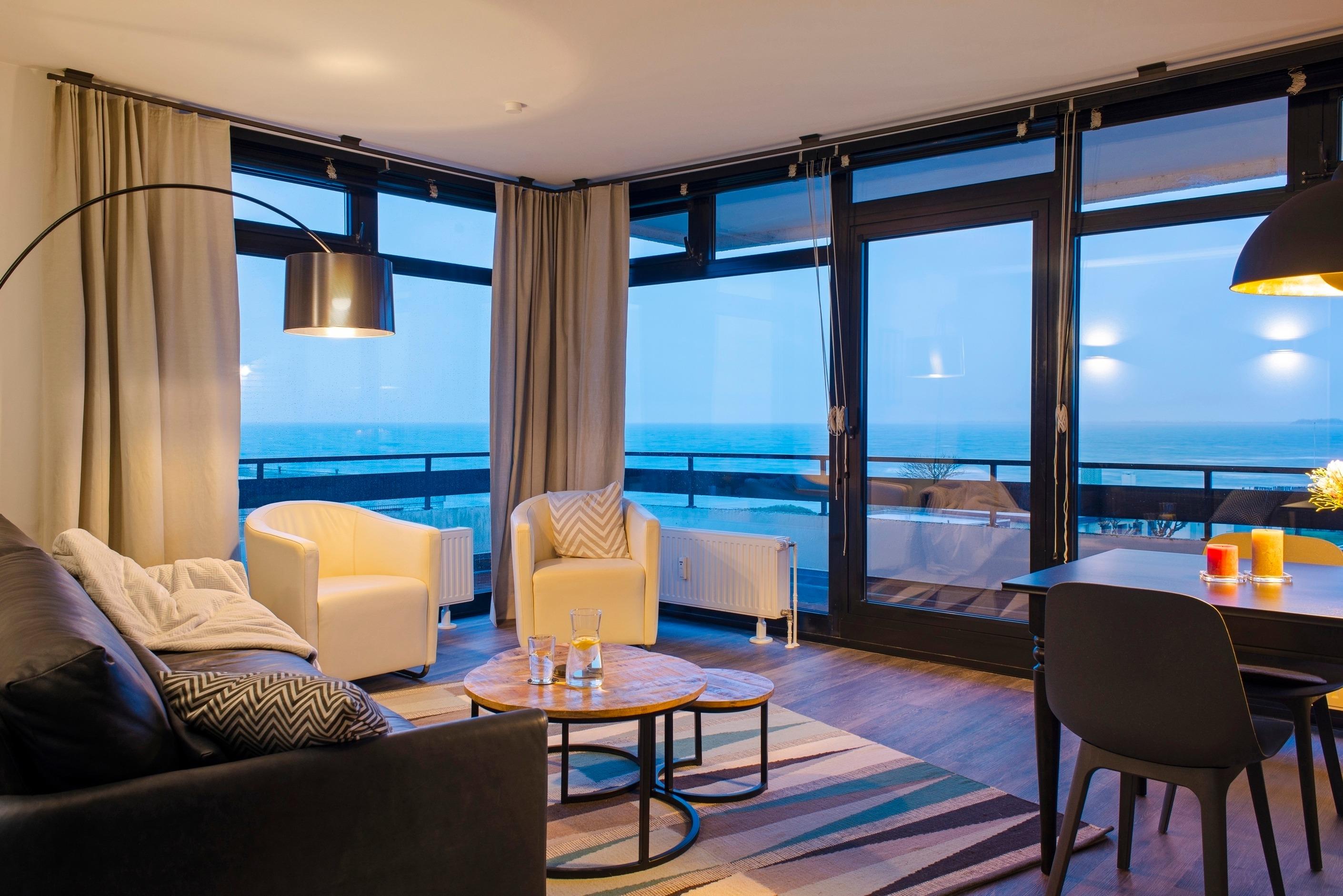 Die Ferienwohnung "Sonnendeck" in Staberdorf ist 63 qm groß und optimal für den Urlaub von 2 Erwachsenen und 2 Kindern. Sie besticht durch einen einmaligen Panorama-Meerblick und einen riesigen Eck-Balkon. Schon aus dem komfortablen Boxspringbett können Sie morgens nach dem Aufwachen auf das Meer schauen und der Naturstrand ist gleich vor der Tür. Im Wohnbereich gibt es Ostseeblick pur!