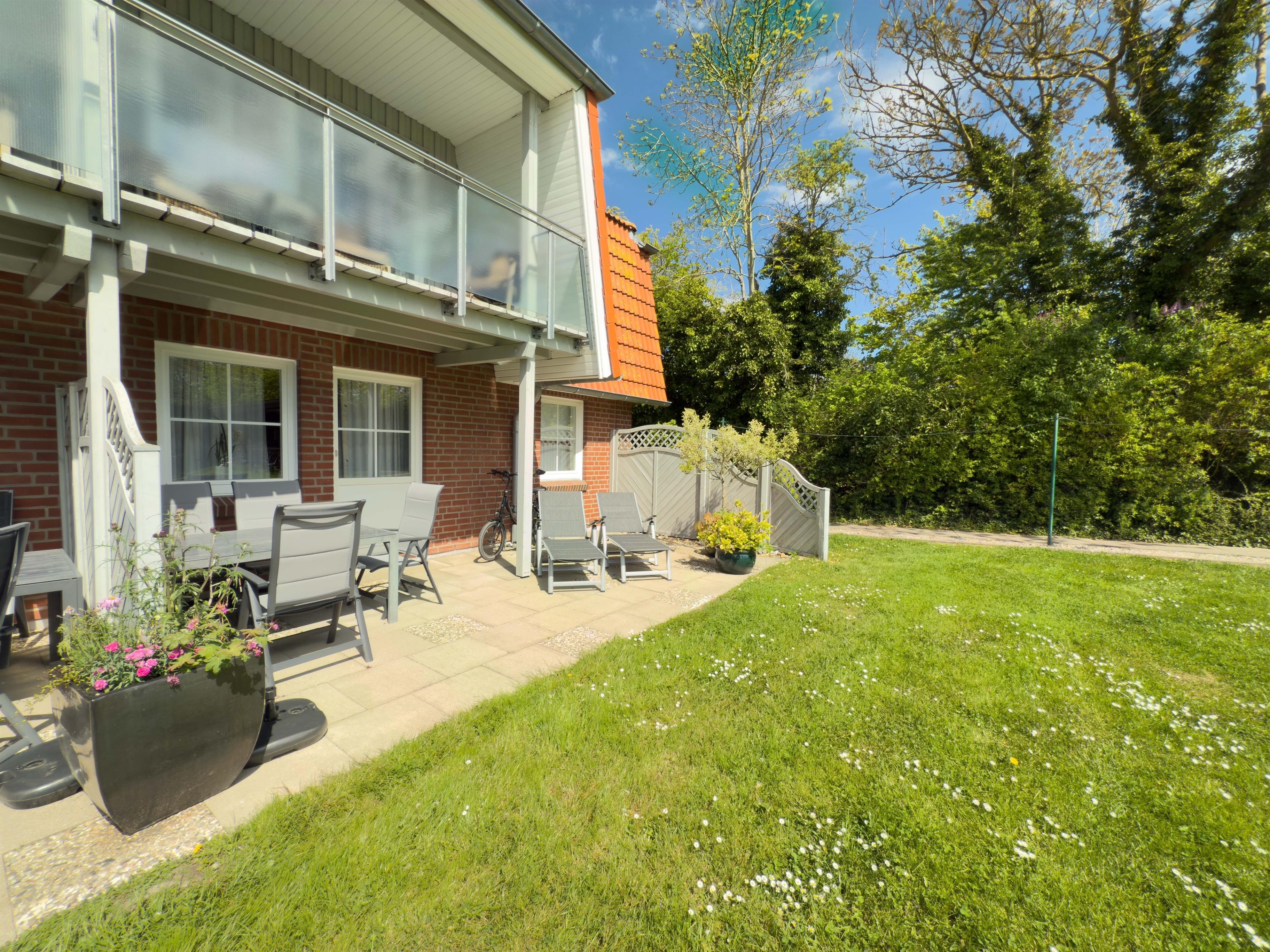 Genießen Sie die Ostseebriese auf Ihrer Terrasse oder dem Balkon. Der große Garten lädt zum träumen ein. Unsere kleinen Gäste nutzen den Spielplatz oder das Gartenhaus während die Eltern im Strandkorb verweilen.