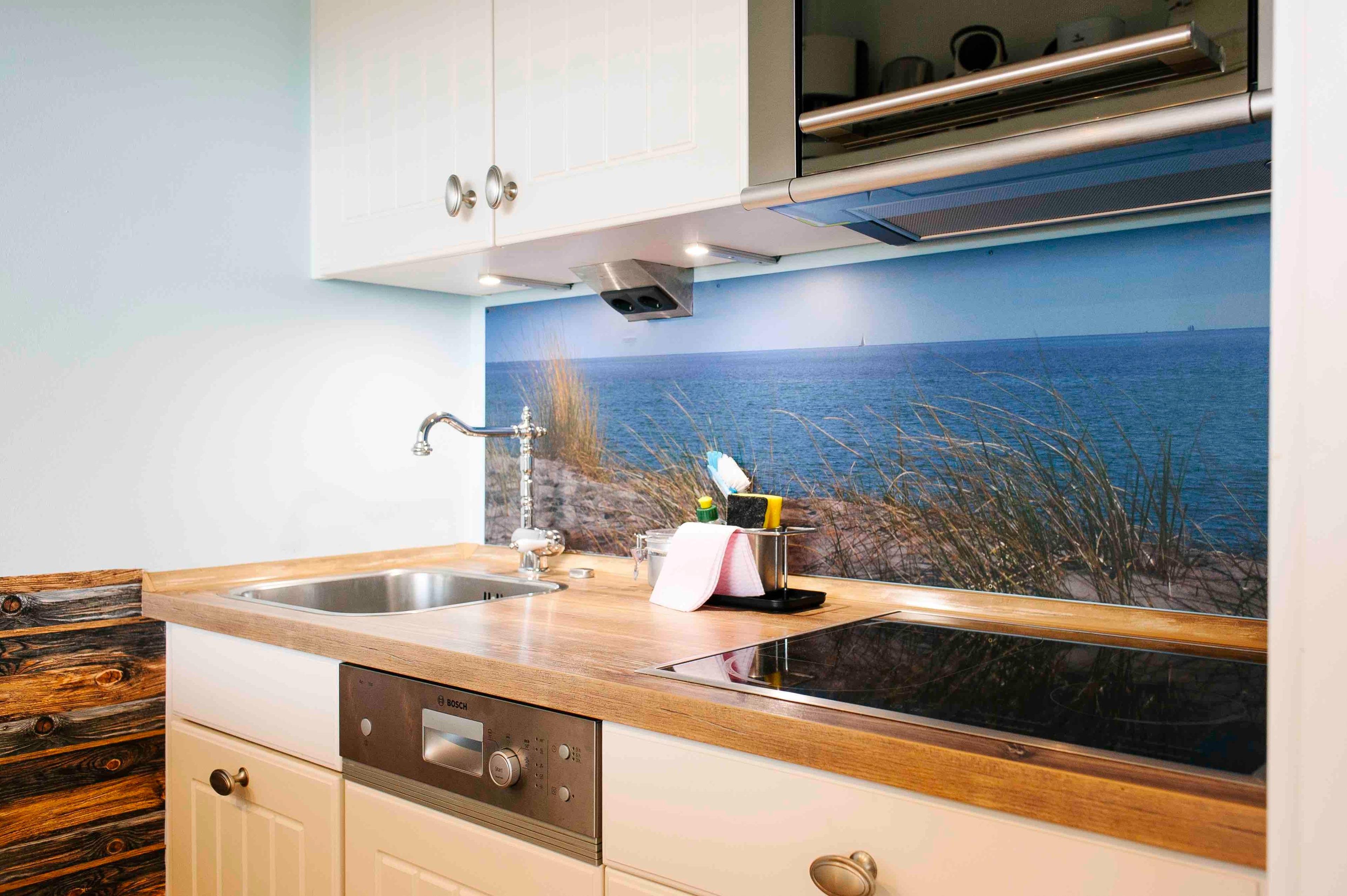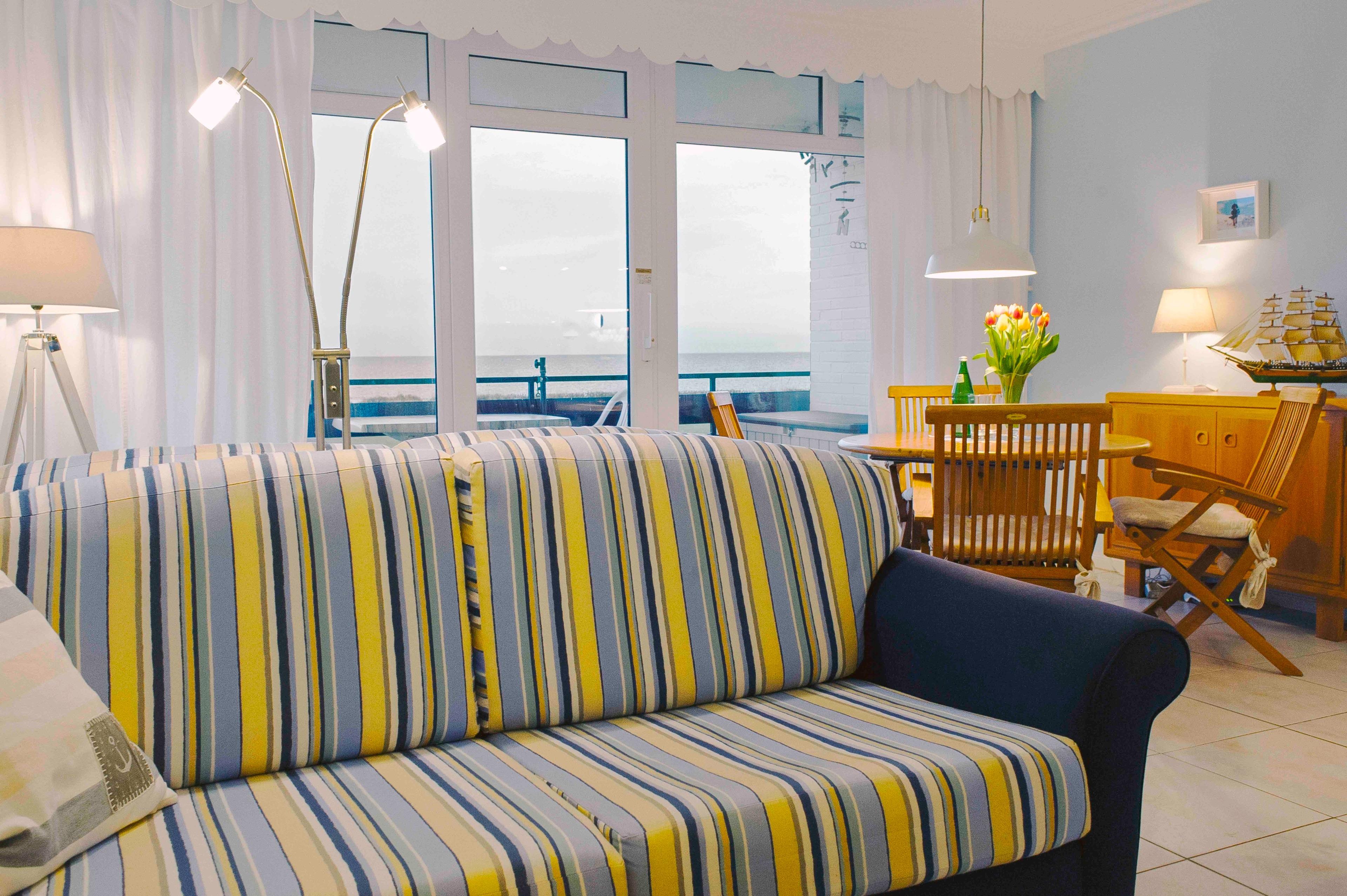 Die Ferienwohnung "Horizont" liegt in erster Reihe am Wasser und bietet sowohl von der geschützten Loggia aus als auch aus dem kompletten Wohnraum einen traumhaften Blick auf die Ostsee. Am vor dem Haus gelegenen Naturstrand befindet sich ein Badesteg. Die Ferienwohnung wurde liebevoll im maritimen Stil eingerichtet und bietet beste Erholungsmöglichkeiten für zwei Gäste.