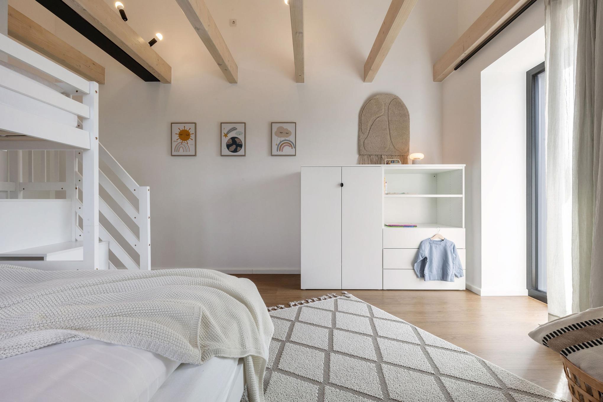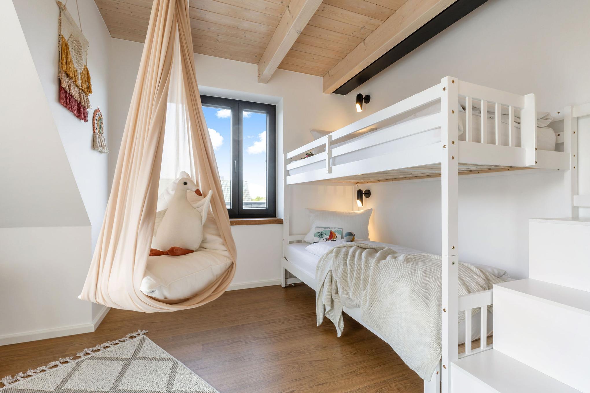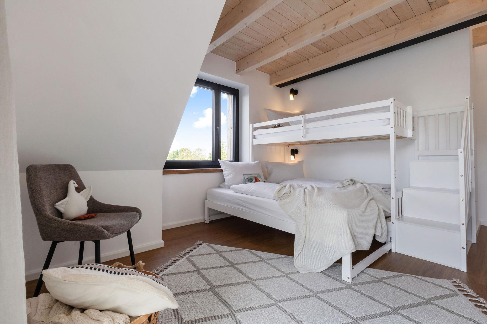 Ihr betretet das Haus über die große Diele, von der die Treppe in das Obergeschoss und der riesige Wohn-Ess-Küchenbereich abgehen. Hier kocht ihr in einer hochwertigen Nolte-Küche mit großem Induktionskochfeld, tafelt am großen Eichenholztisch oder relaxt auf dem gemütlichen Sofa und den Sitzsäcken. Vom Essbereich aus gelangt ihr über das große Hebe-Schiebe-Fenster auf die Terrasse und in den Garten. Hier stehen euch ein Grill, Sonnenschirm und natürlich hochwertige Gartenmöbel zur Verfügung. Im Erdgeschoss befindet sich ein kleines Schlafzimmer mit Home Office Platz sowie das großzügige Badezimmer mit Wanne und Walk-in-Shower. Im Obergeschoss befinden sich ein Duschbad mit Blick in den Himmel, drei Schlafzimmer, eines mit einem 240 cm breiten Familienbett, eines mit einem Etagenbett, welches unten ausziehbar ist und ein Schlafzimmer mit einem 180 cm Bett. In allen Schlafräumen genießt ihr ein tolles Raumgefühl durch die offene Balkenlage und könnt alle Fenster mit elektrischen Rolläden komplett verdunkeln. Unser Haus wurde nachhaltig kernsaniert, hat eine PV- und eine Solarthermieanlage, die die Inselsonne optimal nutzen. Euch steht ein privater Parkplatz auf dem Hof zur Verfügung und weitere Parkmöglichkeiten befinden sich an der Straße. Waschmaschine und Trockner stehen euch außerhalb des Hauses kostenfrei in unserem Waschkeller für Gäste zur Verfügung. Bitte beachtet, dass es im Haus eine weitere Wohnung gibt, die ebenfalls an Feriengäste vermietet wird. Wir freuen uns, besonders Familien und ruhige Reisegruppen zu begrüßen.