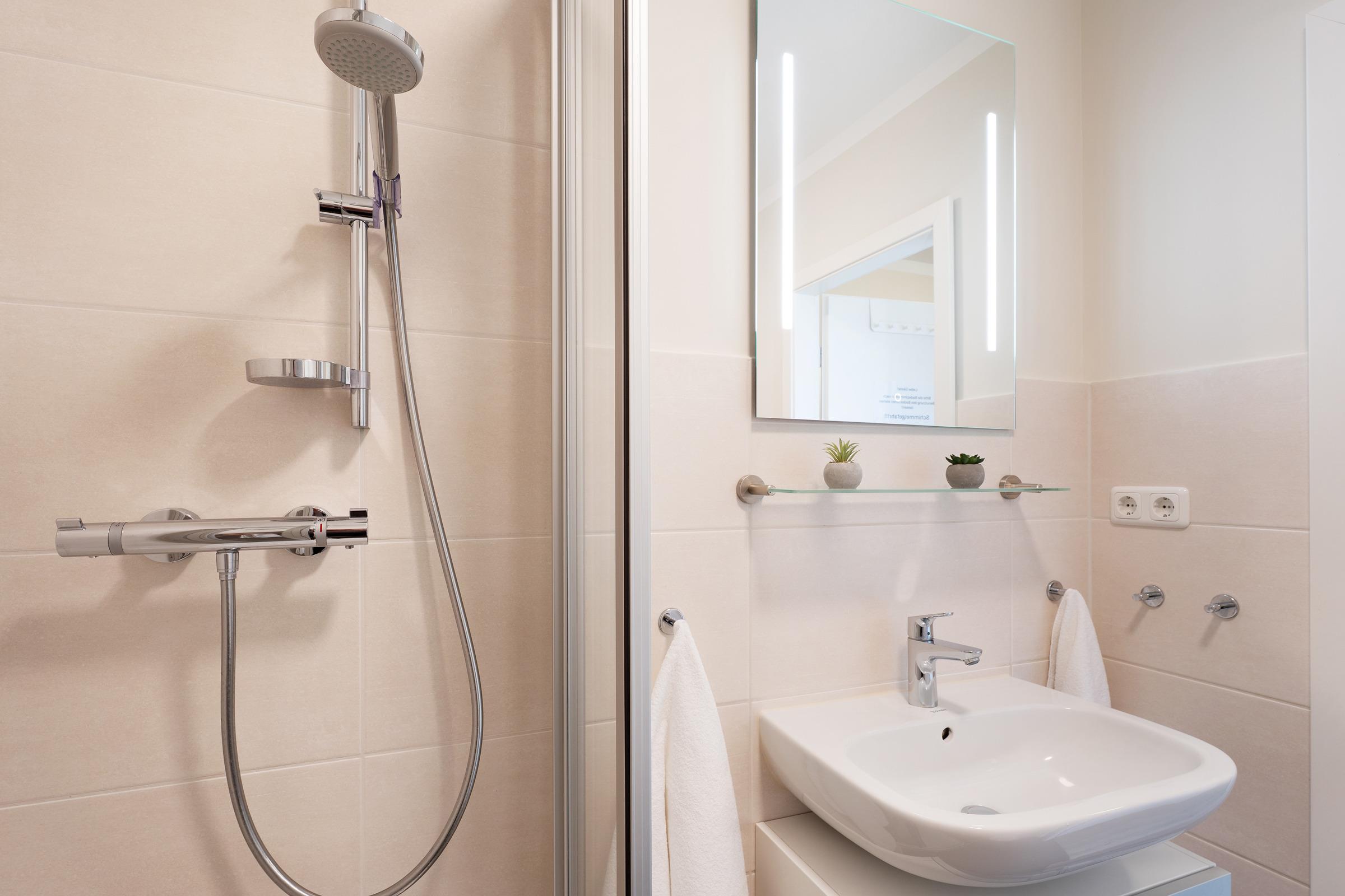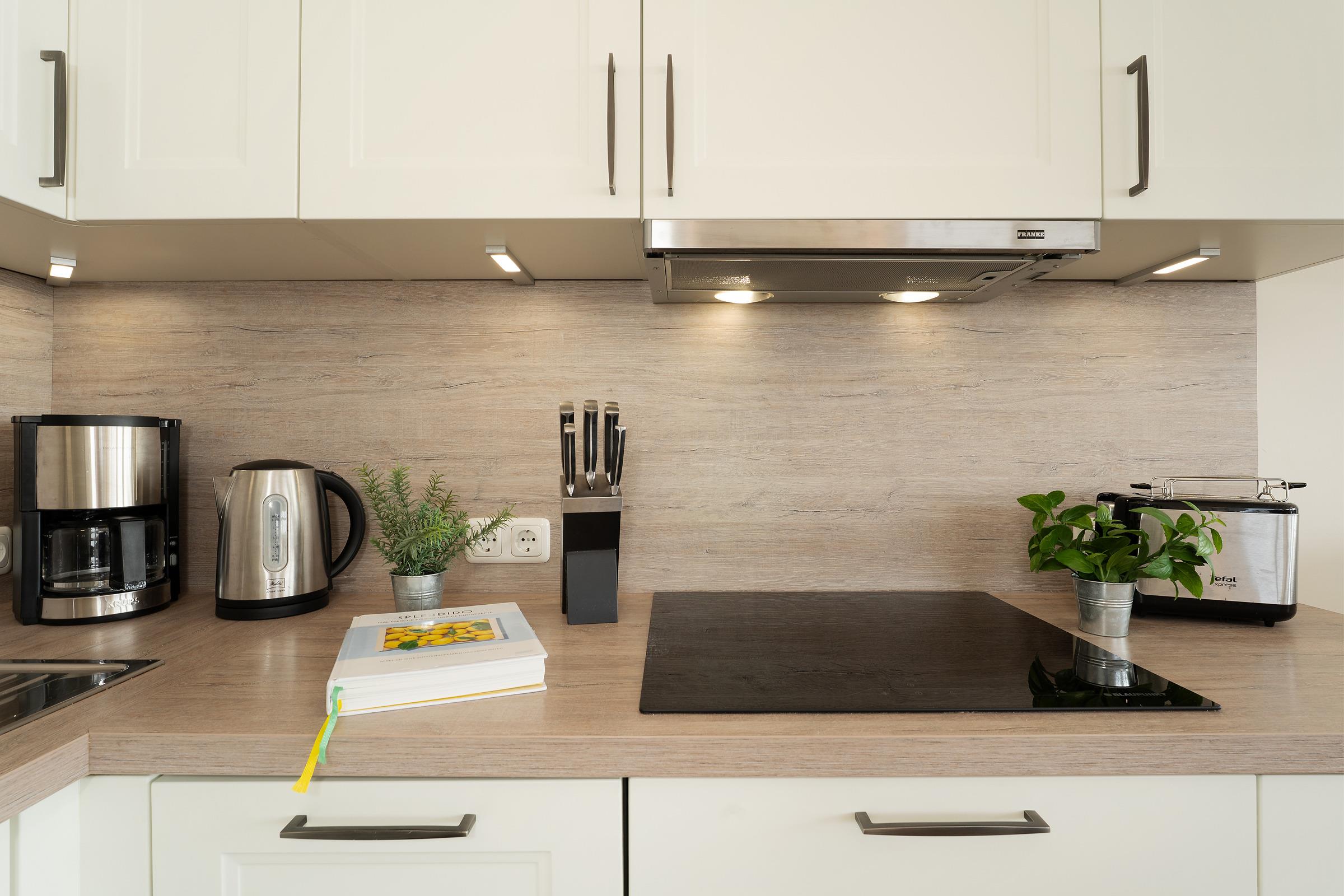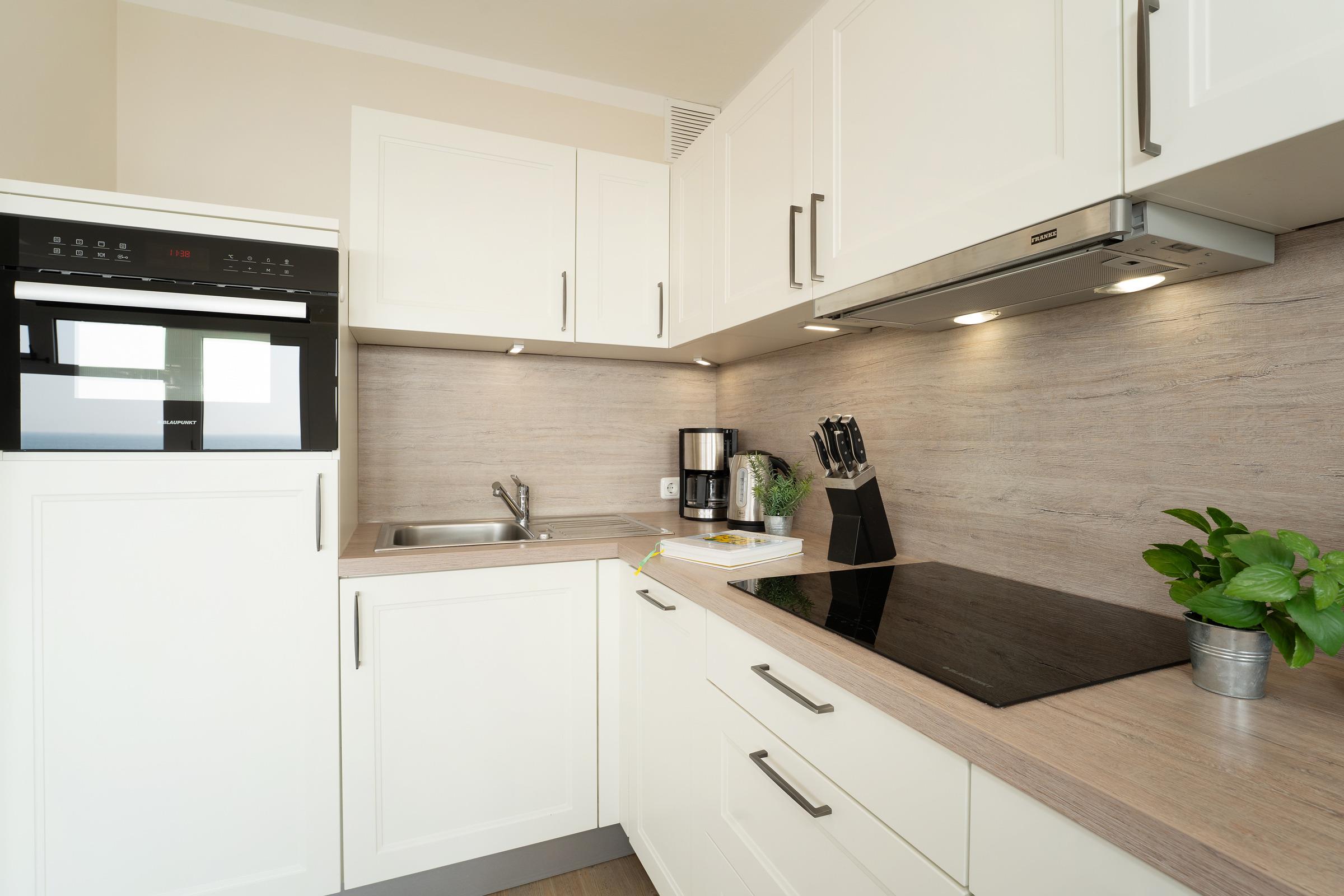 Herzlich willkommen im Urlaub! Ein Aufzug bringt Sie in Ihr Zuhause auf Zeit. Die geschmackvoll eingerichtete Wohnung bietet einen großen Wohn- und Essraum mit offener Küchenzeile. Die gute Ausstattung mit Induktionsherd, Backofen mit integrierter Mikrowelle sowie Geschirrspüler sorgt bei der Selbstversorgung für gute Laune. Für ein zeitgemäßes Medienerlebnis erwartet Sie eine kleine Musikanlage (Radio, CD, Bluetooth), ein Fernseher sowie ein kostenloser WLAN-Anschluss. Das Highlight des Feriendomizils ist sicher der großzügige Balkon. Sie haben in die eine Richtung einen tollen Blick auf die nur 100 m entfernte Ostsee. In der anderen Richtung fällt Ihr Blick auf das in der Ferne gut sichtbare Wahrzeichen der Insel Fehmarn: die Fehmarnsundbrücke. Die zwei getrennte Schlafzimmer, in denen jeweils ein Doppelbett steht, sorgen für eine angenehme Nachtruhe. Das Duschbad ist hell gefliest. Der Strand, genutzt nur von Bewohnern der Ferienwohnanlage, befindet sich nur zwei Gehminuten vom Haus entfernt und wird ohne das Überqueren einer Straße erreicht.