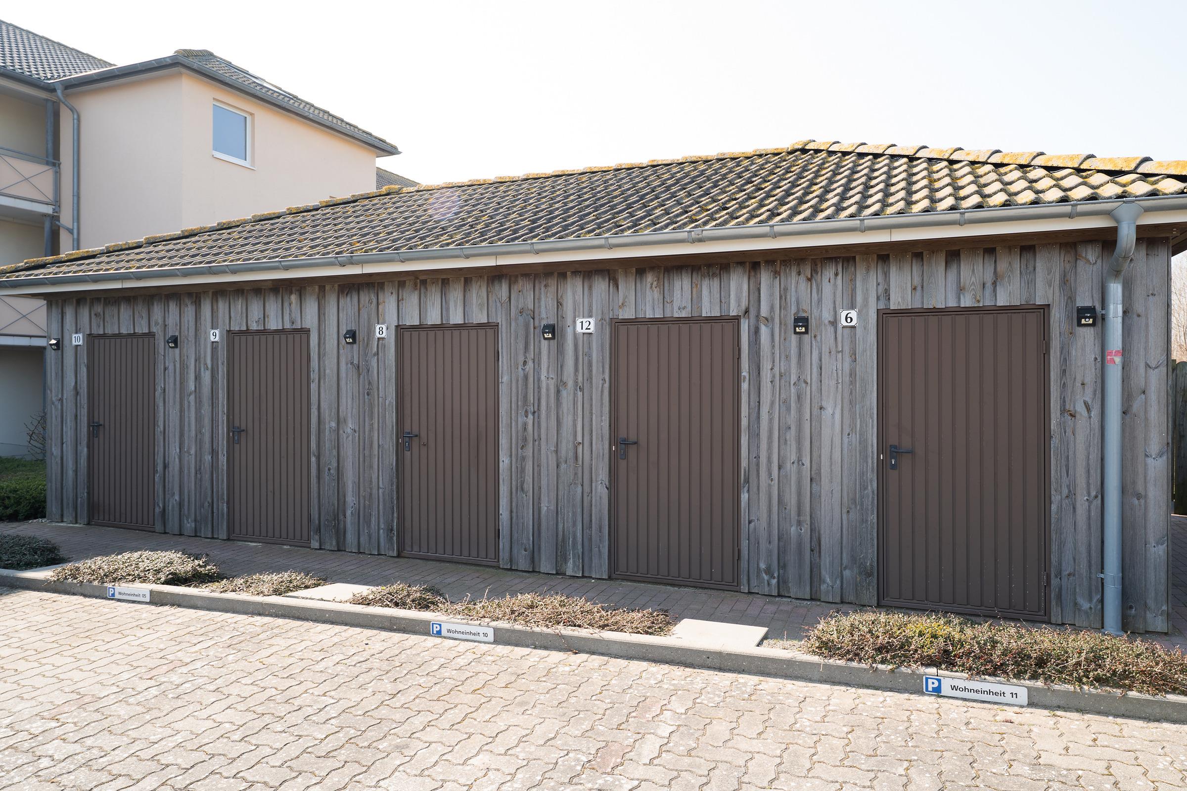 Ein PKW-Außenstellplatz vor dem Haus ist für Sie reserviert. Eine Waschmaschine zur gemeinschaftlichen Nutzung befindet sich im Keller. Für Fahrräder oder für Ihre Surfausrüstung können Sie einen abschließbaren Schuppen nutzen.