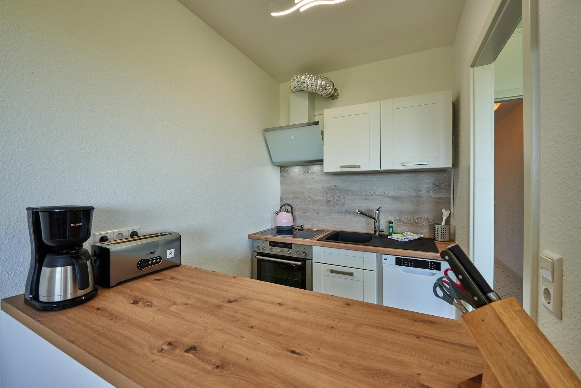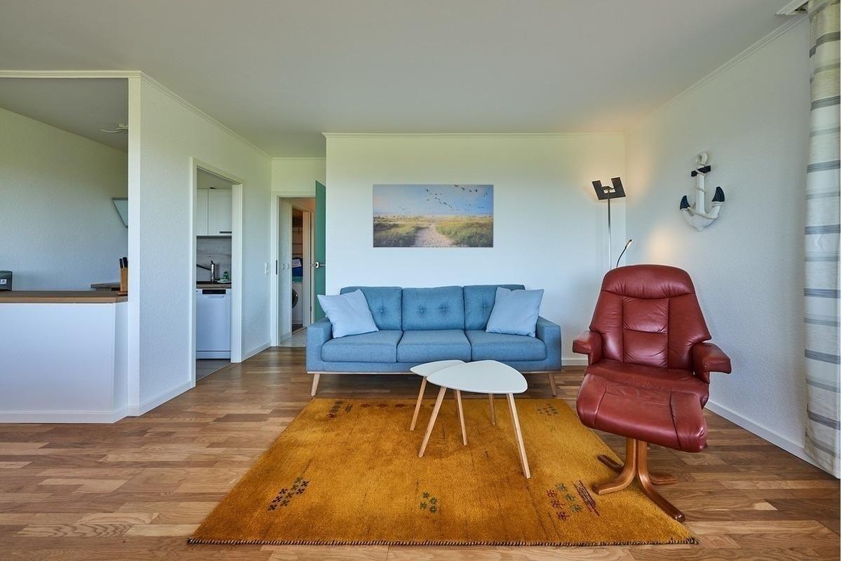 Sie wünschen sich einen atemberaubenden Meerblick, der Ihre Sinne verwöhnt? Dann sind Sie hier genau richtig! Auf dem großzügigen Balkon wartet ein bequemer Strandkorb auf Sie - und auch vom geschmackvoll eingerichteten Wohnbereich aus haben Sie die Ostsee dank der großen Fenster stets im Blick. Die offene Küche ist sehr gut ausgestattet und macht bei der Selbstversorgung Freude. Ein Geschirrspüler hilft Ihnen beim Abwasch. Erholsamen Schlaf finden Sie in den beiden Schlafzimmern, in einem steht ein Doppelbett, in dem anderen 2 Einzelbetten. Träumen Sie hier vom Meer und lassen Sie den Stress des Alltags hinter sich. Das Bad ist gell gefliest und zweckmäßig eingerichtet. Durch die Nähe zum Strand können Sie jederzeit einen Spaziergang am Ufer unternehmen.
