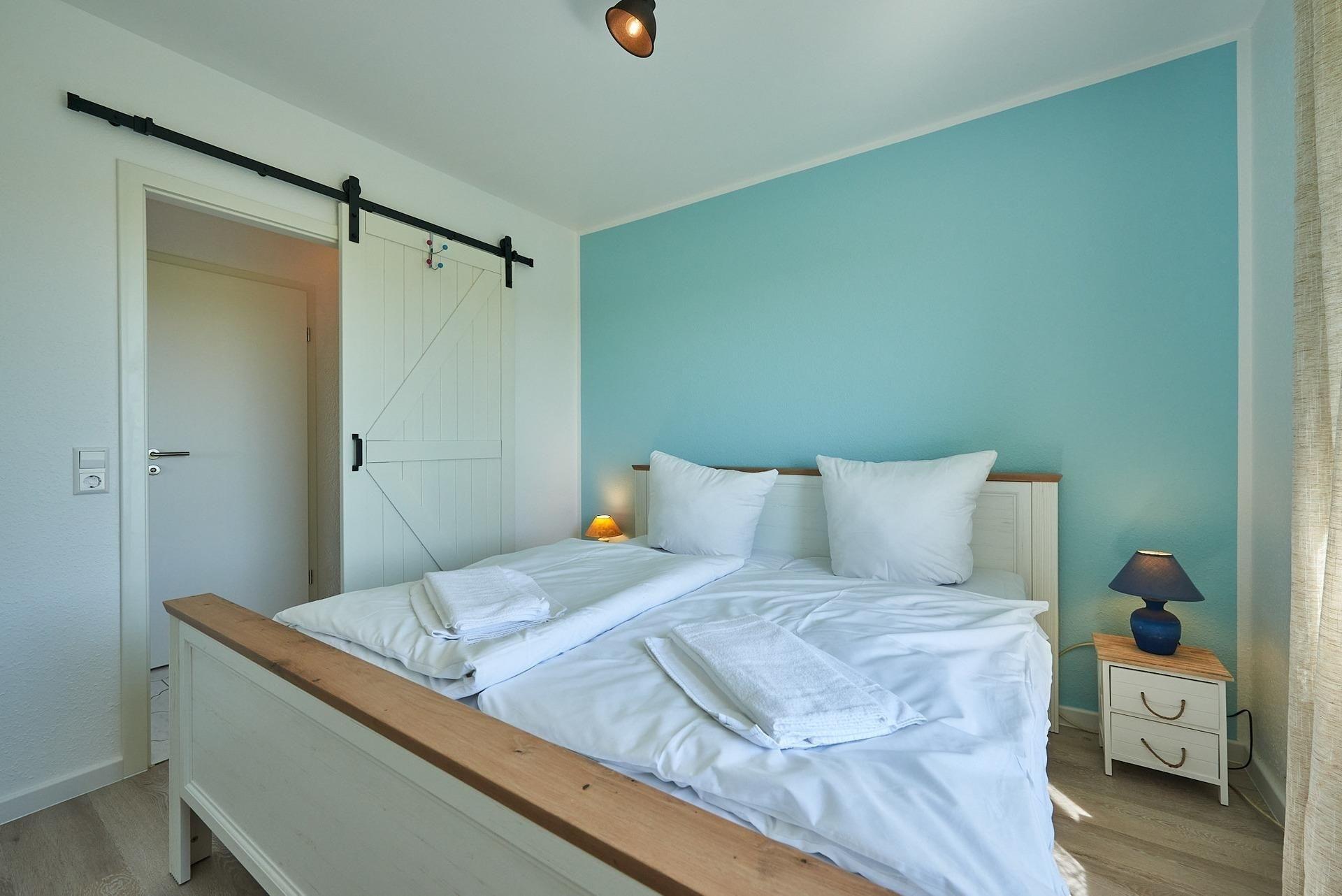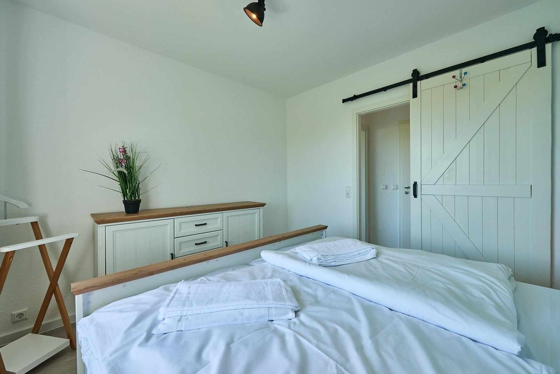 Schlafzimmer 1: Doppelbett, Kommode, Verdunkelung (Rollo)