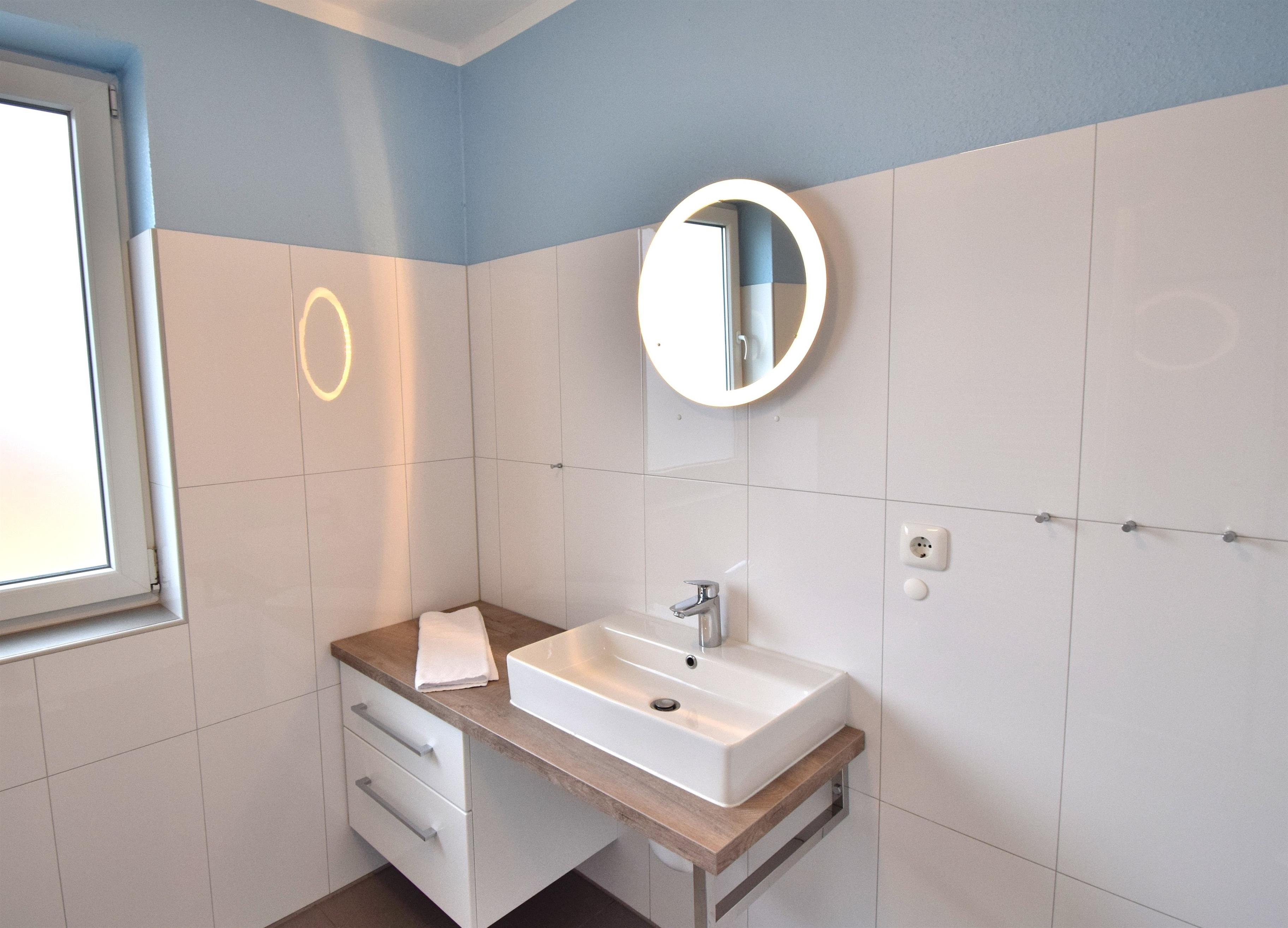 Die modernen Badezimmer mit Dusche verfügen über einen Handtuchheizkörper und Fußbodenheizung.