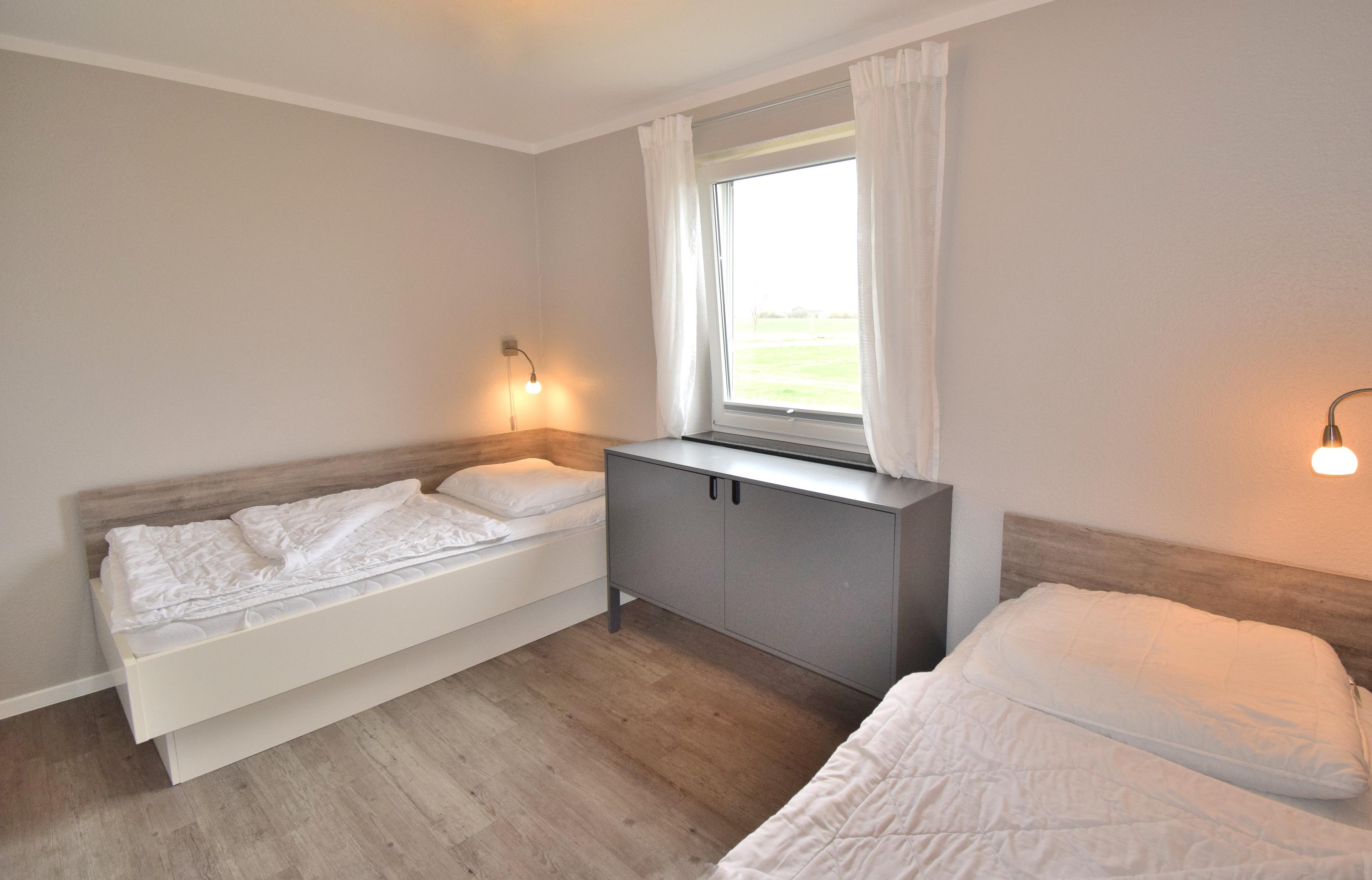 3 Schlafzimmer sind mit je 1 Doppelbett ausgestattet, 1 Schlafzimmer ist mit 2 Einzelbetten ausgestattet.