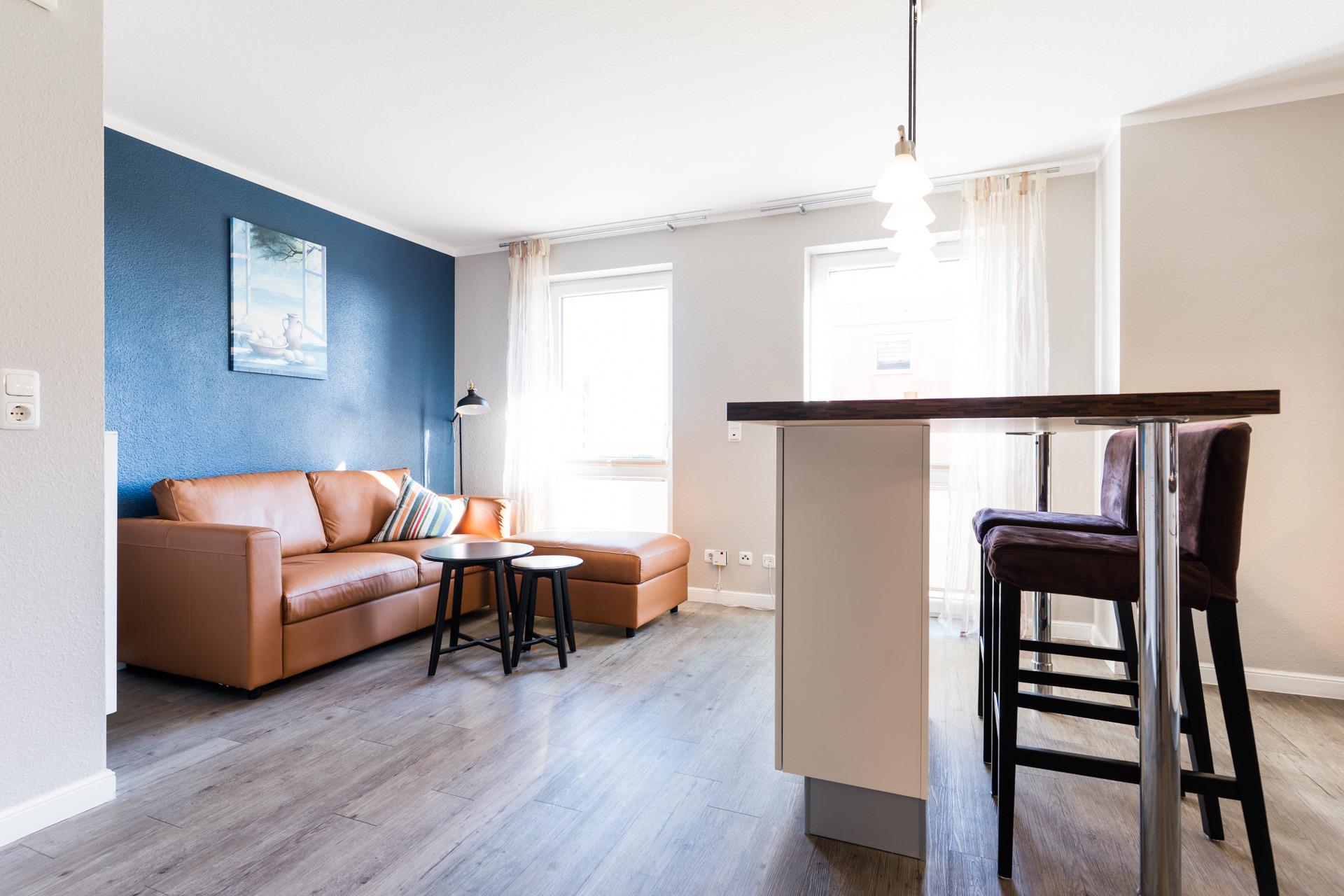 Es fehlt an nichts auf 40m² - ein Schlafzimmer mit Doppelbett, ein vollwertiges Duschbad und eine komplett ausgestattete Küche gehören ebenso zum Appartement wie ein gemütlicher Wohnbereich und ein Balkon.