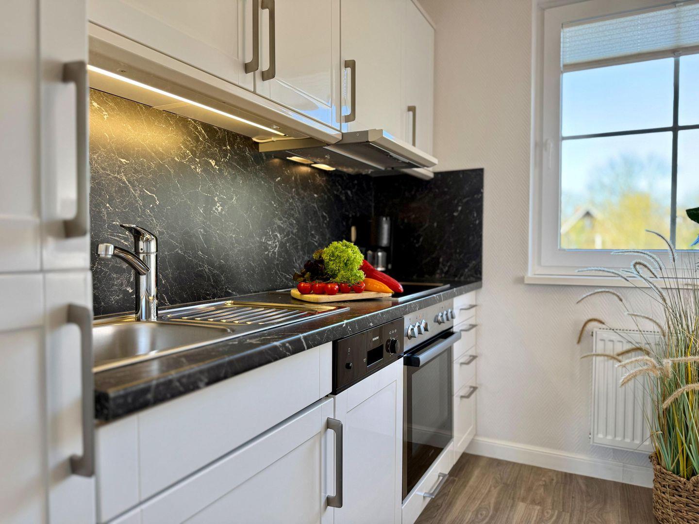 In dieser Wohnung finden Sie eine moderne und gleichzeitig gemütliche Atmosphäre vor. Die Fernsehecke ist mit Sofa, Sesseln und Couch eingerichtet. Der geräumige Küchenbereich ist mit allen notwendigen Küchenutensilien ausgestattet.