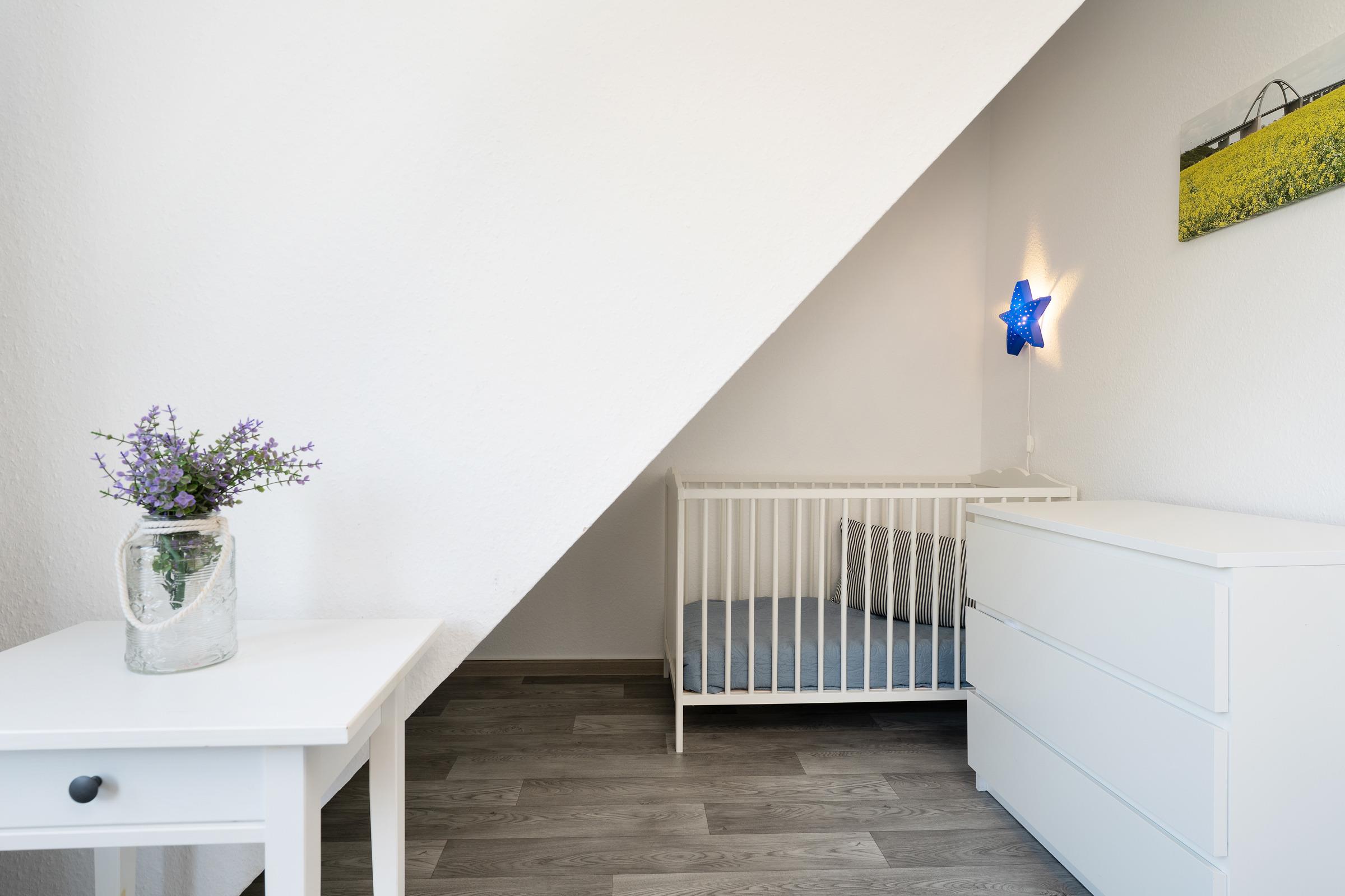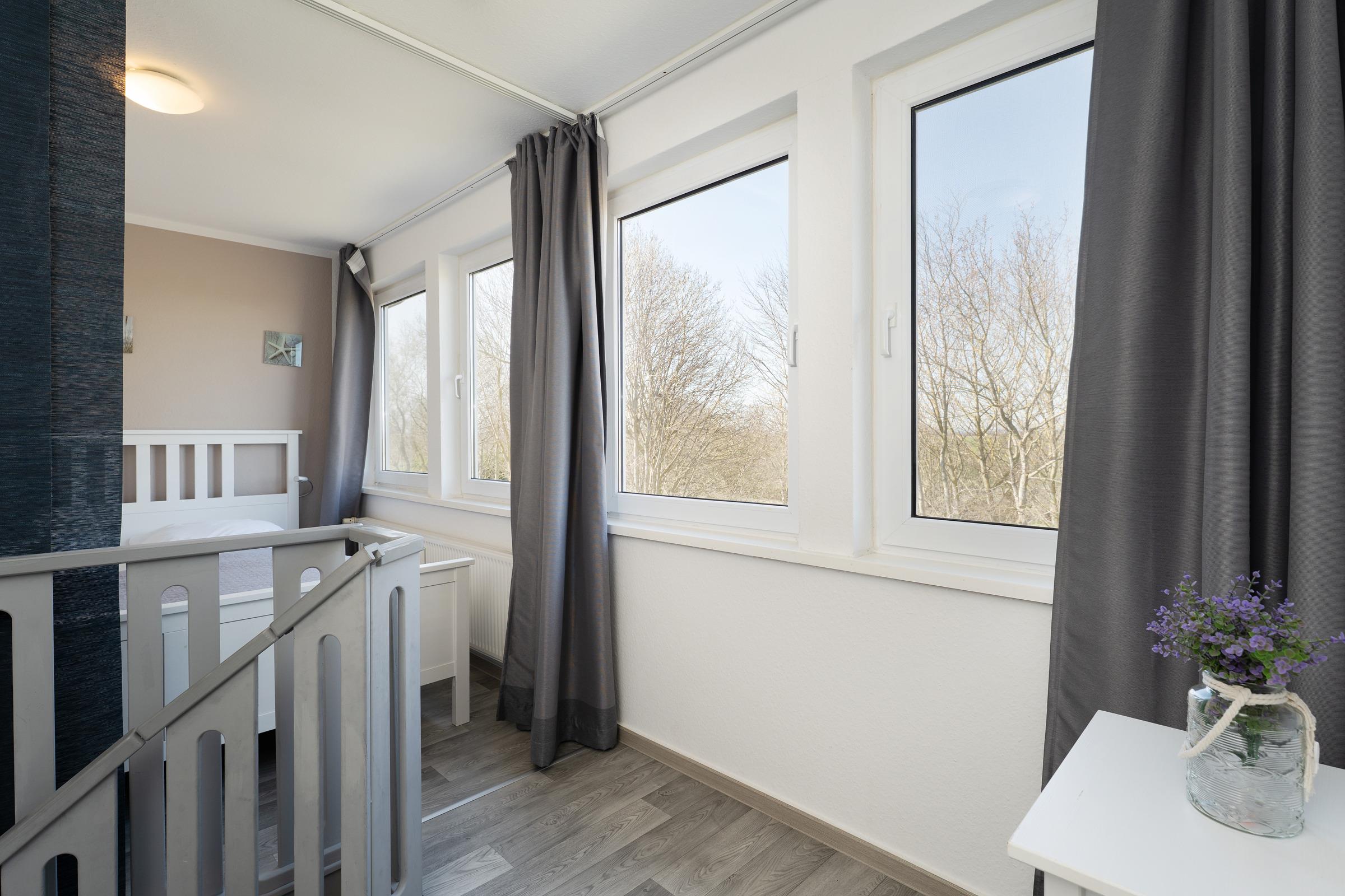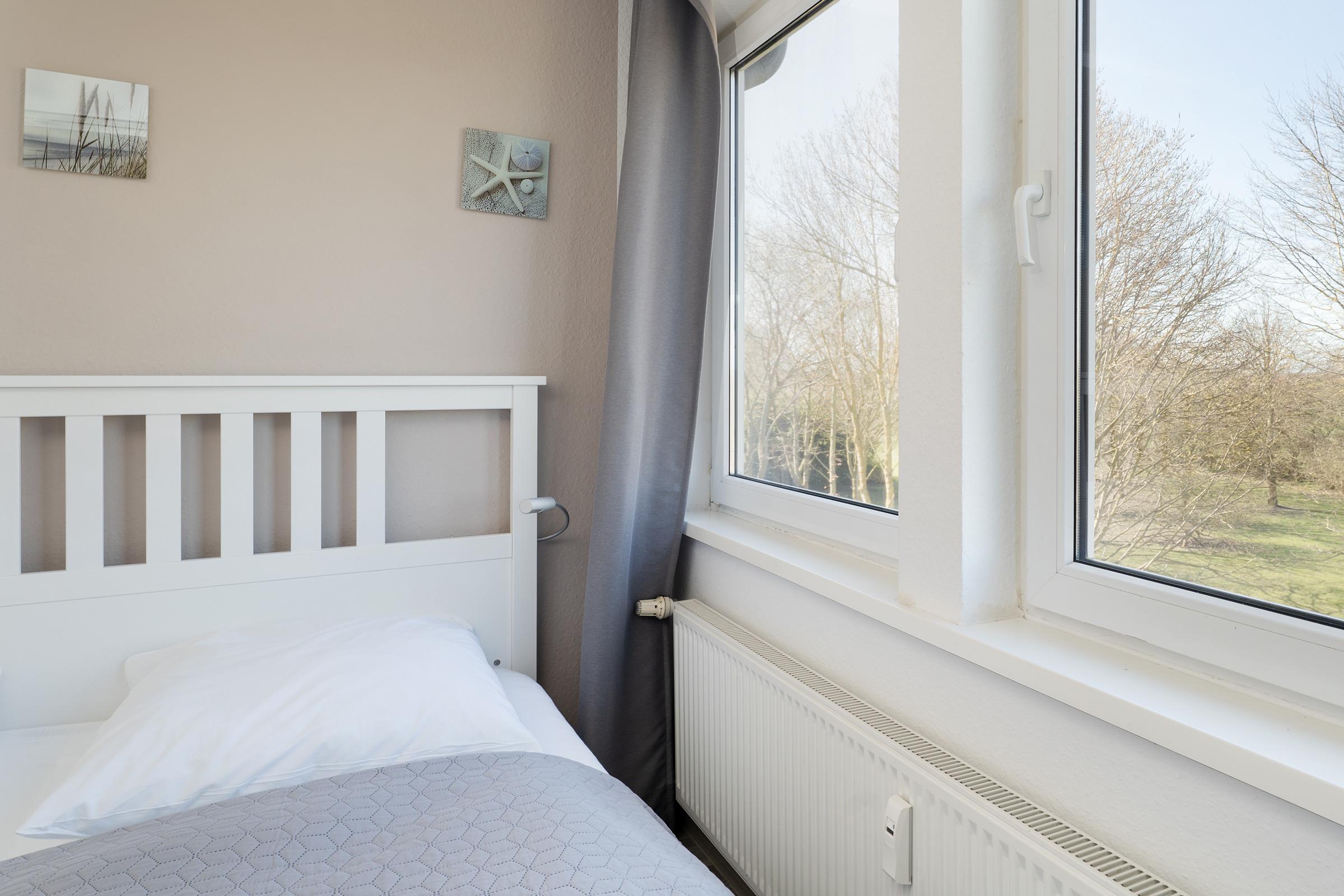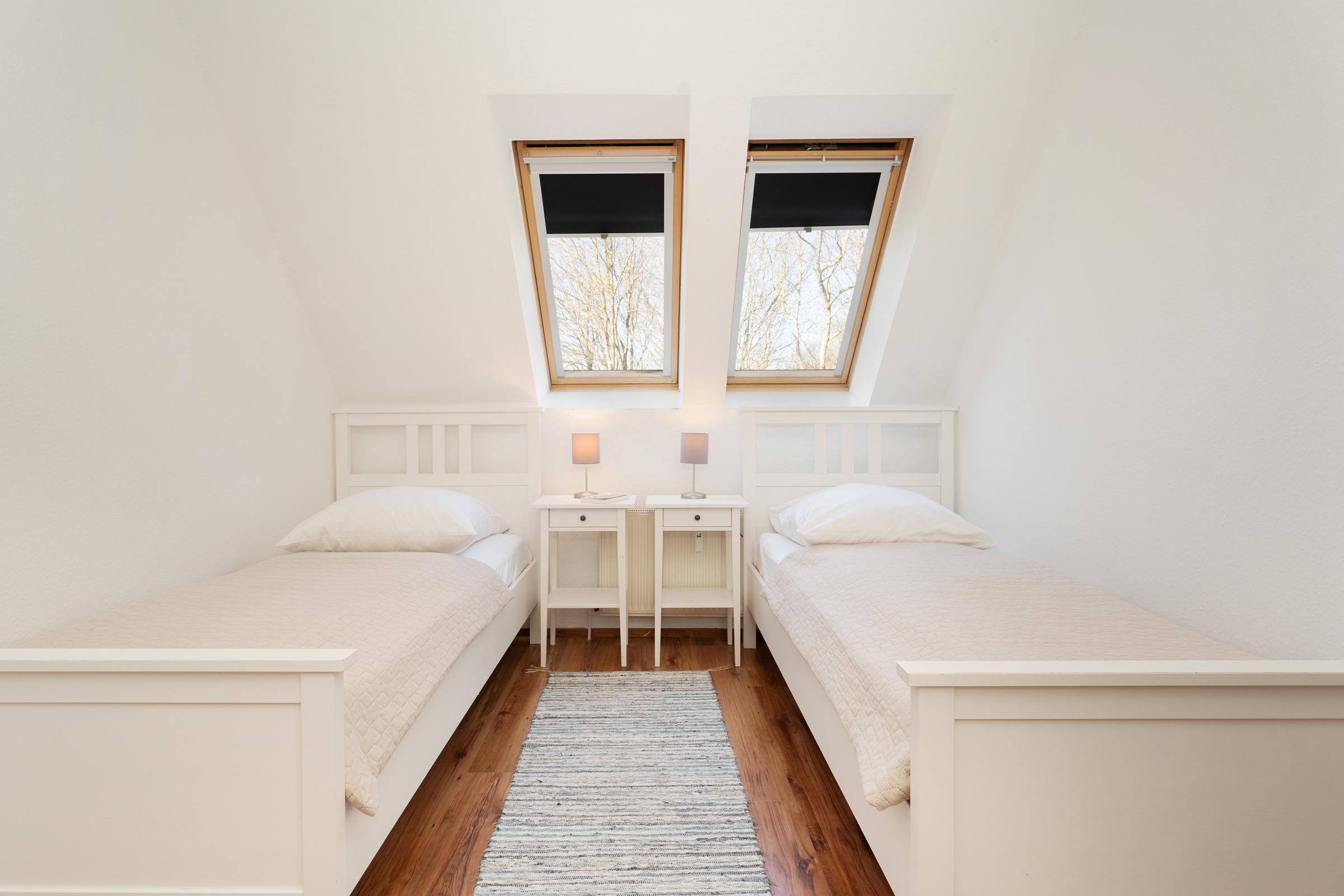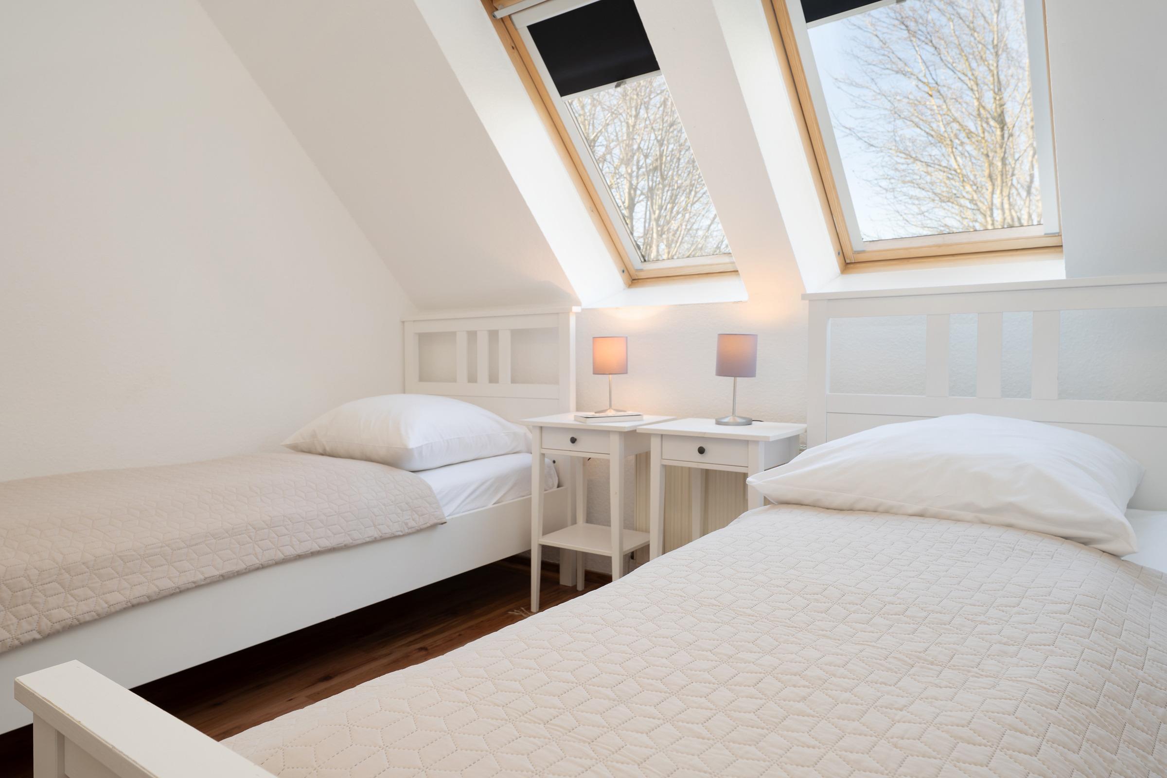 Schlafzimmer 2: 2 Einzelbetten, Verdunkelung: Plissee, kein Platz für ein Babybett vorhanden