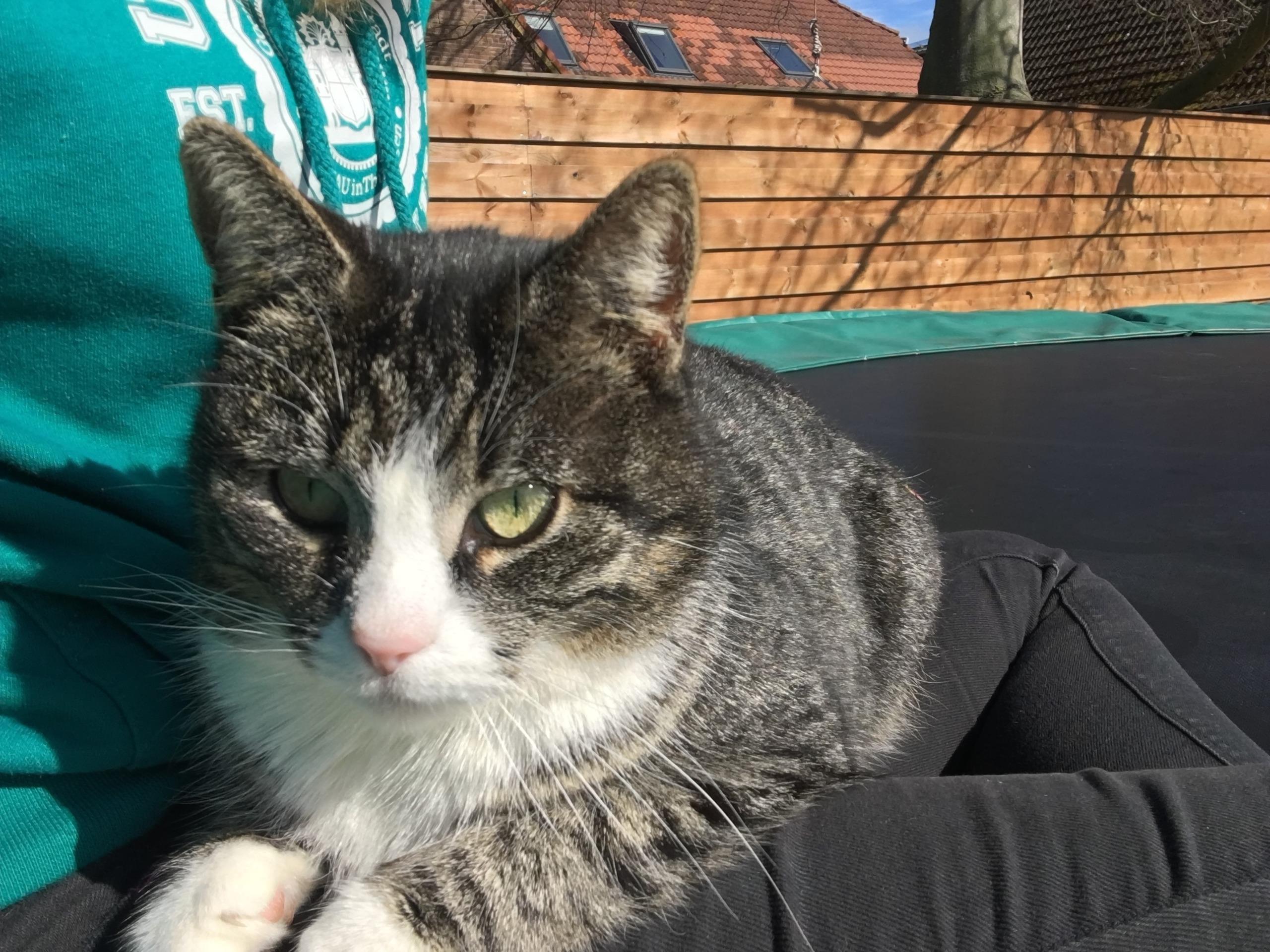 großer sonniger Garten mit Liegewiese und Spielgeräten,