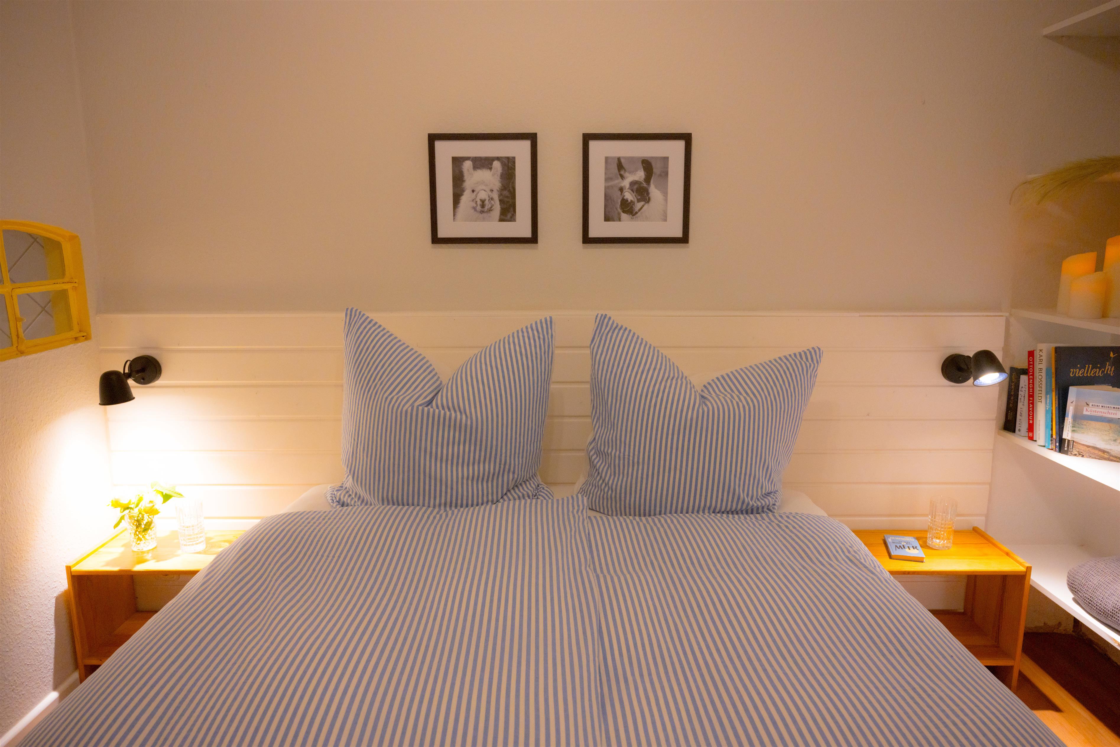 Diese offen geschnittene Ferienwohnung auf dem Inselhof Fehmarn (21 ha Hof- und Gartengrundstück) liegt im Scheunentrakt zur Dorfseite und besteht aus einem Wohn-Essbereich mit einer raumteilenden Pantryküche mit Mikrowelle, einem Schlafbereich mit Doppelbett sowie einem Duschbad. Für romantische Stunden, vielleicht mit einem Glas Wein, bietet sich die kleine Terrasse Richtung Westen an.