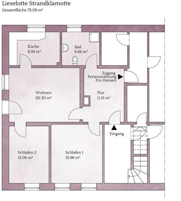 Lieselotte Strandklamotte bietet Platz für vier Personen und es besteht die Möglichkeit, die Wohnung mit dem 1-Zimmer-Apartement Fru Hansen zu verbinden. In der Bauernhaus-Ferienwohnung gibt es zwei Schlafzimmer, ein helles Wohnzimmer, eine voll ausgestattete Küche sowie eine einladende Südterrasse.