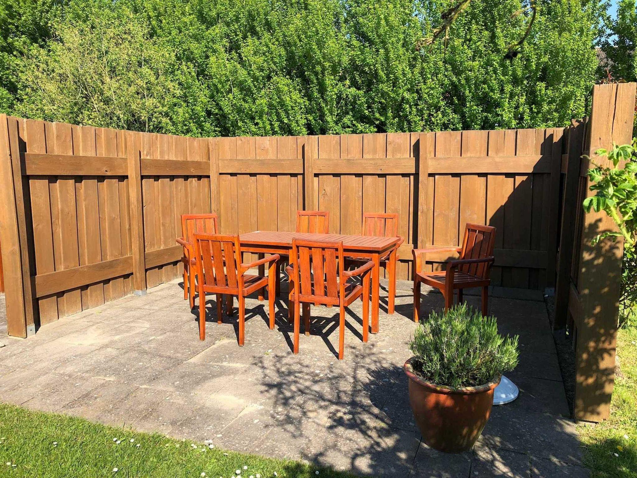 Auch für diese Wohnungen ist im Garten eine eigene Terrasse angelegt. Der Garten mit Spielwiese ist 2000 qm groß.