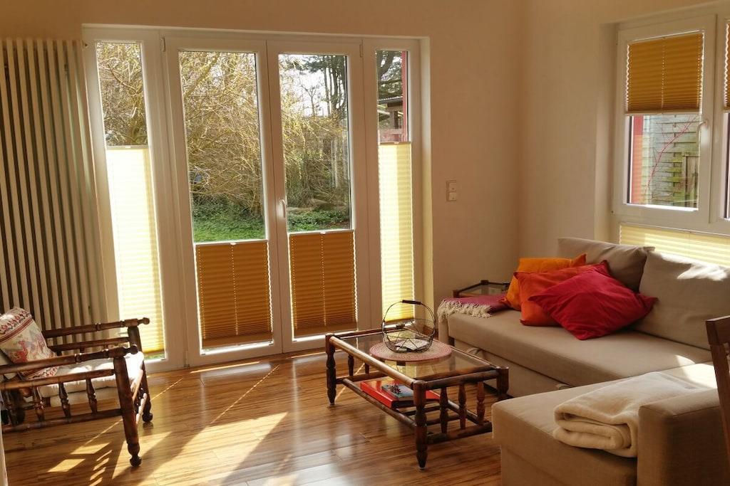 Generously designed, light-flooded apartment with a large terrace and garden. Idyllically located in a rural setting, by the village pond. Vacation with dog.