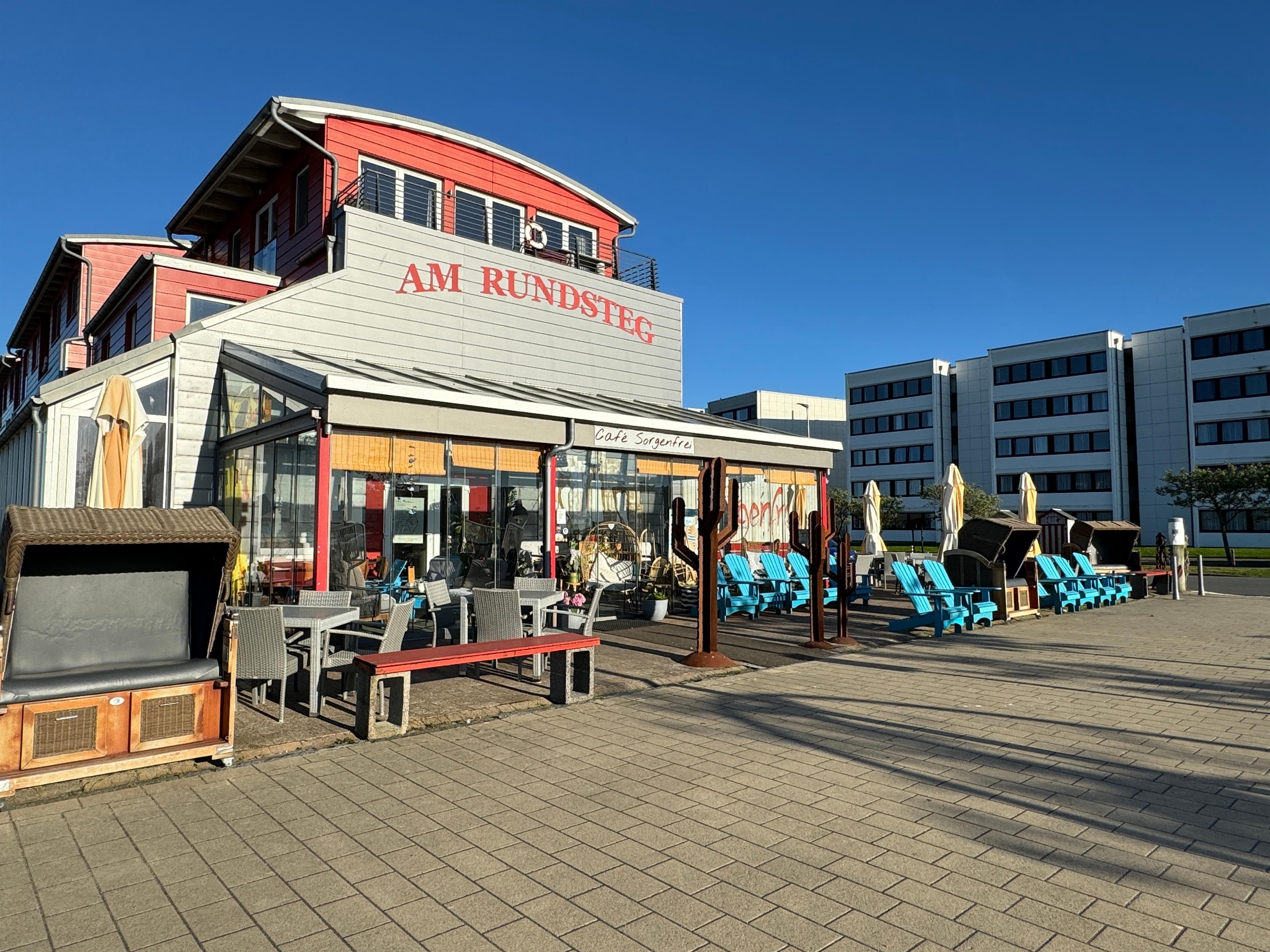Auf den Terrassen können Sie sich zwischen Sonnenliegen, einem Strandkorb und einer Hängematte entscheiden oder Sie probieren einfach alles aus :-)