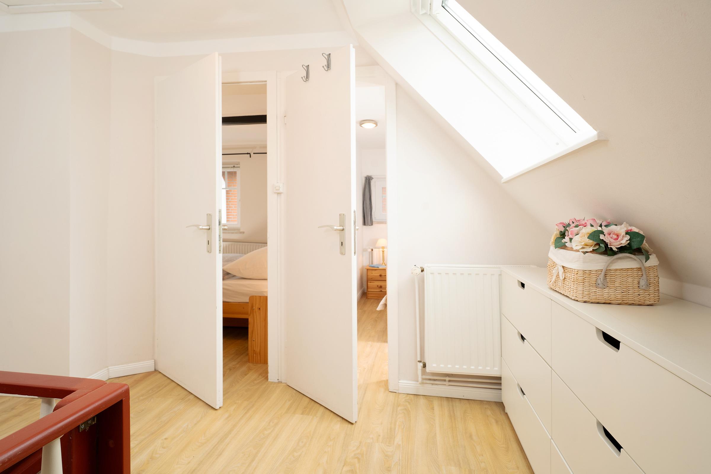 Schlafzimmer 2: 1 Einzelbett (90x200 cm), Kleiderschrank, Verdunkelung: Rollläden, Platz für ein Babybett vorhanden
