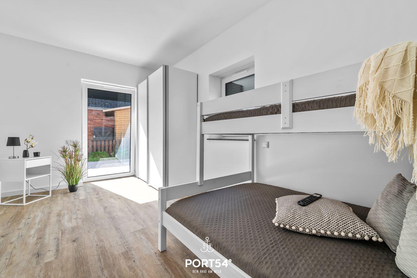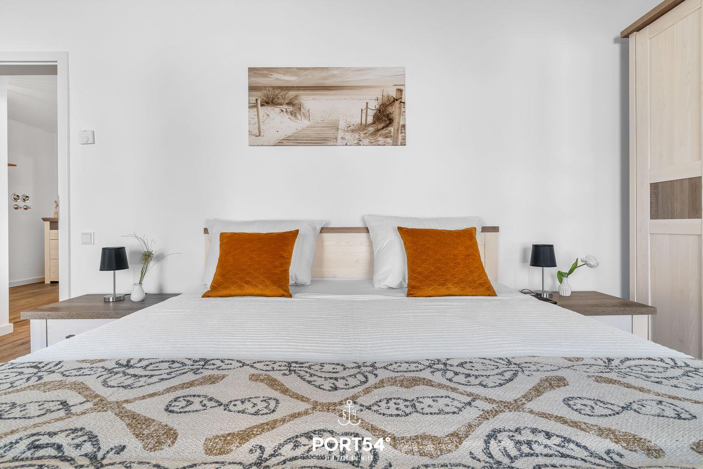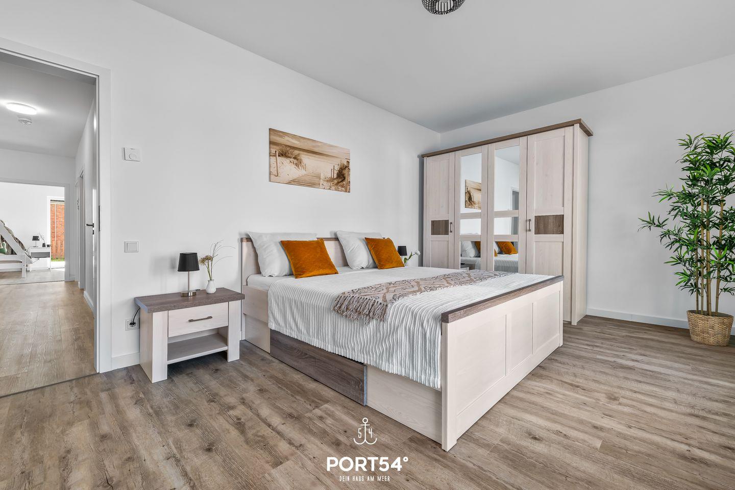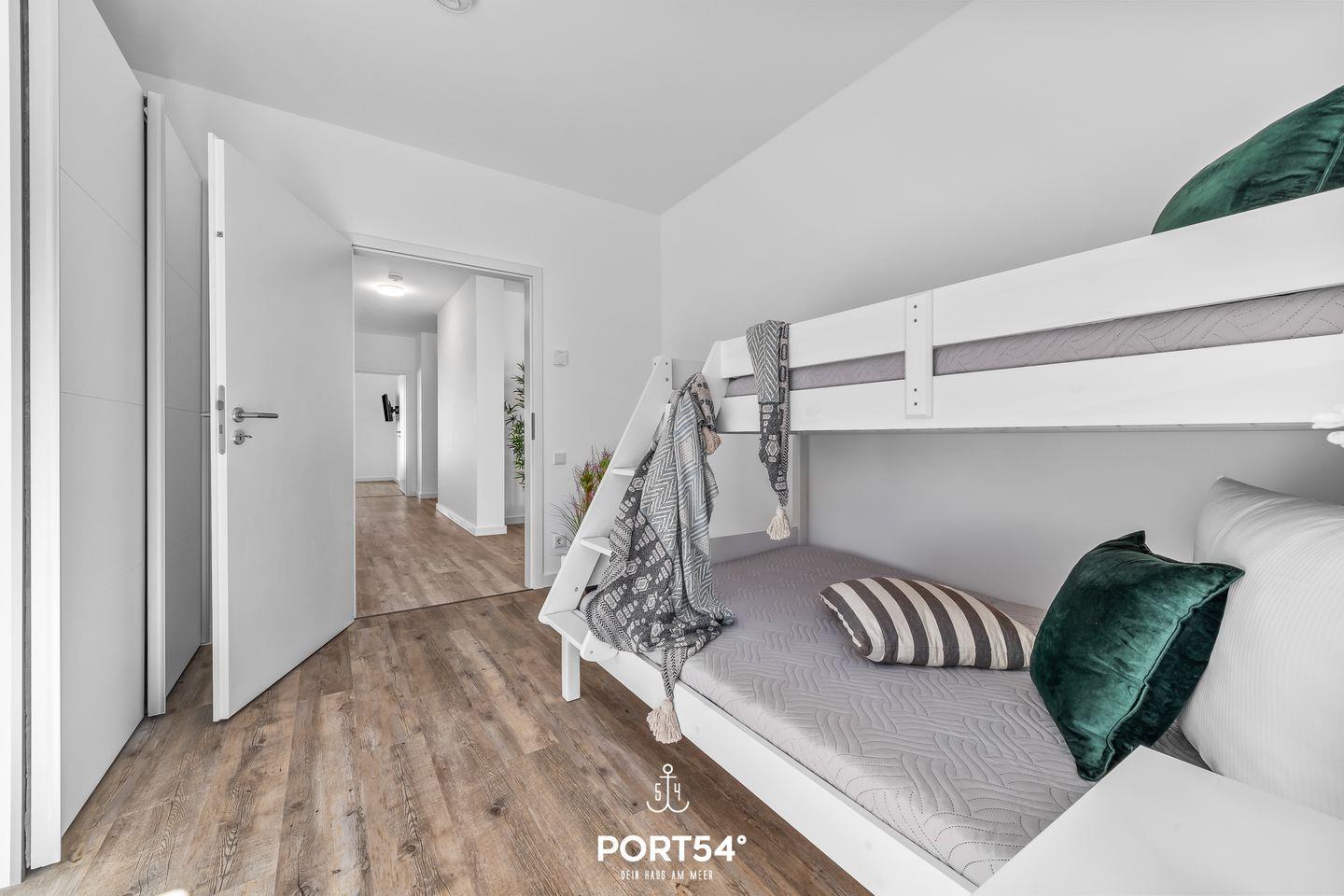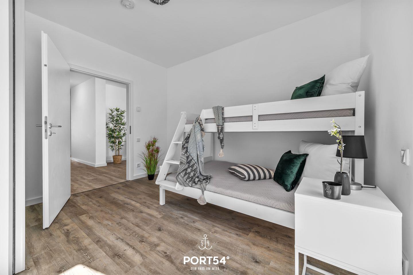 Die Schlafplätze verteilen sich auf drei Schlafzimmer. Eines verfügt über ein großes Doppel-Boxspringbett (2x Spannbettlaken 90x200) für zwei Personen. Im zweiten und dritten Schlafzimmer befindet sich jeweils ein raffiniertes Etagenbett mit einer Liegefläche von 90x200 cm oben und Liegefläche von 120x200 cm unten für bis zu zwei Personen.