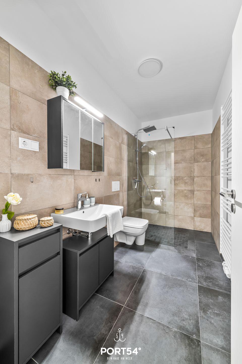 Die Wohnung "Ostseeinsel" ist eine stufenfreie Wohnung mit niedrigen Lichtschaltern und ebenerdigen Duschen. Gäste mit eingeschränkter Mobilität werden diese Ausstattung zu schätzen wissen.