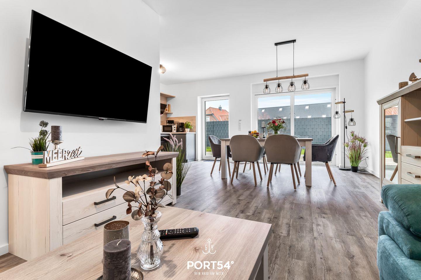 Fühlen Sie sich wie Zuhause - in der "Meerheimat"! Auf zwei Etagen und über 122 m² Wohnfläche bietet das Haus neben drei Schlafzimmern, zwei Badezimmern (Finnische Sauna im oberen Bad), einem geräumigen Wohn- und Essbereich mit angrenzender, offener Küche auch eine vollmöblierte Sonnenterrasse.