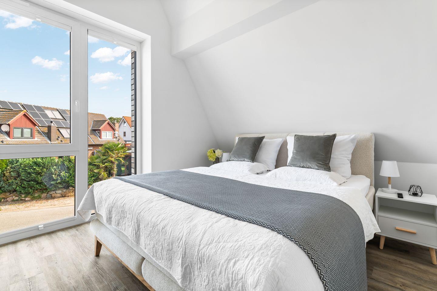 Fühlen Sie sich wie Zuhause - im Ferienhaus "Donnerkeil"! Auf zwei Etagen und 130 m² Wohnfläche bietet das Haus neben drei Schlafzimmern, zwei Badezimmern, einem geräumigen Wohn- und Essbereich mit angrenzender, offener Küche auch eine vollmöblierte Sonnenterrasse. Im Erdgeschoss befindet sich der Koch- Essbereich sowie das lichtdurchflutete Herz des Hauses - der Wohnbereich mit Zugang zur Terrasse. Im Obergeschoss erwarten Sie drei Schlafzimmer, sowie das luxuriöse Badezimmer mit finnischer Sauna. Eines der Schlafzimmer verfügt über ein großes Doppel-Boxspringbett für zwei Personen. Im zweiten Schlafzimmer befindet sich ein Etagenbett mit einer Liegefläche von 90x200 cm oben und unten. Im dritten Schlafzimmer finden Sie zwei Einzelbetten mit den Maßen 90x200 cm.