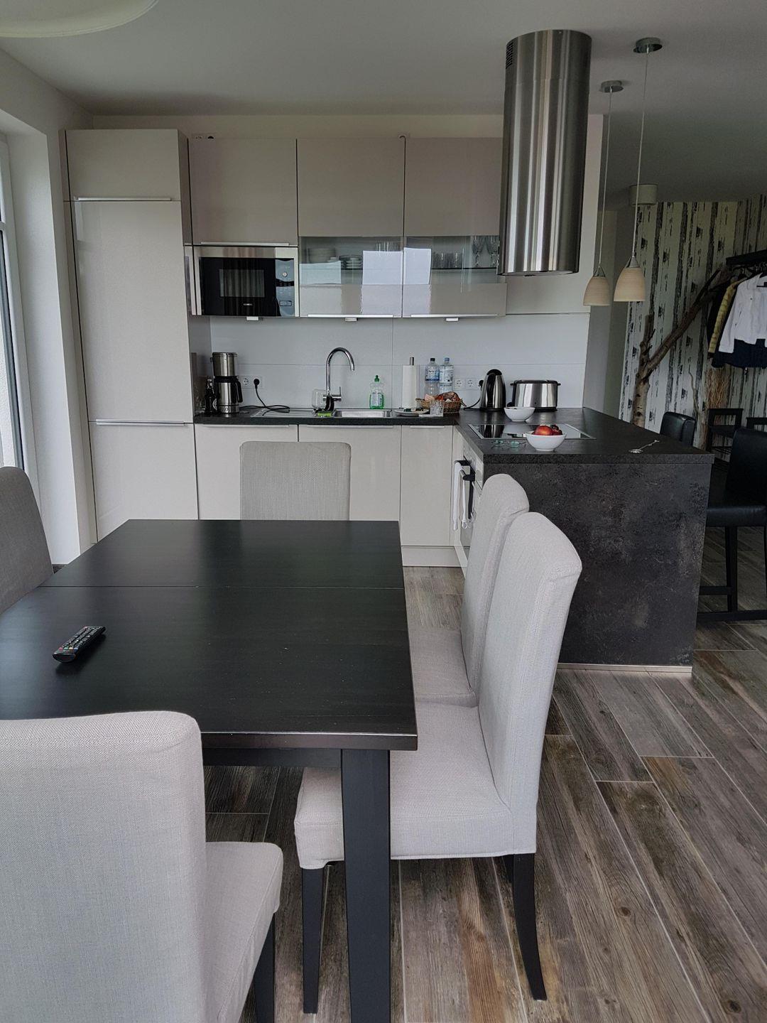 Die Wohnung befindet sich im ersten Stock und bietet Platz für bis zu sechs Personen. Mit drei komfortablen Schlafzimmern und einem modernen, offenen Wohnbereich, der mit einer vollausgestatteten Küche, einem Essbereich und einer gemütlichen Sofaecke ausgestattet ist, ist dieses Zuhause perfekt für gemeinsame Stunden mit Ihren Liebsten. Die Fußbodenheizung sorgt auch während kühler Abende für ein angenehmes Raumklima und lädt zum Entspannen ein.