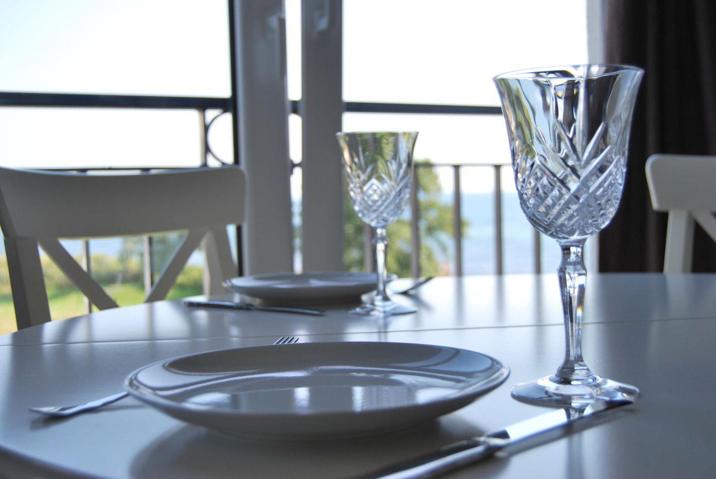 Genießen Sie den atemberaubenden Meerblick vom Balkon aus im Strandkorb, der sich perfekt für gemütliche Frühstücke in der Sonne oder entspannte Abende mit Blick auf den Sonnenuntergang eignet. Die offene Küche ist voll ausgestattet und verfügt über moderne Geräte wie einen Herd, Backofen, Kühlschrank und Geschirrspüler – hier können Sie Ihre Kochkünste entfalten! Ein gemütlicher Essbereich lädt dazu ein, gemeinsam Mahlzeiten zu genießen und unvergessliche Momente zu verbringen.