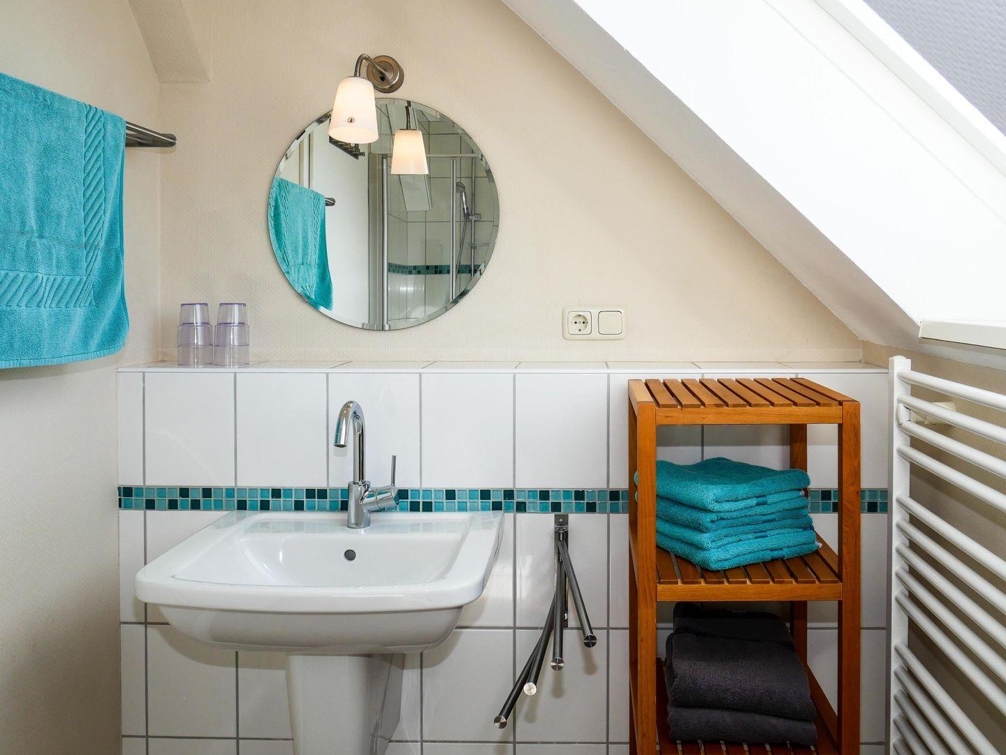 Das Badezimmer ist mit einer Dusche und einer Wanne ausgestattet, sodass Sie nach einem erlebnisreichen Tag auf der Insel in völliger Entspannung abtauchen können. Ein zusätzliches Gäste-WC erhöht den Komfort während Ihres Aufenthalts. WLAN ist im gesamten Apartment verfügbar, damit Sie auch im Urlaub immer verbunden bleiben können.