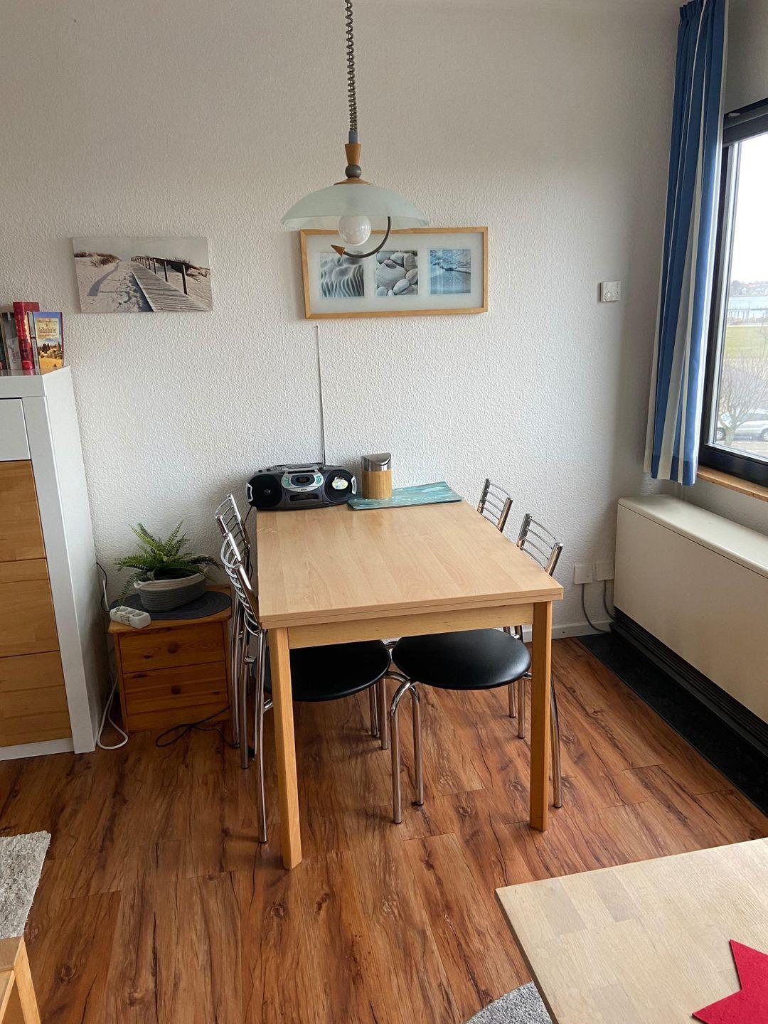 Während der Sommermonate sind ein Lebensmittelgeschäft , ein Bäcker , sowie ein Restaurant in wenigen Minuten zu Fuß erreichbar. Derliegt in unmittelbarer Nähe. Dort finden eine Bootsvermietung, die Surf- und Segelschule. Das "Fehmare" (Hallenbad und Sauna) ist fußläufig erreichbar. Kleine maritime Ferienwohnung mit Yachthafenblick und auf den neuen Aussichtsturm. Die strandnahe Wohnung mit 29 qm befindet sich in der 2. Etage. Zur Ausstattung gehören 1 Pantryküche, 1,5 Zimmer und 1 Bad. Zum Schlafen stehen Ihnen ein Doppelbett und 1 Etagenbett zur Verfügung. Die Wohnung ist zweckmäßig eingerichtet. Ein kostenloser Parkplatz gehört dazu.