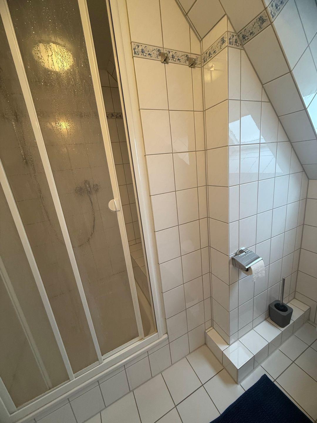 Die Maisonette-Wohnung verteilt sich über das 1. Obergeschoss und das Dachgeschoss eines gemütlichen, modernen Hauses und verfügt über eine ansprechende Ausstattung, die keinen Wunsch offen lässt. Genießen Sie den Meerblick vom im Dachgeschoss befindlichen Balkonfensters.