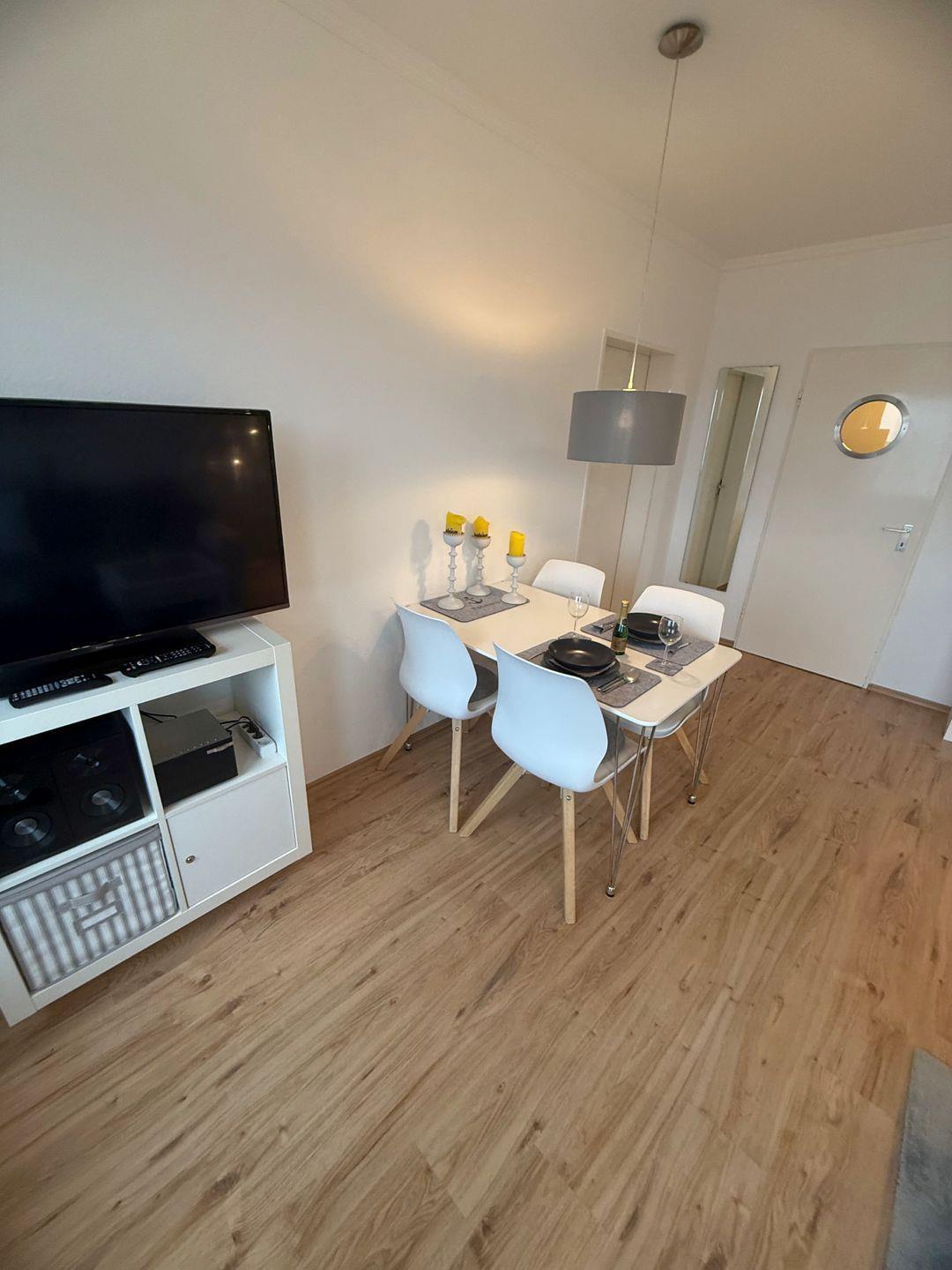 Flat Screen-TV, Schlafsofa (für 1 Person), Esstisch, Sideboard