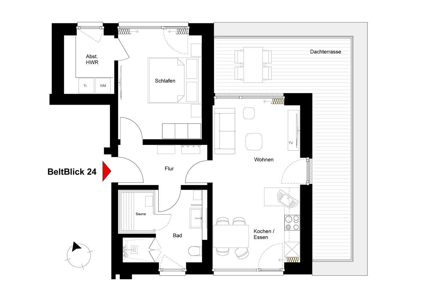 BeltBlick 24 – Dachterrasse. Meerblick. Sauna. Design.