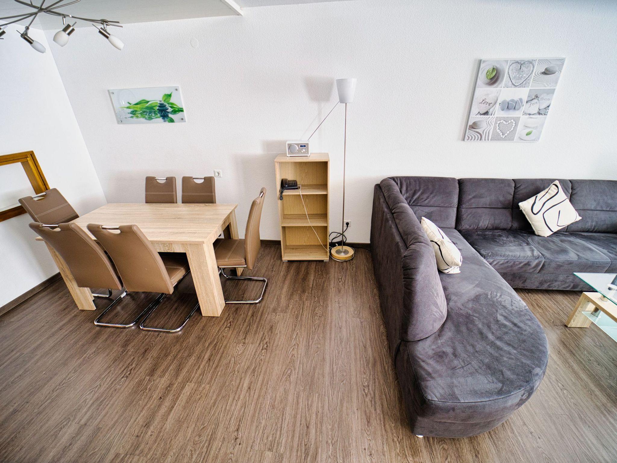 Diese Ferienwohnung befindet sich in der 2. Etage eines Appartementhauses und bietet Platz für maximal 2 Erwachsene und 2 Kinder unter 16 Jahre. Im Kinderzimmer, abgetrennt durch eine Gardine, befindet sich ein Etagenbett.