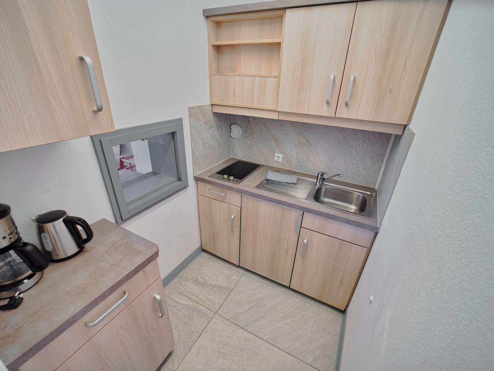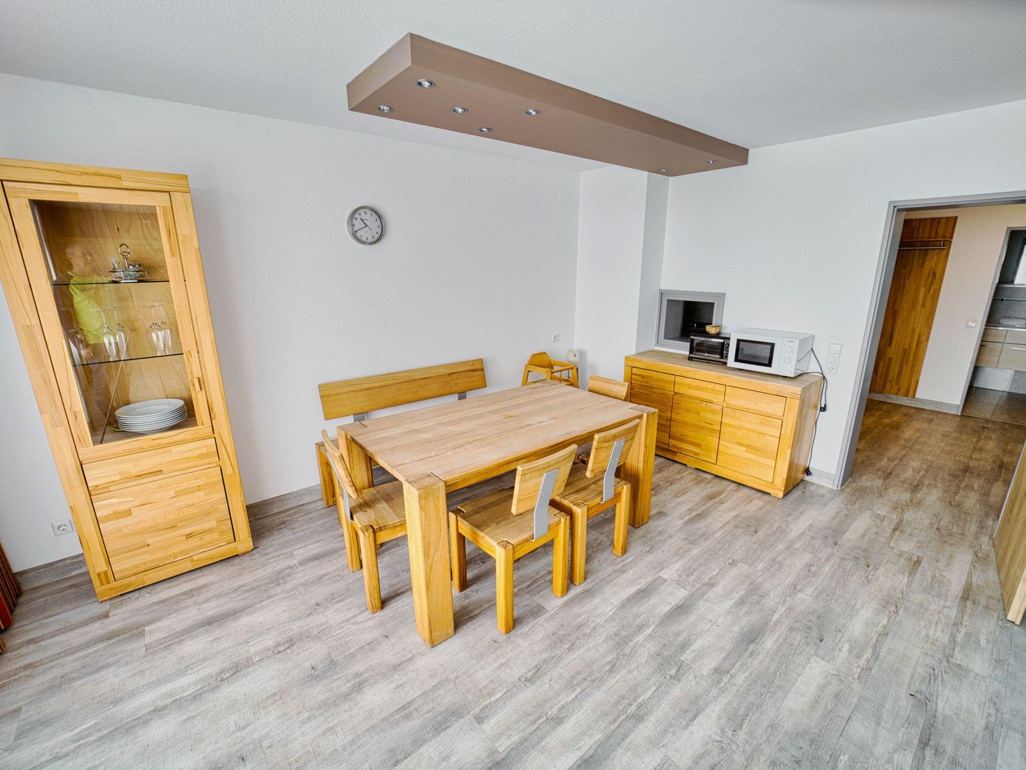 Diese Ferienwohnung befindet sich in der 1. Etage eines Appartementhauses und bietet Platz für maximal 2 Erwachsene und 2 Kinder unter 16 Jahre. Im Kinderzimmer, abgetrennt durch eine Tür, befindet sich ein Etagenbett.