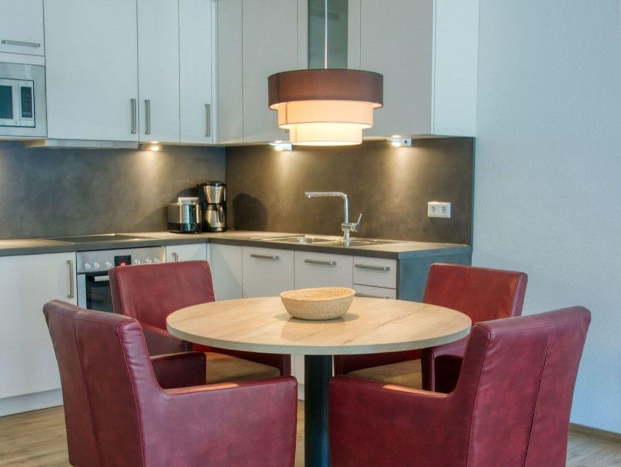 Die Ferienwohnung bietet viel Platz und ist in einem ruhigen Stil mit klaren Linien eingerichtet.