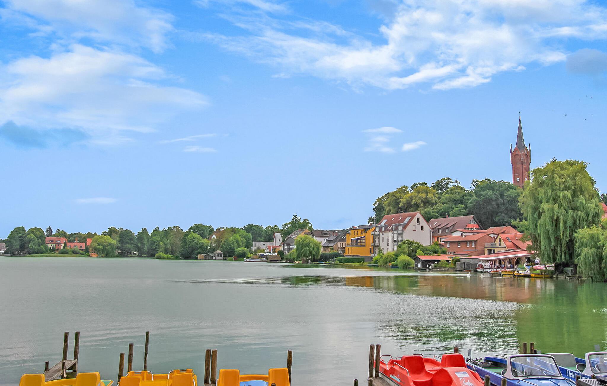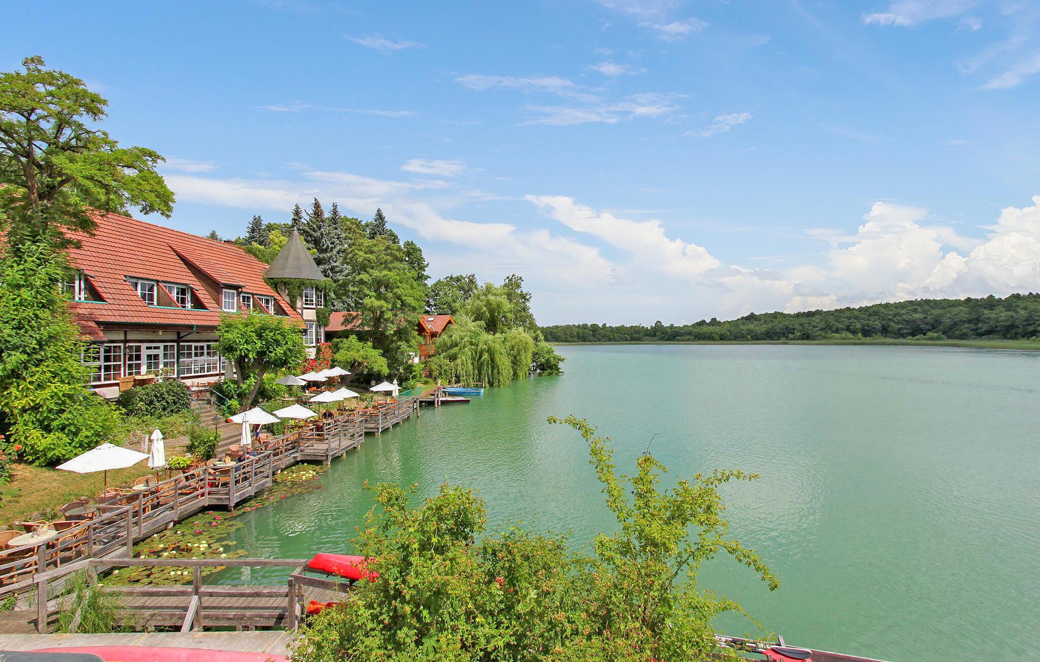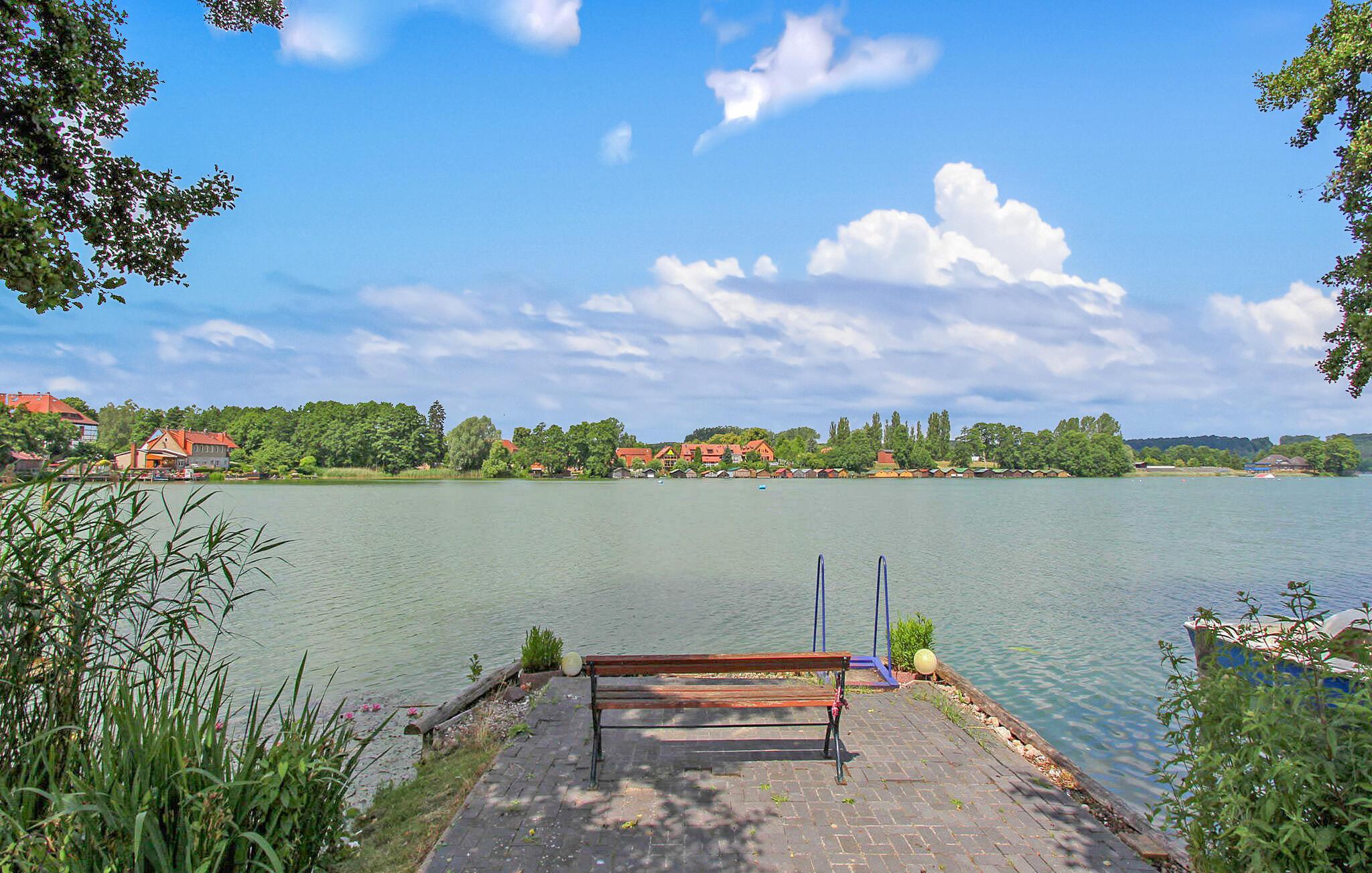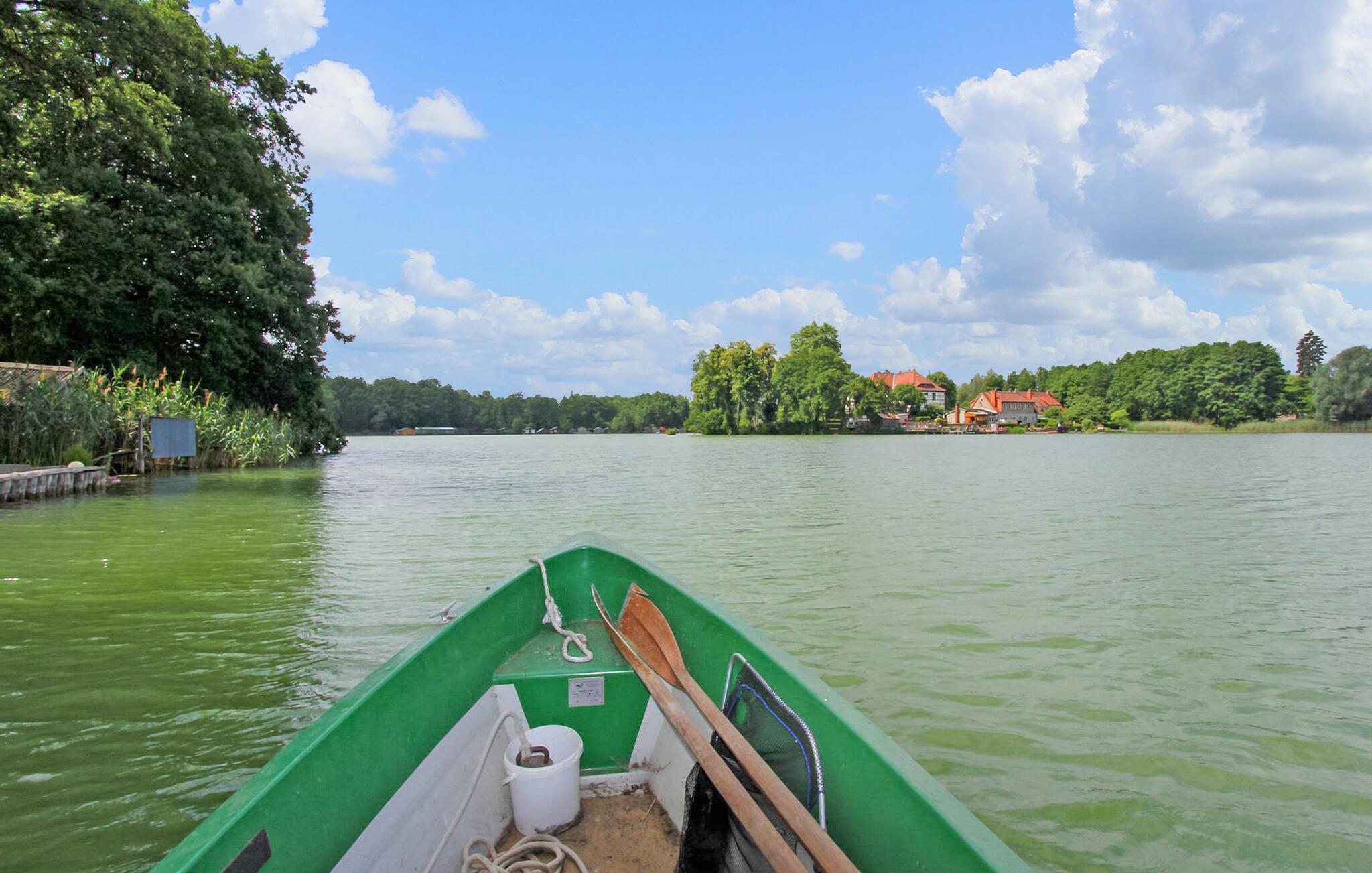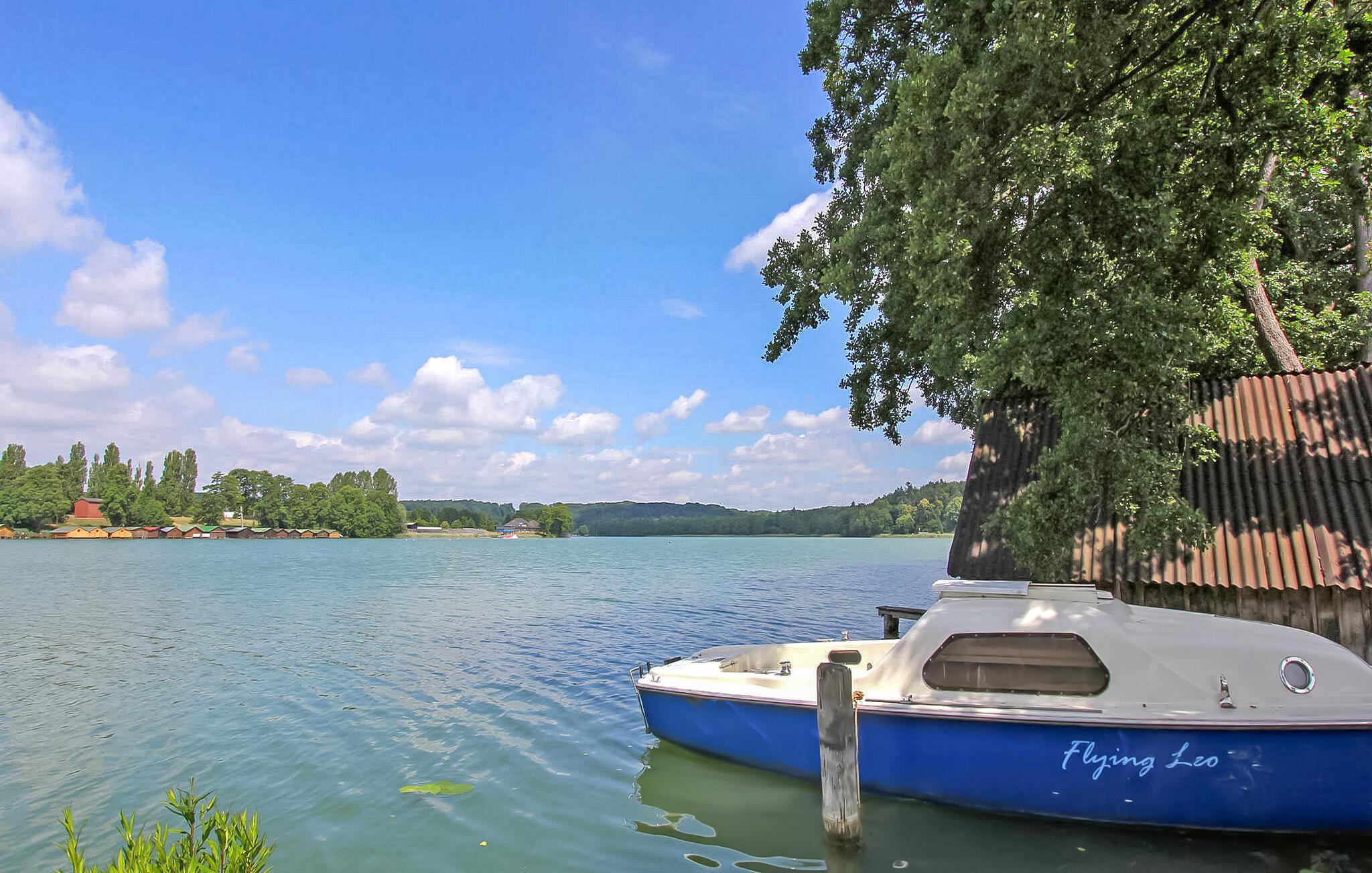 Ferielejligheden, som blev totalrenoveret og nyindrettet i 2018, ligger separat i stueetagen af en beboelsesejendom på ejerens 2.500 kvadratmeter store havnefrontsejendom direkte ved Feldberger Haussee. Badestranden ved Breiten Luzin ligger omkring 1,5 km væk. Byens centrum, restauranter og indkøbsmuligheder ligger inden for 1 km. Lejligheden er moderne indrettet med opholdsstue (polstrede møbler med sovefunktion som opredning til et barn, fladskærms-tv, stereoanlæg, spisebord), åbent tekøkken (elkomfur med ovn, køleskab med fryser, mikroovn). , diverse køkkenmaskiner), et soveværelse (dobbeltseng) og et badeværelse med brus/toilet. Lejligheden er centralt opvarmet. Der er en båd og fiskemole med siddepladser og en badestige samt en robåd (10 EUR/dag) direkte på søen. En elektrisk bådmotor kan lejes på stedet. Der er også en møbleret terrasse, en grill, liggestole, opbevaring af cykler og en parkeringsplads. Den samlede pris inkluderer sengelinned, håndklæder, slutrengøring samt vand- og energiforbrug. Feldberg er underlagt turistskat. Spa-afgiften skal betales på stedet. Feldberger Haussee fungerer som træningsvand for den lokale vandskiklub. Kurstedet Kneipp Feldberg har givet navn til det omkringliggende charmerende sølandskab, et bakket terminalmoræneområde. Området Feldberg Lake District er et tilflugtssted for aktive kendere såvel som gæster, der leder efter afslapning. Uberørte skove, bølgende bakker og krystalklare søer som Haussee, Breite og Schmale Luzin inviterer dig til at svømme, padle, fiske, cykle eller vandre.Ud over Kneipp spa-parken er der en passagerbådtur i Feldberg, smukke strande, vandsport, ridning og mere Karretur. I Carwitz, ved bredden af søen af samme navn, kan du finde ud af om hans liv og arbejde i forfatteren Hans Falladas tidligere hjem.