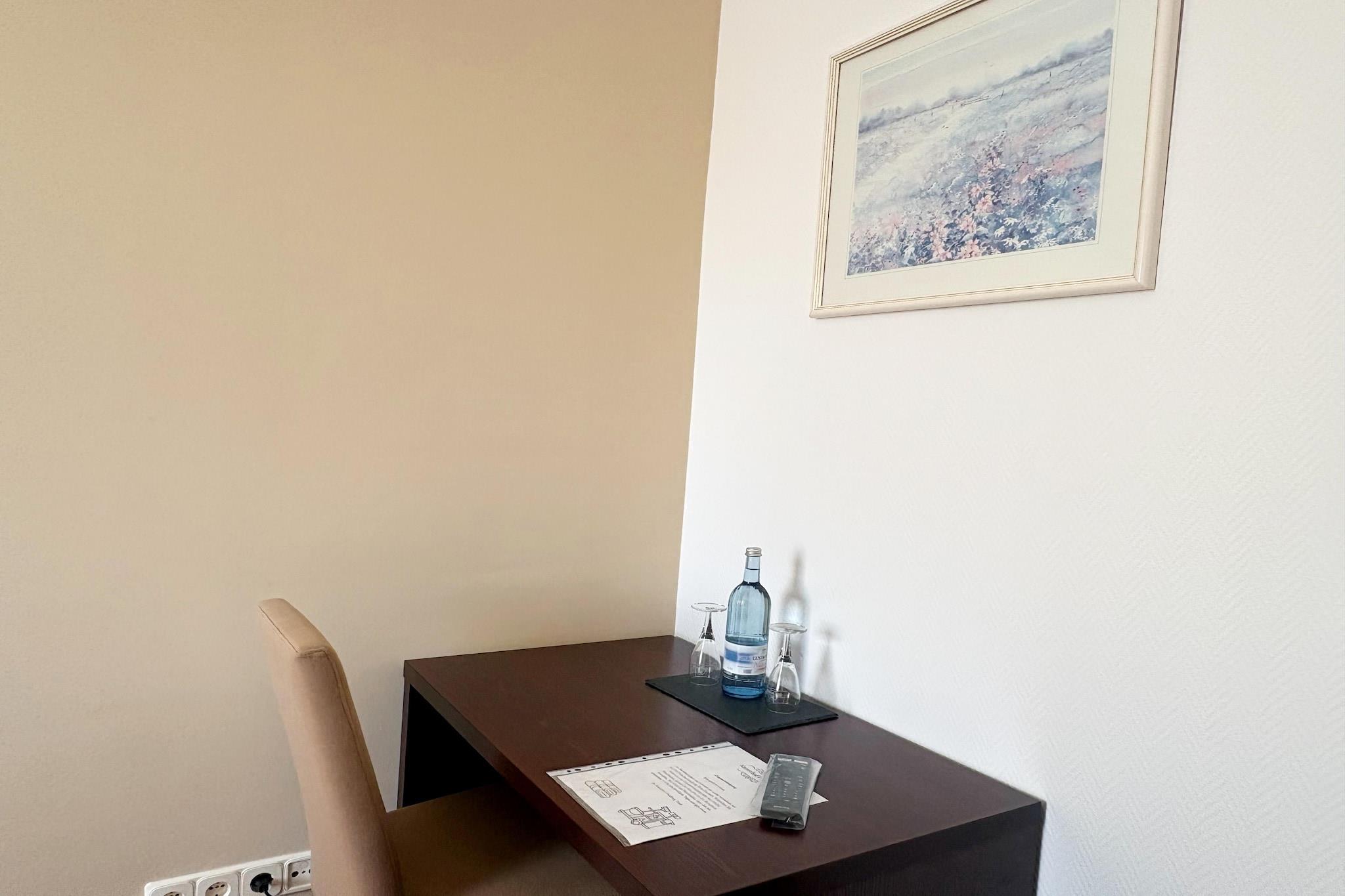 Omgivet af søer, skovstier og den friske luft i den statsgodkendte Kneipp-kurby Feldberg tilbyder dette kørestolsvenlige dobbeltværelse på Kaiserhof Feldberg by Resorts et ophold designet med fokus på ro og tryghed. Hotellet blander naturlige omgivelser med gennemtænkt komfort og skaber et indbydende miljø, hvor gæsterne kan slappe af og nyde uafhængighed uden kompromis. Ideelt for rejsende, der søger tilgængelighed, velvære og rolige øjeblikke tæt på naturen, gør dette værelse afslapning ubesværet. Kørestolsvenligt dobbeltværelse 1. Rummelig opholds- og soveområde med en komfortabel dobbeltseng 2. Handicapvenligt badeværelse med bruseniche, håndvask, toilet og hårtørrer 3. Fladskærms-tv med kabel- og satellitkanaler, inklusive Netflix 4. Komfortabelt siddeområde med rigelig plads til nem bevægelse 5. Gratis Wi-Fi og varme for komfort året rundt 6. Trinfri adgang via elevator til alle hotellets hovedområder 7. Adgang til terrasse og have med liggestole 8. Rolig, ikke-ryger layout designet til tilgængelighed 9. Kæledyrsvenlig (ekstra gebyr på 12 euro/kæledyr/nat) Hotellets faciliteter og faciliteter 1. Spil og fritidsmuligheder, herunder billard, dart, bueskydning, minigolf, vandsport, cykling, vandreture, ridning, fiskeri og aftenunderholdning 2. Anlagt have og solterrasse 3. Restaurant og bar på stedet 4. Betaling for parkering 5 euro pr. køretøj pr. dag 5. Elevatoradgang i hele hotellet 6. Receptionsservice og gæstesupport Nærliggende højdepunkter 1. Feldbergsøen og bykirken inden for gåafstand 2. Kneipp Spa Park cirka 150 m væk 3. Skovstier og cykelruter i Feldberg-søen Sådan kommer du dertil 1. Med bil via regionale veje med gratis parkering på stedet 2. Med tog til Neustrelitz eller Neubrandenburg, efterfulgt af bus eller taxa 3. Med fly via Heringsdorf Lufthavn, cirka 117 km væk Et komfortabelt og handicapvenligt ophold, hvor tilgængelighed, natur og afslapning går op i en naturlig kombination.