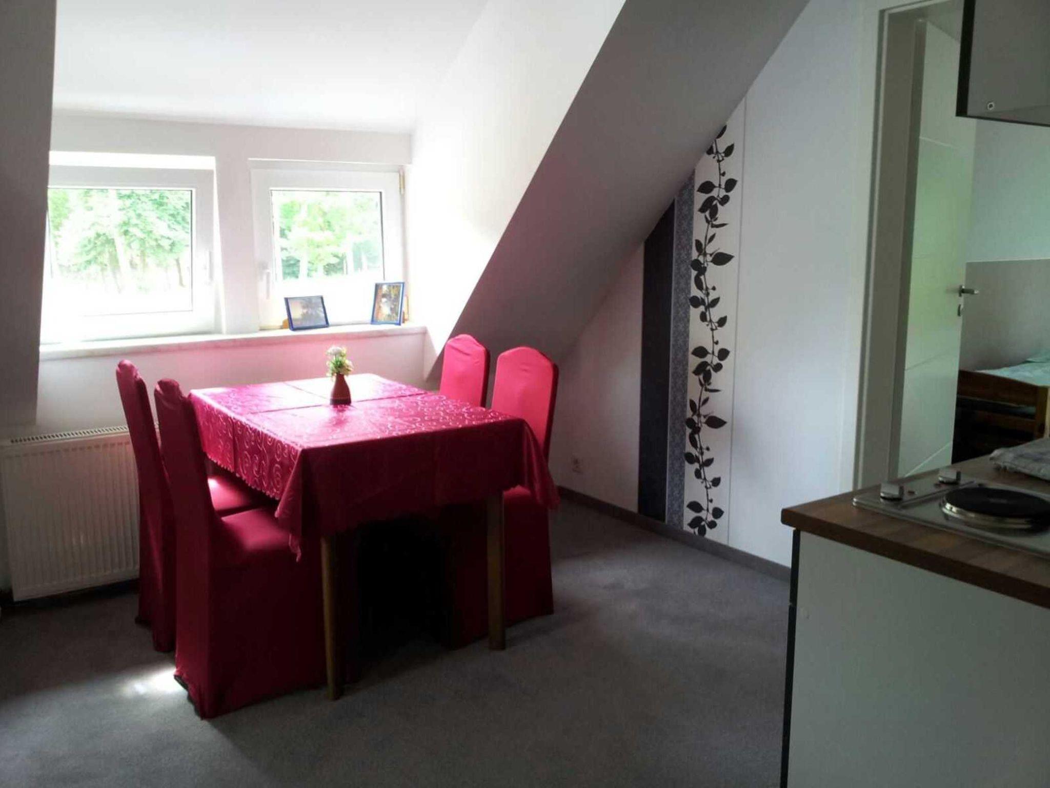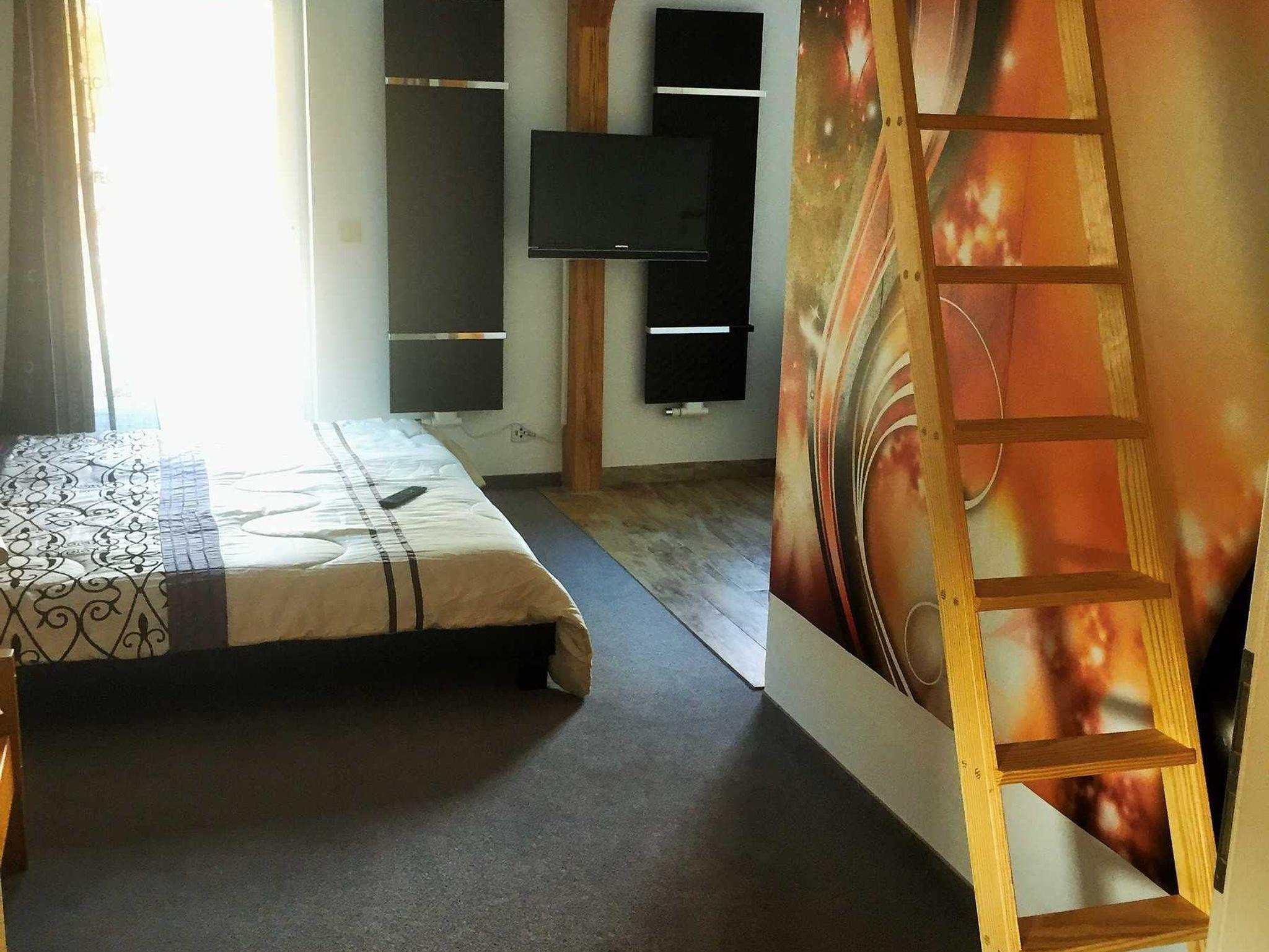 Die Ferienwohnung liegt im Dachgeschoss und bietet mit den zwei Doppelzimmern eine perfekte Lösung zum reisen mit Freunden. In jedem Doppelzimmer ist der Spitzboden mit je 2 weiteren Schlafmöglichkeiten (Aufbettung) versehen, welche über eine Leiter erreichbar sind (geeignet für Kinder ab 12 Jahren / Benutzung auf eigene Gefahr). Die Küche befindet sich in der goldenen Mitte und ist mit Kühlschrank, zweiflammigen Herd, Mikrowelle ausgestattet. Der großzügige Balkon lädt zum relaxen ein.