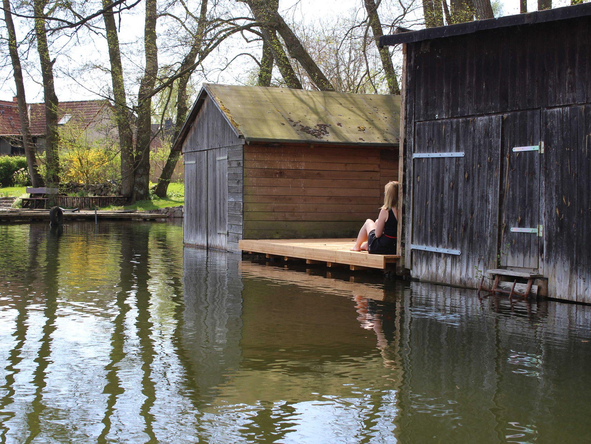 Die Ferienhäuser befinden sich am Ortsrand, zu anderen Seite Waldrand, von Feldberg. Das ist hier so ziemlich der höchste Punkt, Sie genießen hier den herrlichen Blick über den Ort, zeitgleich aber auch die Ruhe die die Natur bietet. Waldluft ist 90% sauberer als Stadtluft und das spüren Sie hier sofort. Zu den Ferienhäusern gehört eine eigene Badeplattform am Feldberger Haussee, sowie jeweils zwei Ruderboote. Diese können Sie zum Baden aber auch zum Angeln nutzen.