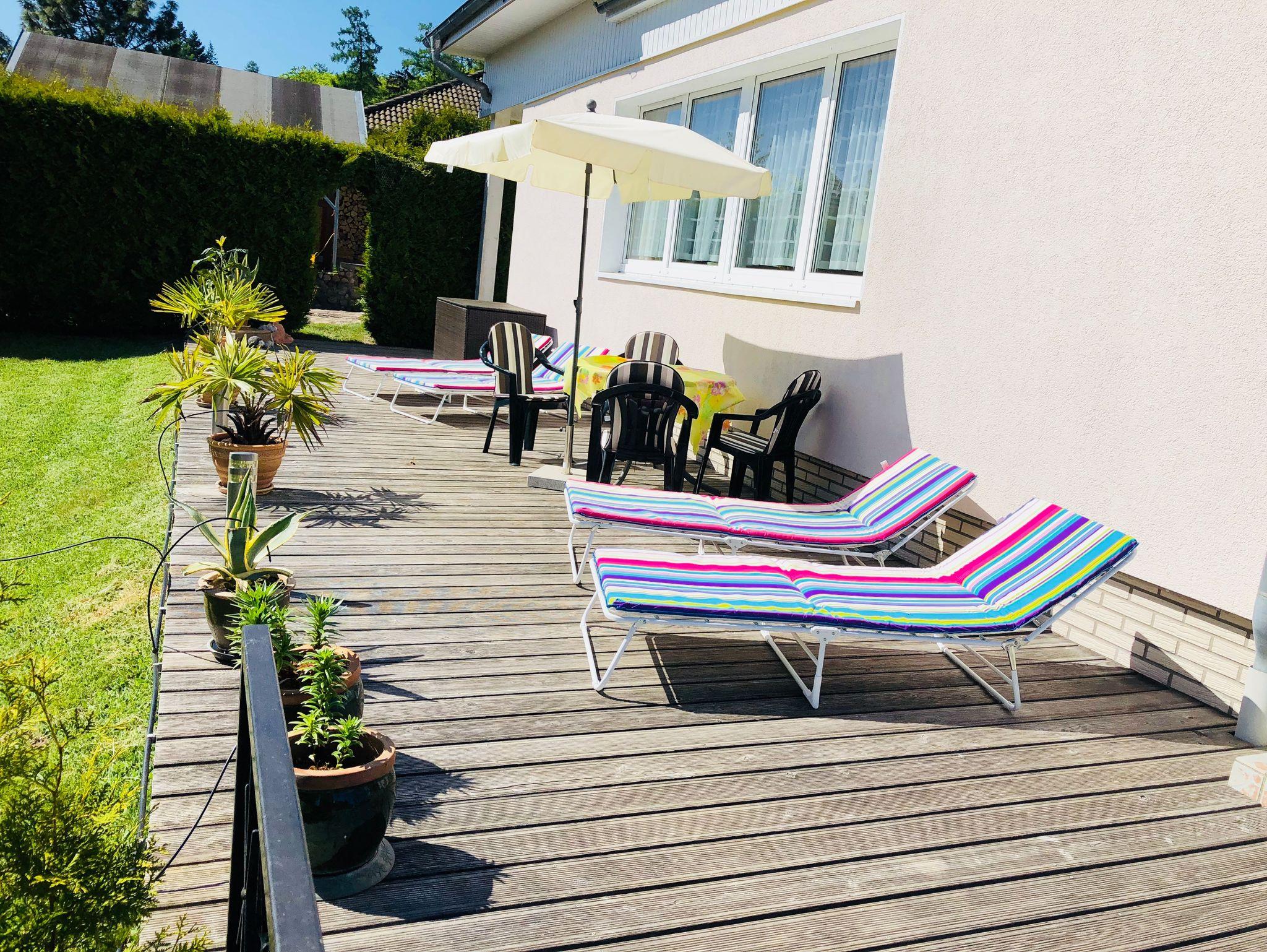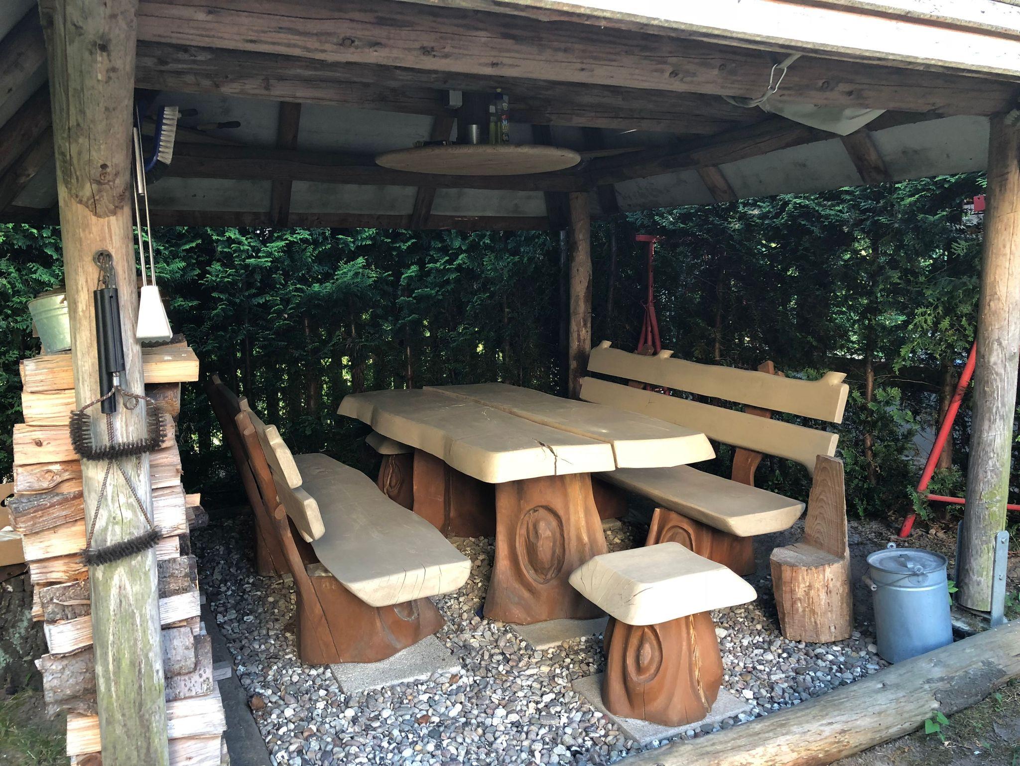 Vor Ihrer Tür laden ein Rasengarten zum Spielen für Groß und Klein und eine Südterrasse mit Gartenmöbeln und Sonnenliegen zum Sonnenbaden zum Erholen und Entspannen ein. Gleich daneben warten auf Sie unsere Feuerstelle, Grill und rustikale Grillhütte mit Sitzecke für wunderschöne Grillabende. Alles zu Ihrer alleinigen Nutzung.