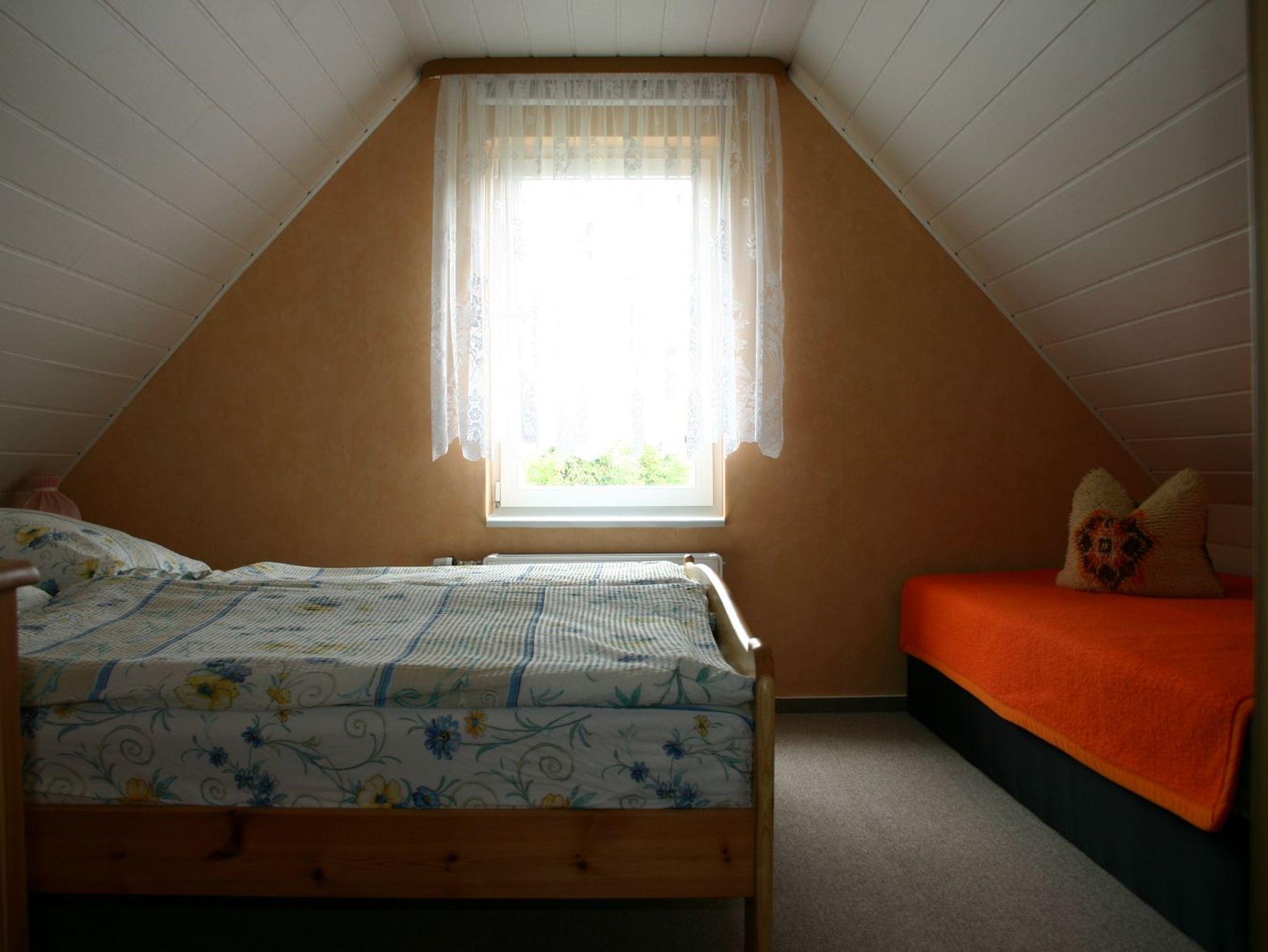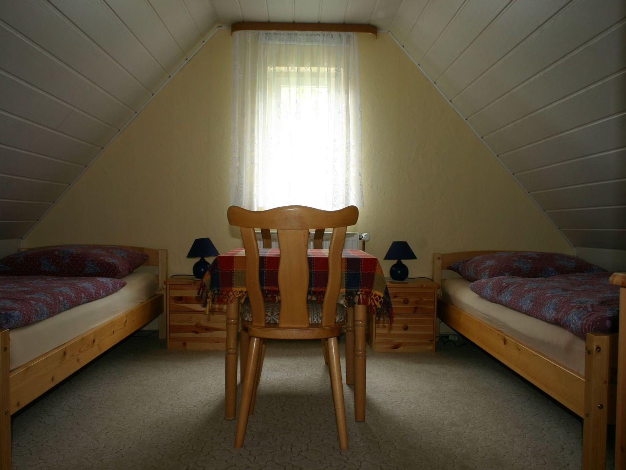 Über eine Treppe gelangen Sie zu den beiden Schlafräumen. Eines unserer Zimmer bietet Ihnen 2 getrennte Betten. Der zweite Schlafraum ist mit einem Doppelbett ausgestattet. Eine Aufbettung für ein Kind ist möglich. Bettwäsche wird zur Verfügung gestellt.
