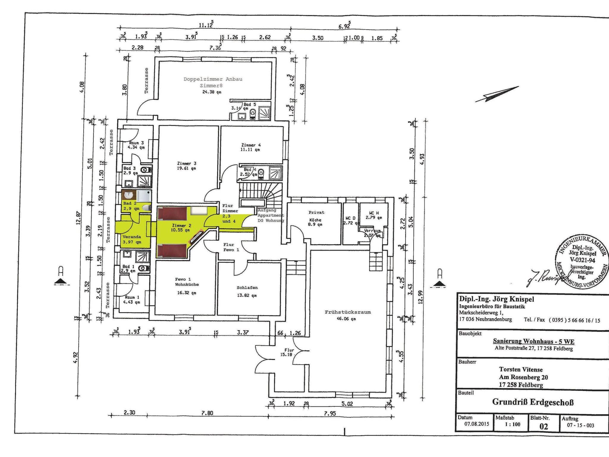 Dachgeschoss: Appartment für bis zu 8 Personen, Fewo DG bis 8 P, Erdgeschoss: Fewo 1 für 4 P, Zimmer 2 für 2 P, Zimmer 3 für 2+1 P, Zimmer 4 für 1+1P