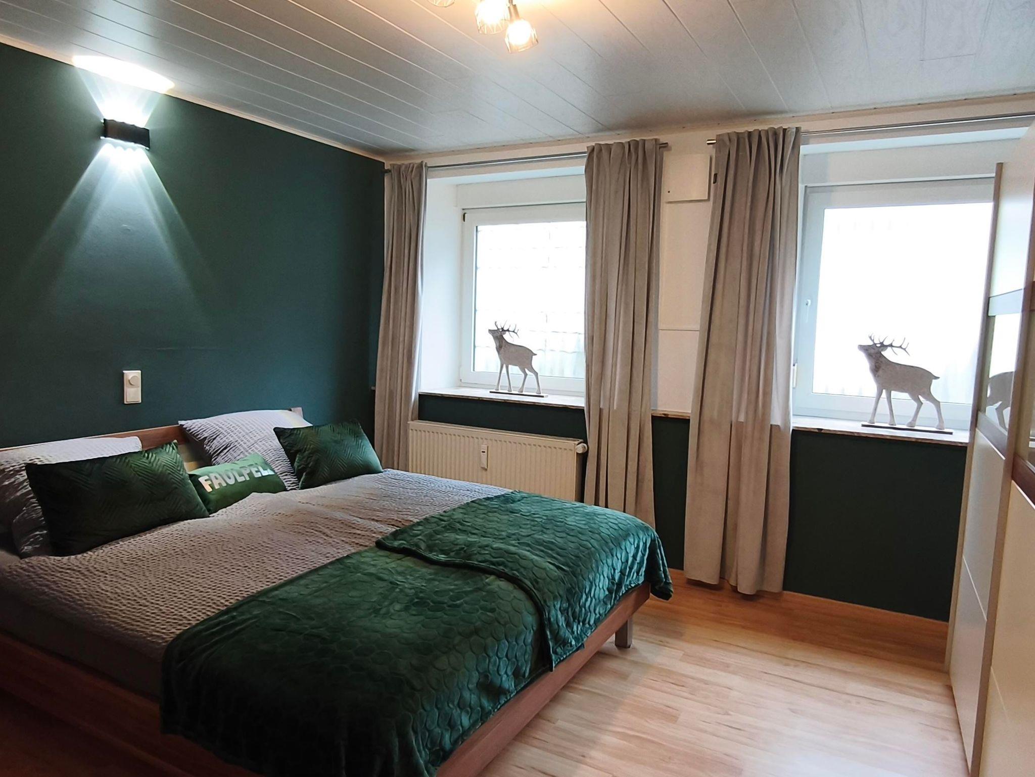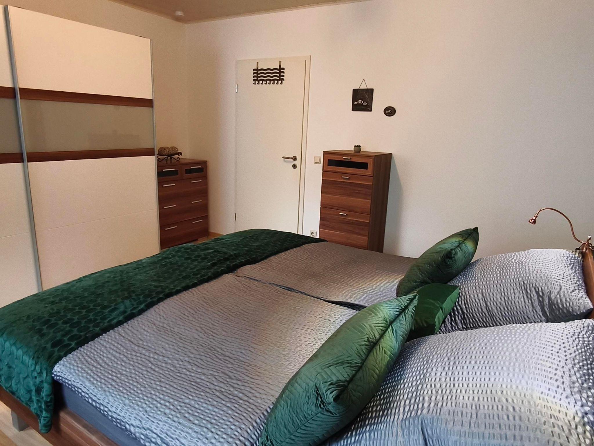 Die ebenerdige Ferienwohnung ist liebevoll und sehr gemütlich eingerichtet. Sie befindet sich im Erdgeschoss eines Zweifamilienhauses. Haustiere sind uns herzlich willkommen. Die Wohnung verfügt über eine Küche, Wohnzimmer, Schlafzimmer und Bad. Die Küche ist voll ausgestattet, inklusive Spülmaschine, Mikrowelle, Backofen, Ceran-Herd, Kühl- Gefrierkombination und einer Kapsel-Kaffeemaschine. Das neu renovierte Badezimmer verfügt über eine Regendusche, WC und Waschbecken. Föhn und Handtücher (kostenfrei) sind ebenfalls vorhanden. Im großzügigen Wohnzimmer befindet sich ein Esstisch für 6 Personen und ein gemütliches Schlafsofa. Für das Entertainment steht ein SAT-TV sowie kostenfreies WLAN zur Verfügung. Das Schlafzimmer ist mit einem Doppelbett (1,80m x 2m, inklusive Bettwäsche 1,55m x 2,20m) und einem großen Kleiderschrank ausgestattet. Ein separater, abschließbarer Raum für Fahrräder, Kinderwagen, etc. ist vorhanden und kostenfrei nutzbar. Unmittelbar vor dem Haus befindet sich ein Parkplatz für einen PKW oder Motorräder.