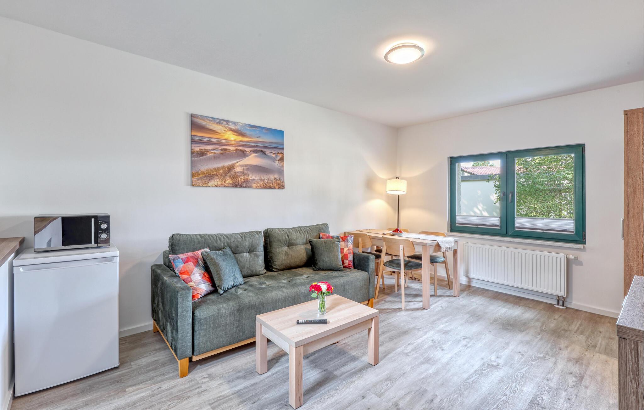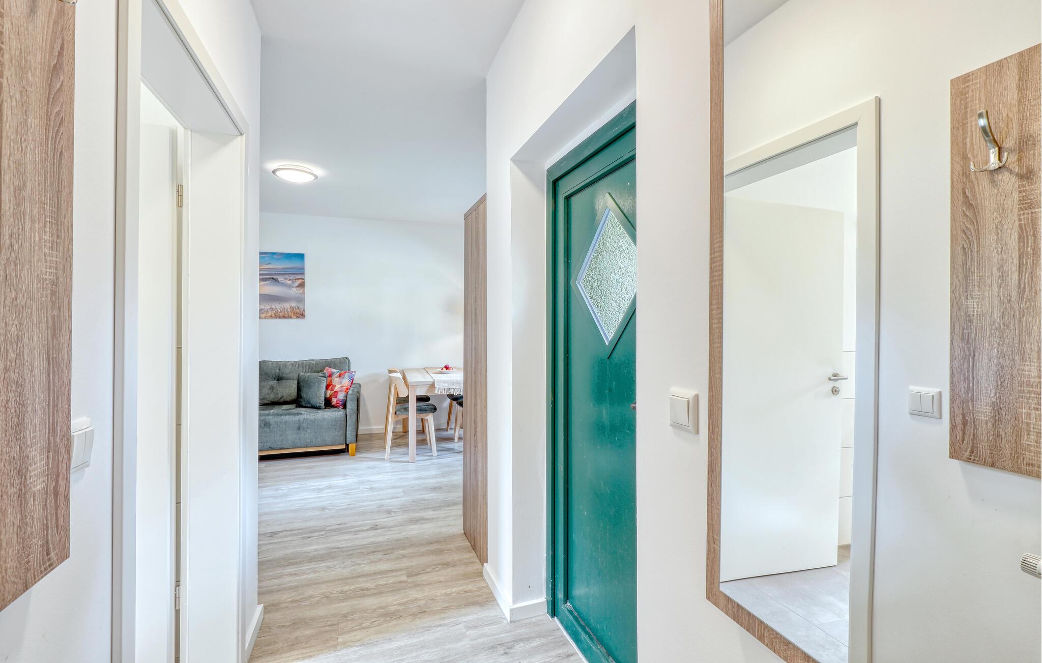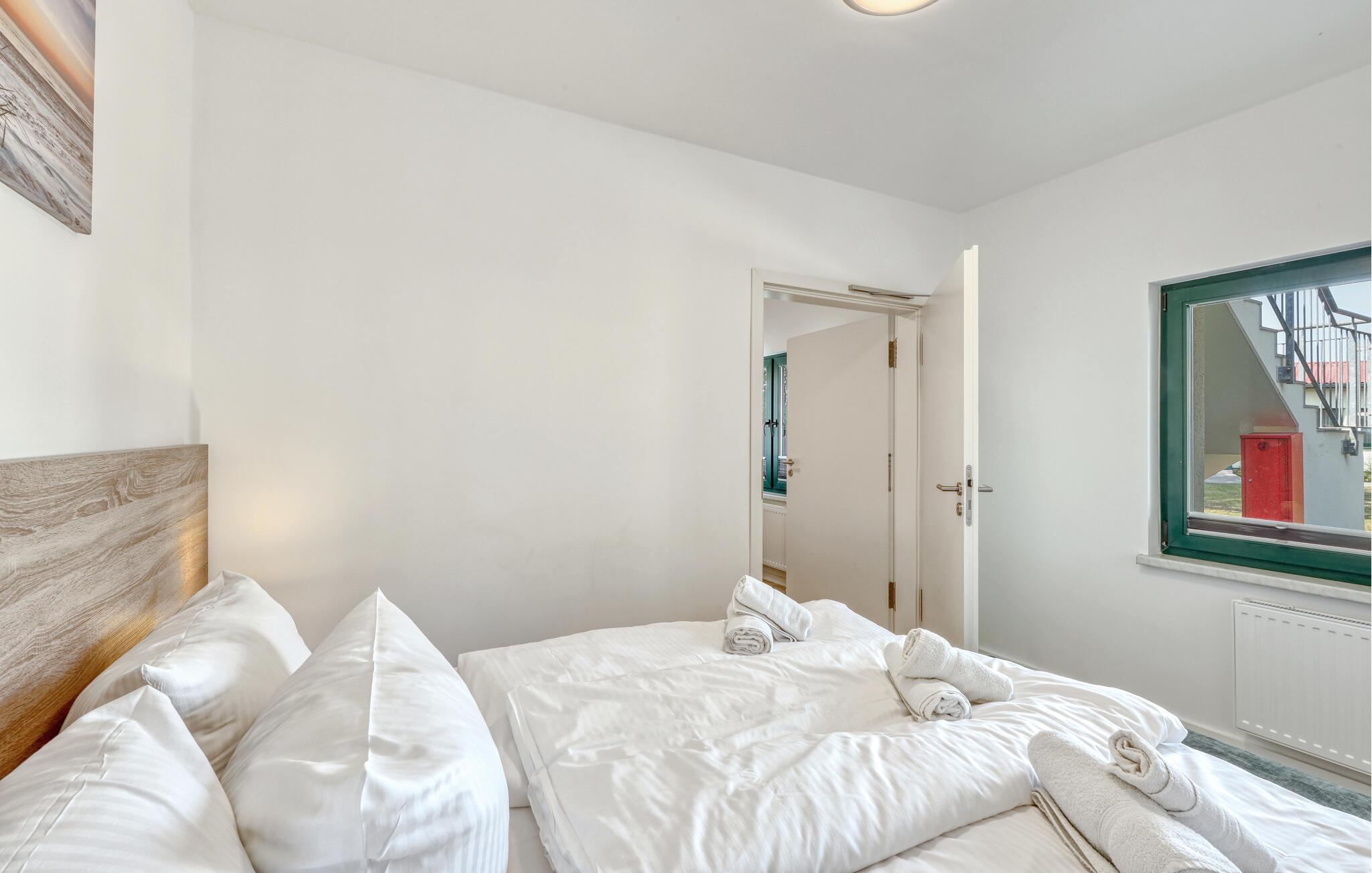 Der er lagt op til nogle fredfyldte dage i denne funktionelle og moderne lejlighed, der ligger nogle få skridt fra den smukke naturstrand. Her er der gode rammer til par, familier eller venner på tur. Feriekomplekset ligger idyllisk placeret mellem fyrreskove og klitter, ideelt til afslappende dage ved havet eller aktiv rekreation midt i naturen. Efter en begivenhedsrig dag kan I vende tilbage til de lyse rum, sætte jer til rette i de behagelige møbler og snakke længe.