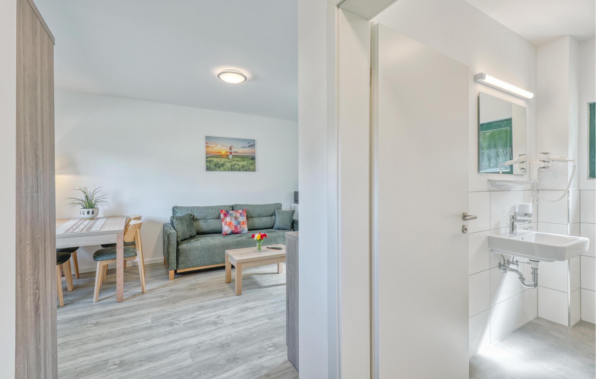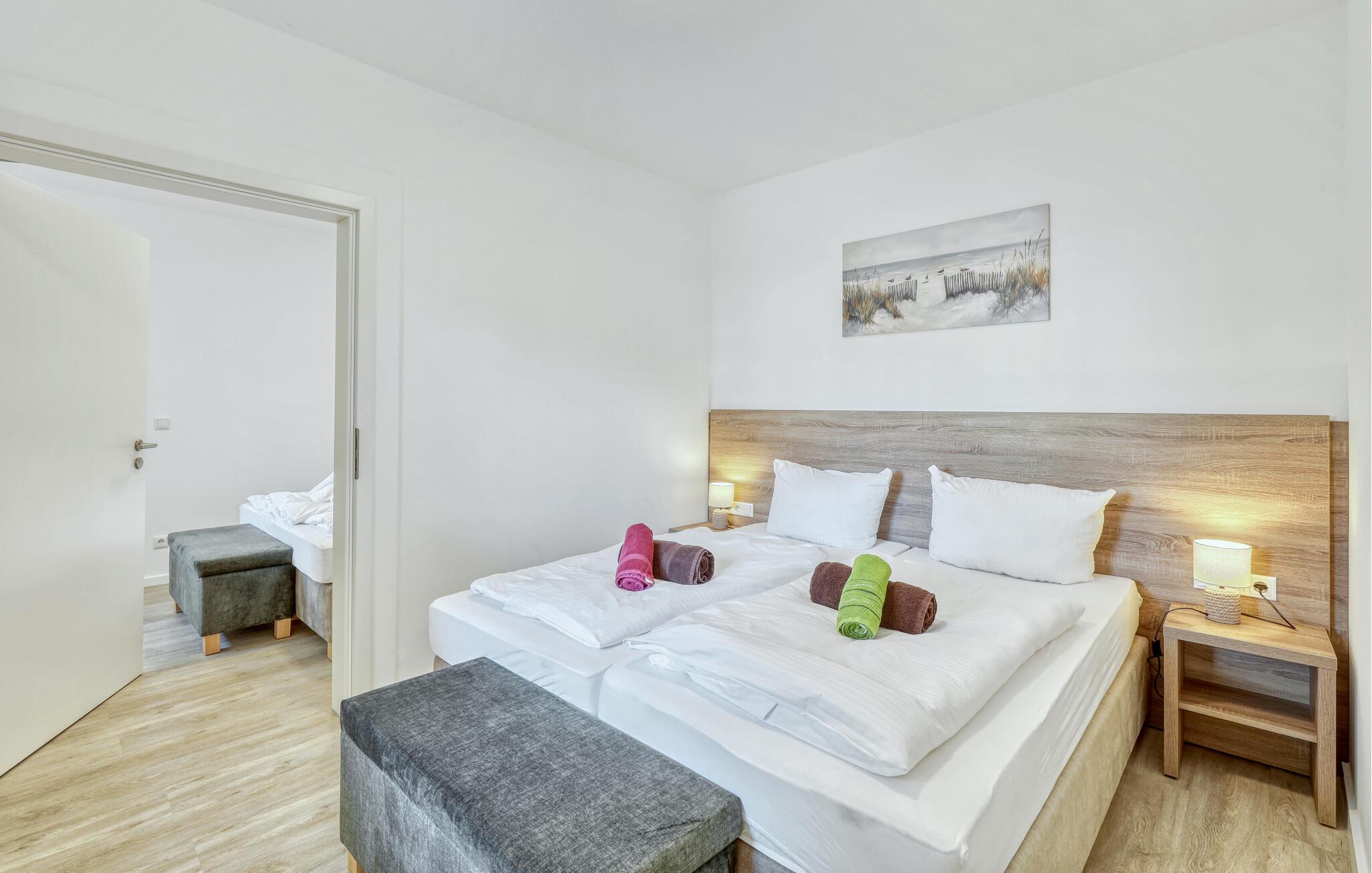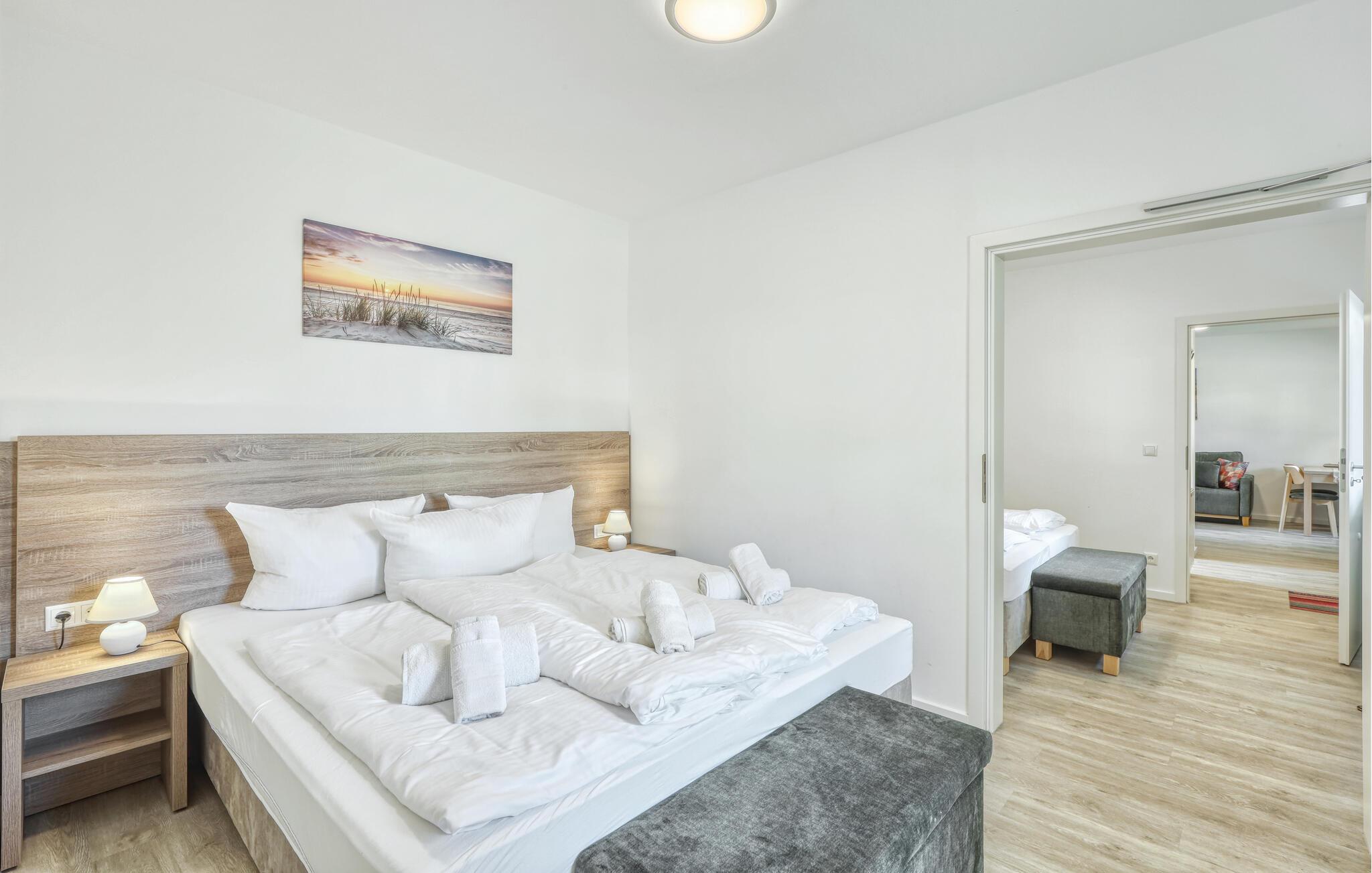 Der er lagt op til nogle fredfyldte dage i denne funktionelle og moderne lejlighed, der ligger nogle få skridt fra den smukke naturstrand. Her er der gode rammer til par, familier eller venner på tur. Feriekomplekset ligger idyllisk placeret mellem fyrreskove og klitter, ideelt til afslappende dage ved havet eller aktiv rekreation midt i naturen. Efter en begivenhedsrig dag kan I vende tilbage til de lyse rum, sætte jer til rette i de behagelige møbler og snakke længe.