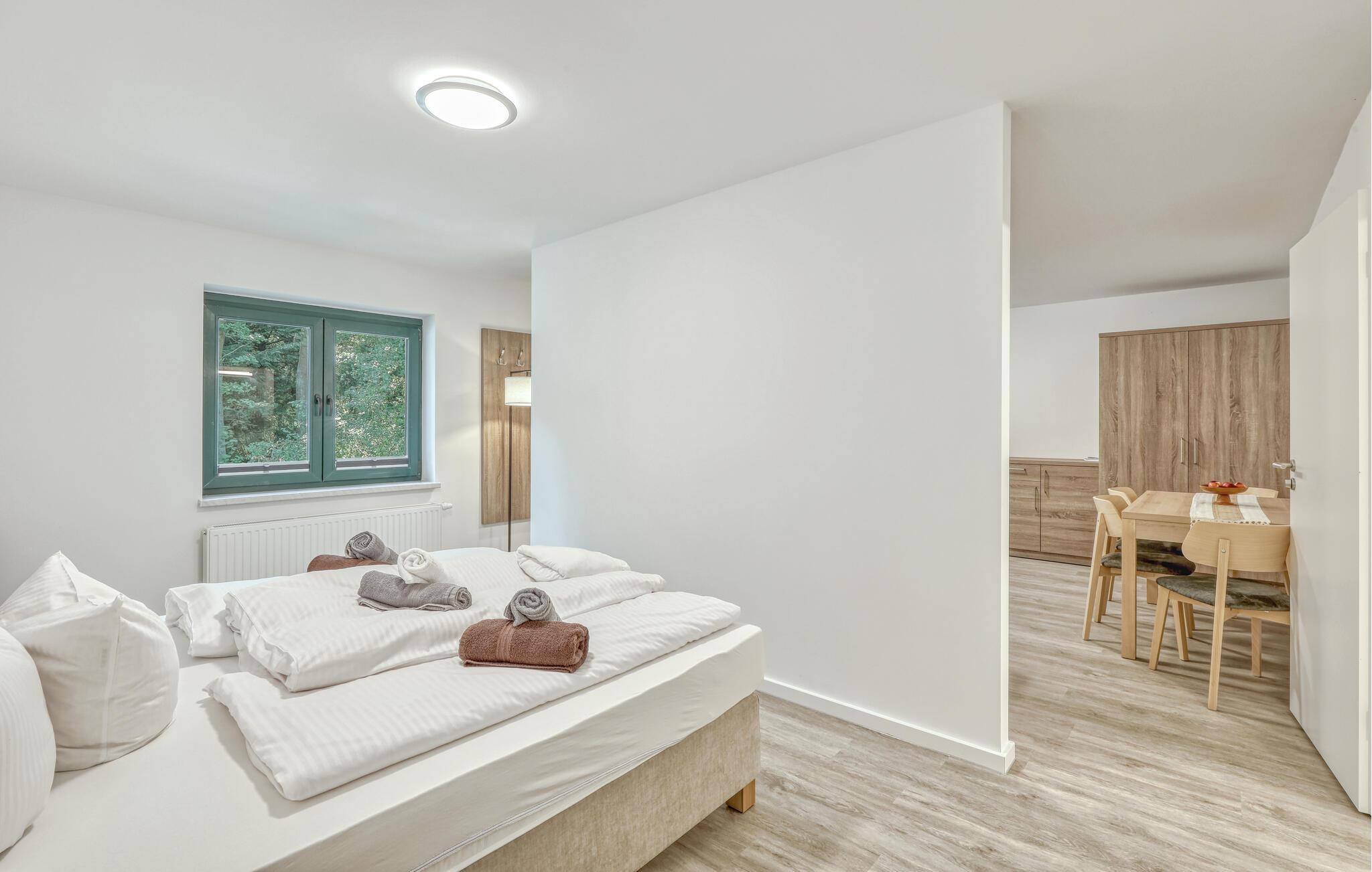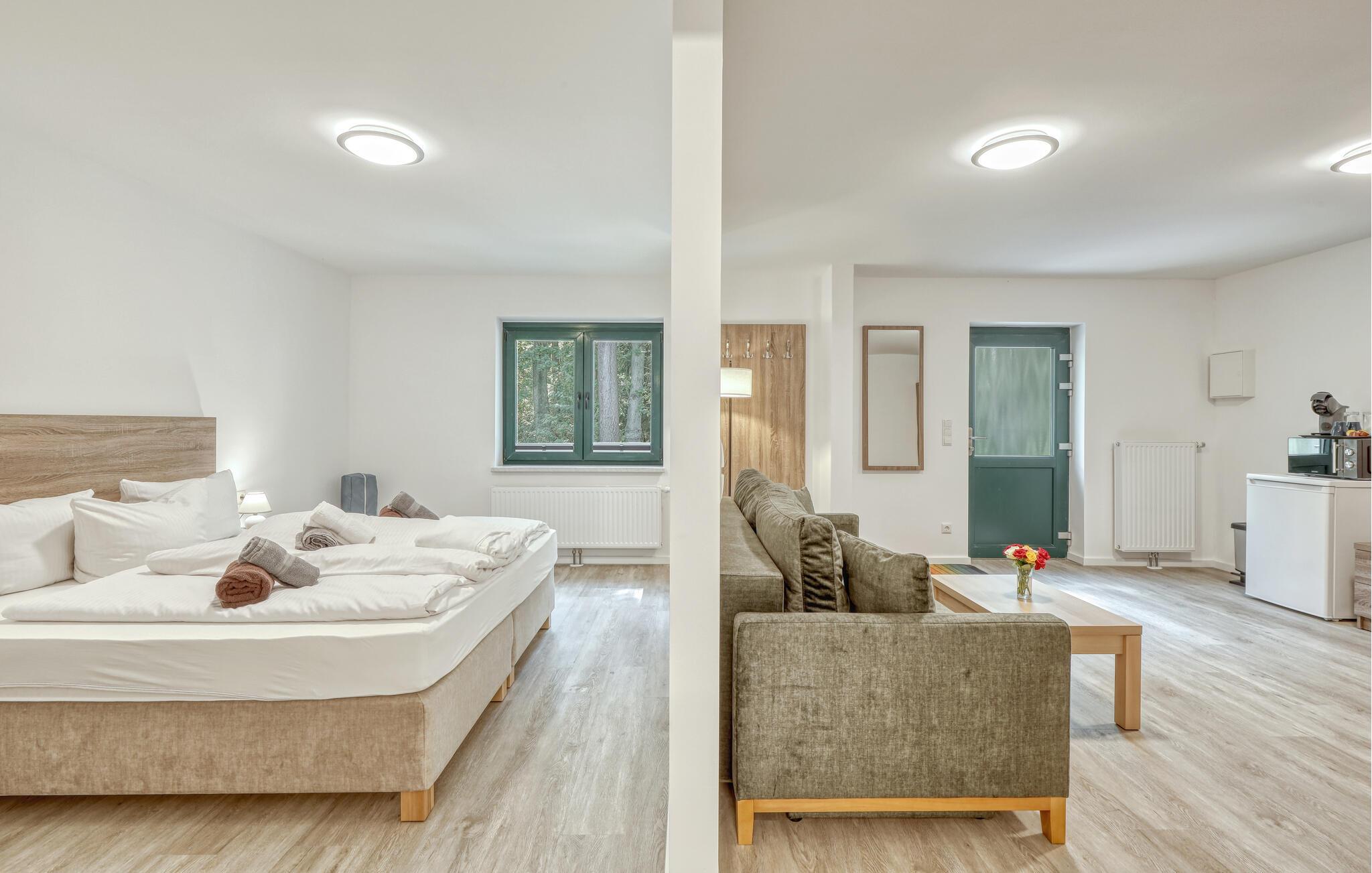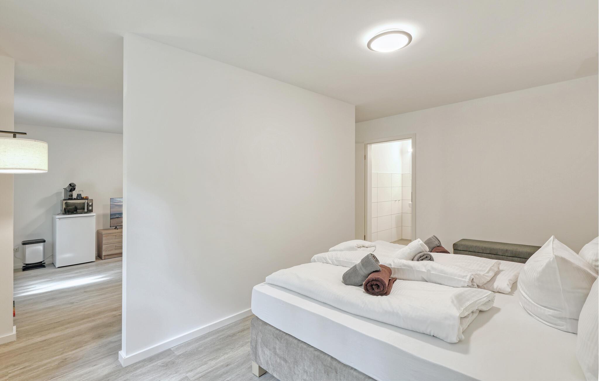 Der er lagt op til nogle fredfyldte dage i denne funktionelle og moderne lejlighed, der kun ligger et stenkast fra den smukke naturstrand. Feriekomplekset er smukt placeret mellem fyrreskov og klitter, ideelt til afslappende dage ved havet eller aktiv rekreation midt i naturen. Efter en begivenhedsrig dag kan I vende tilbage til de lyse værelser, sætte jer til rette i de komfortable siddepladser og snakke længe.