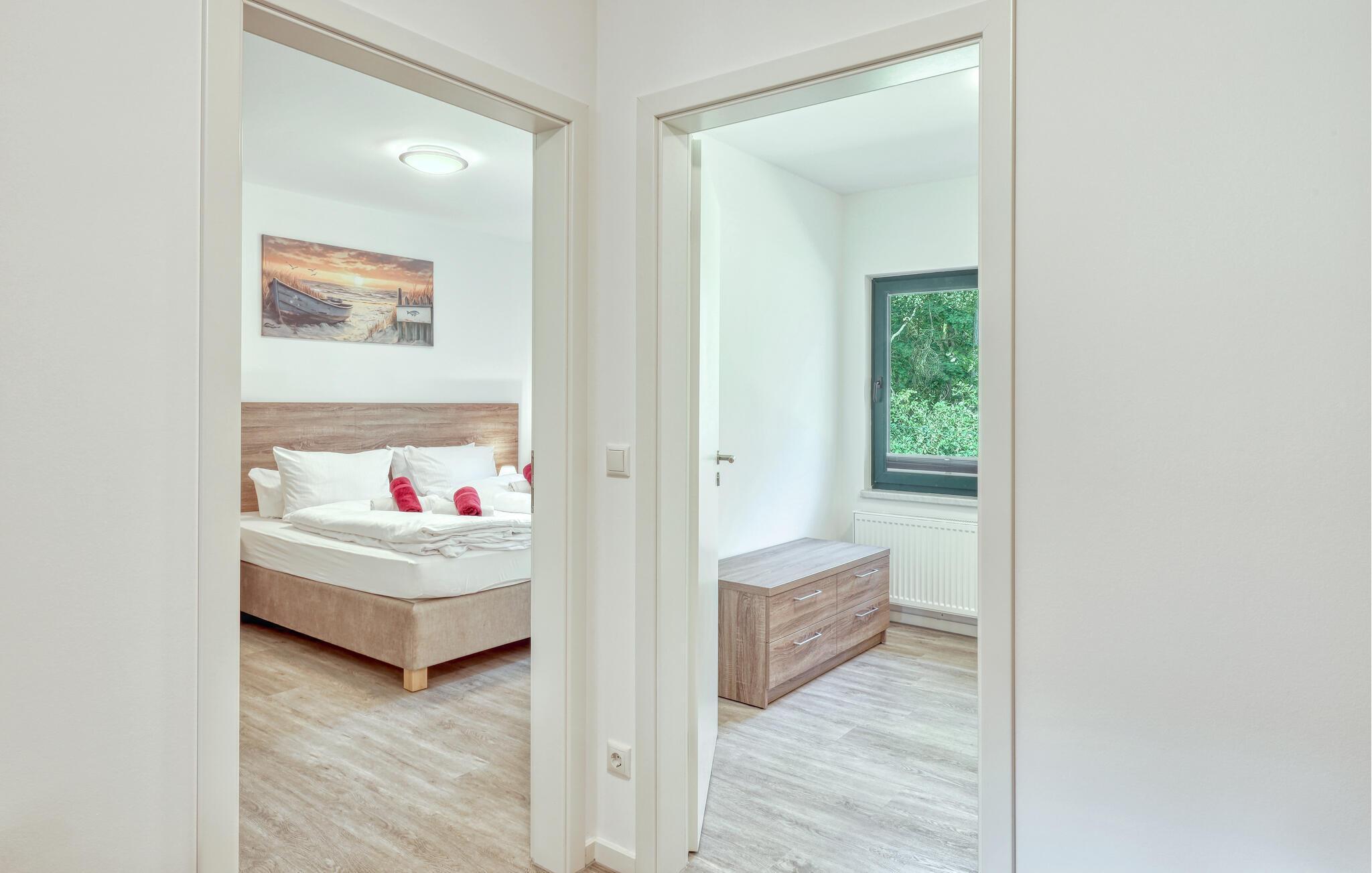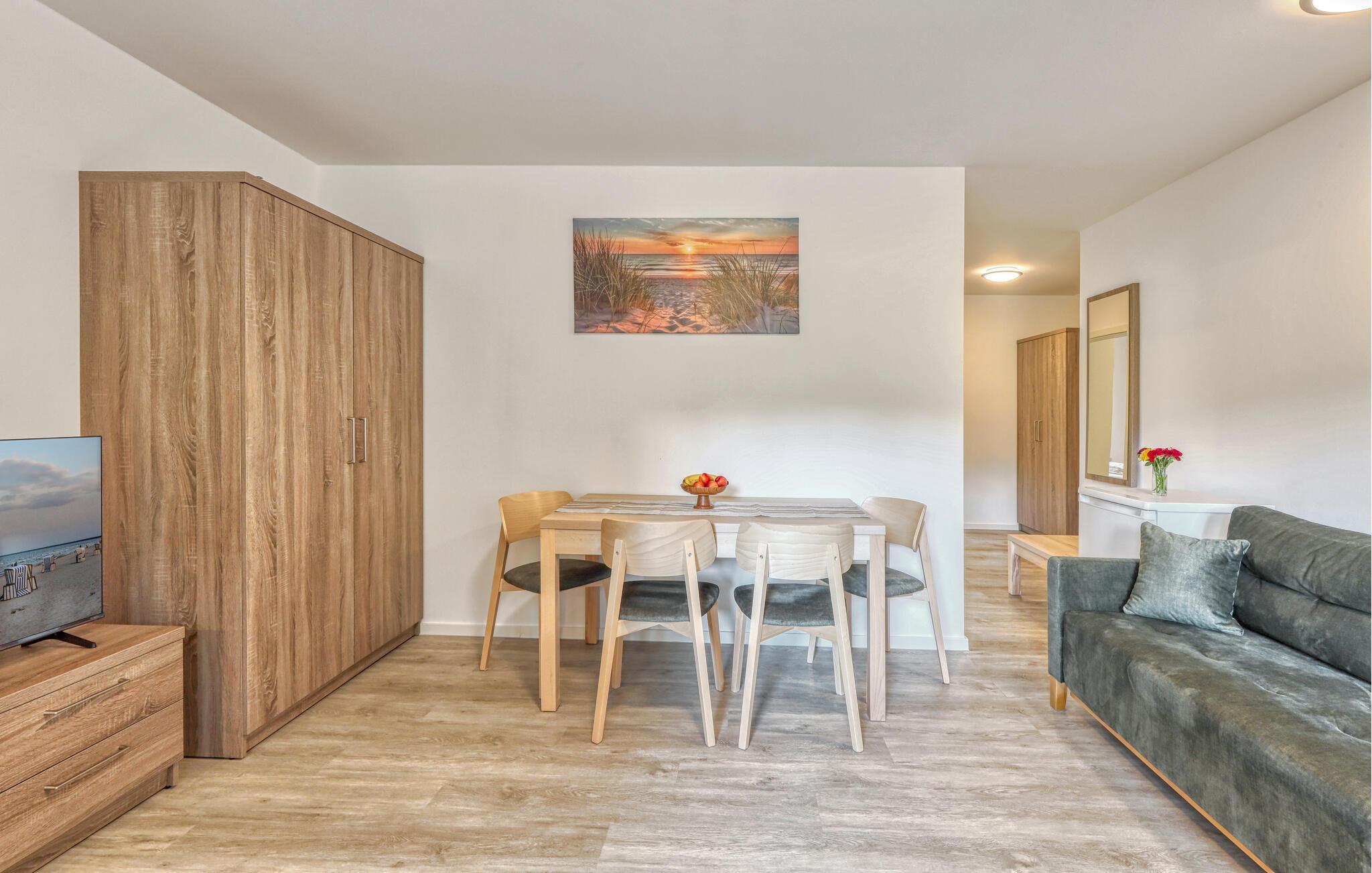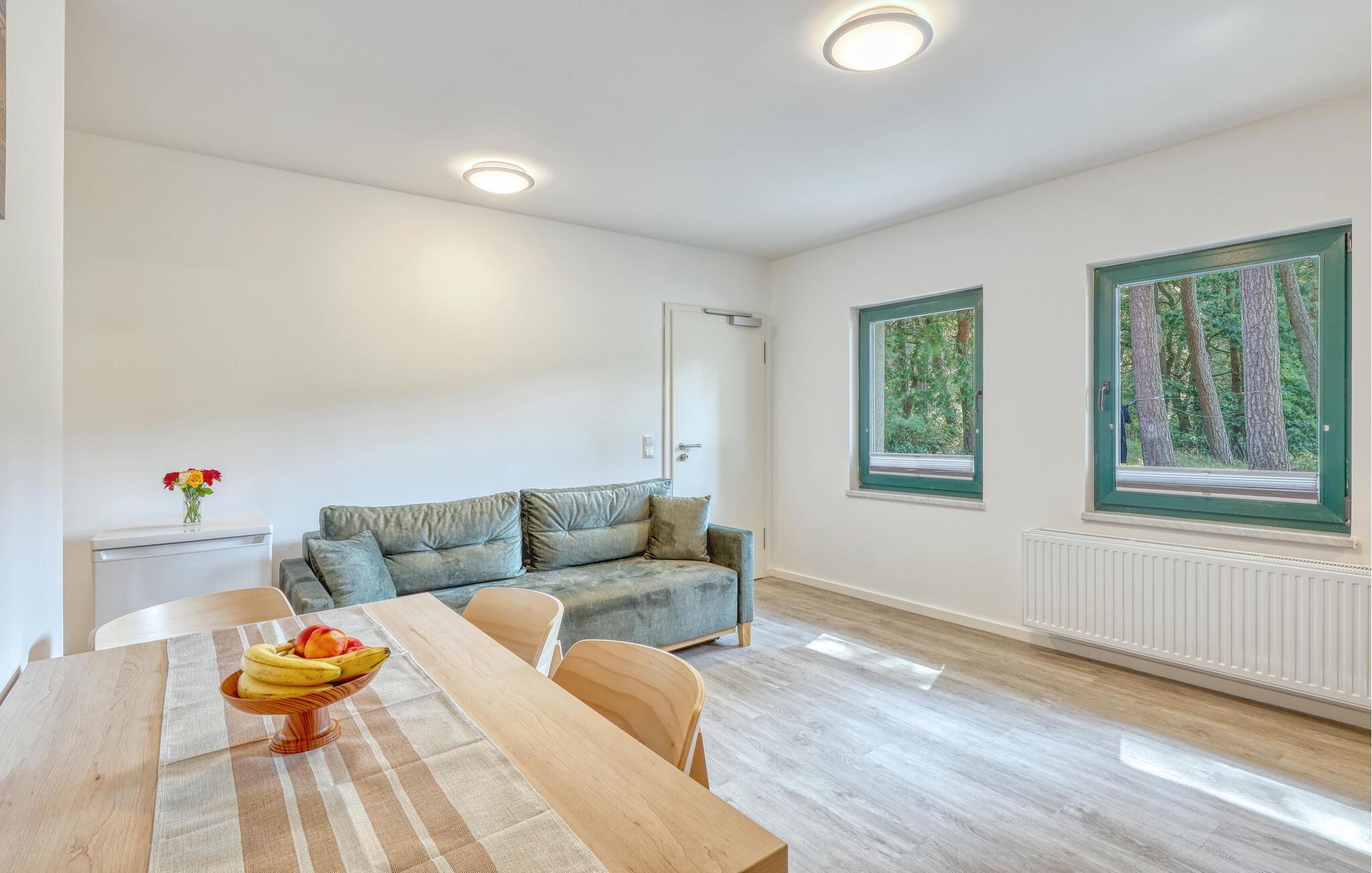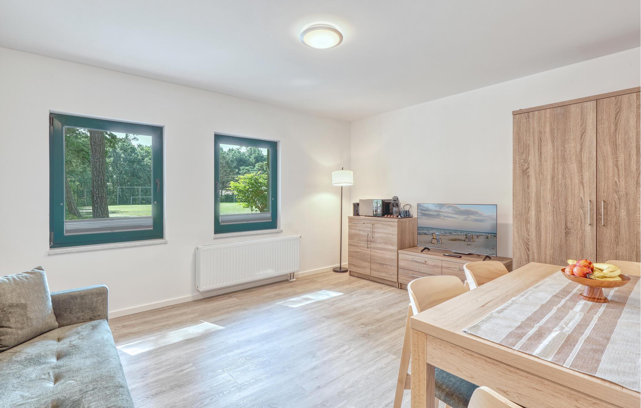 Der er lagt op til nogle fredfyldte dage i denne funktionelle og moderne lejlighed, der ligger nogle få skridt fra den smukke naturstrand. Her er der gode rammer til par, familier eller venner på tur. Feriekomplekset ligger idyllisk placeret mellem fyrreskove og klitter, ideelt til afslappende dage ved havet eller aktiv rekreation midt i naturen. Efter en begivenhedsrig dag kan I vende tilbage til de lyse rum, sætte jer til rette i de behagelige møbler og snakke længe.